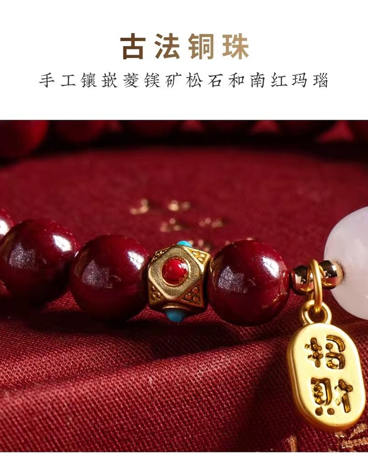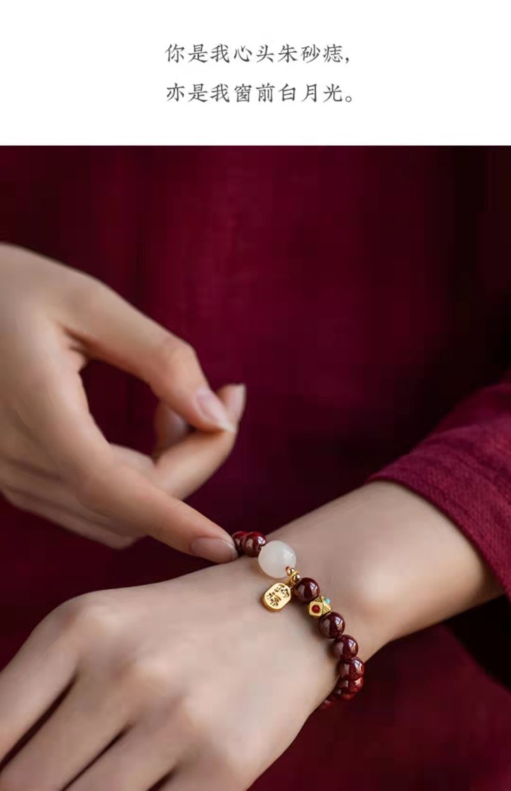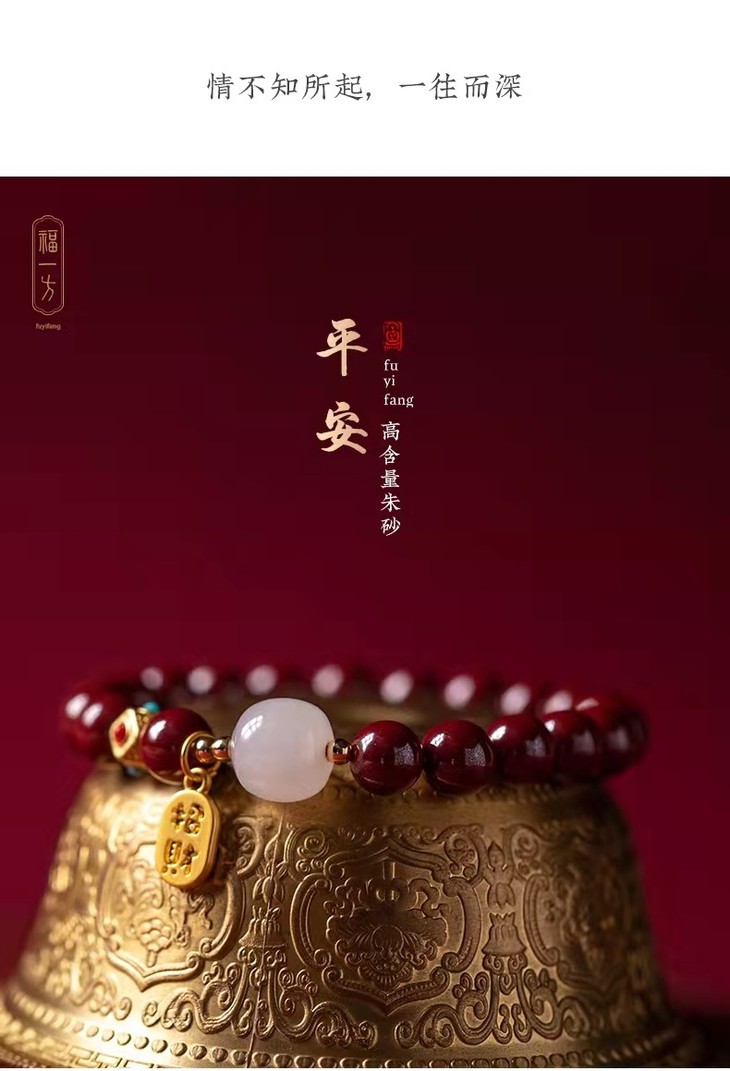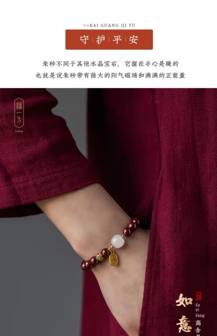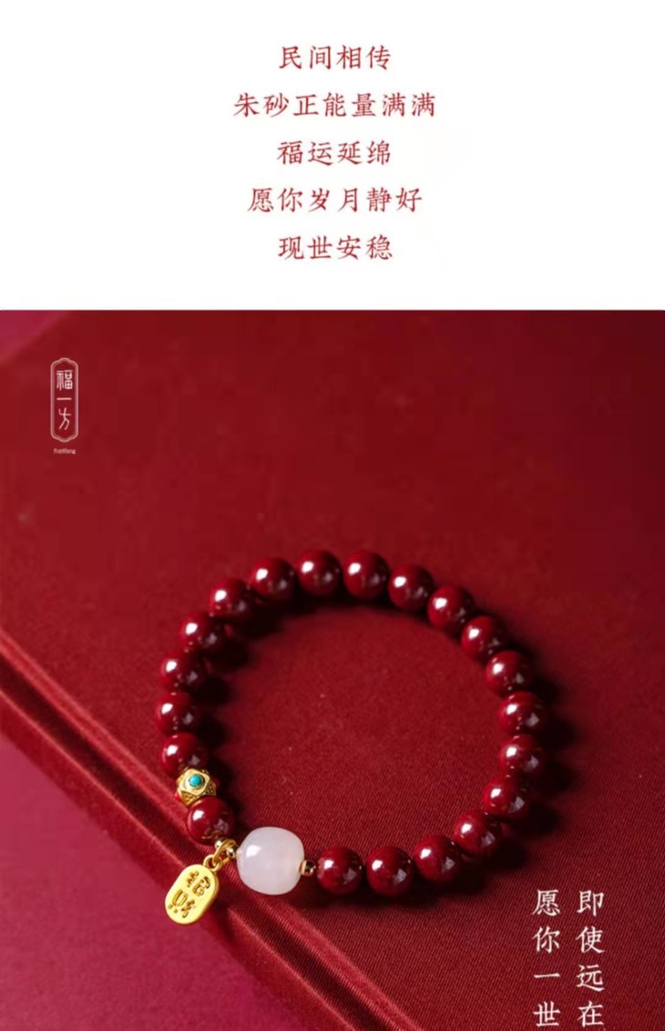 天然朱砂和田玉手链、和田玉佛珠手串、福牌手链、带证书、礼盒装 戴上 “朱”事顺意,开运有福,纳天地正气!