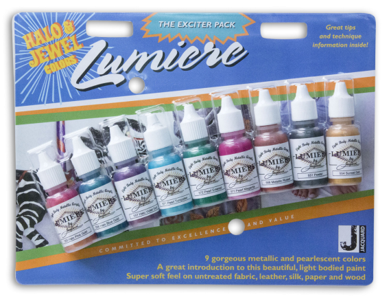 包含9种金属颜色:晕粉金、晕蓝金、晕紫罗兰金、金属赤褐色、日落金、深褐色、珠光绿松石、珠光翡翠、珠光洋红。