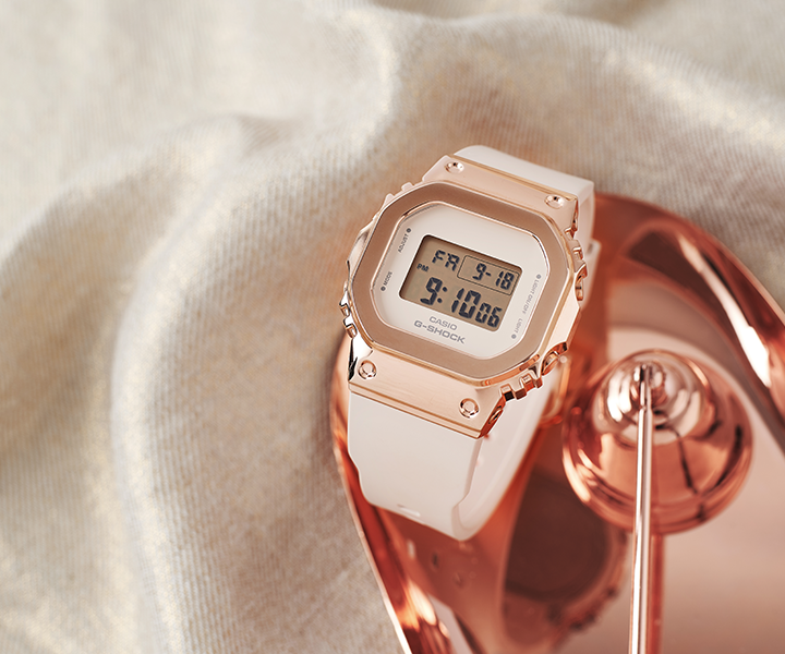 此次G-SHOCK 女性系列GM-S5600携金属元素全新登场,采用经典方形表盘外更加适合女性佩戴。在保持轻量以及舒度的同时赋予了产品金属高级质感,适合多种场合的搭配佩戴。