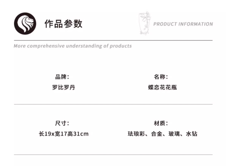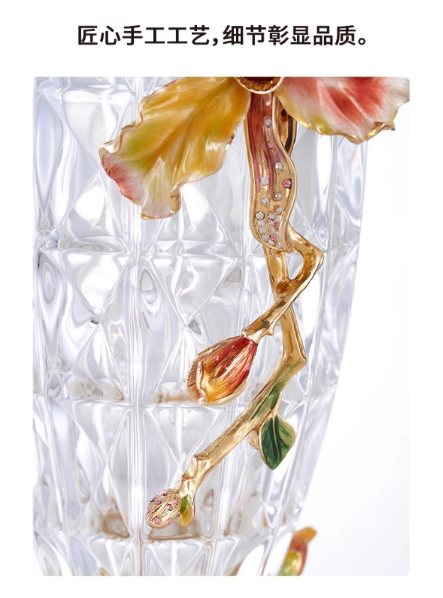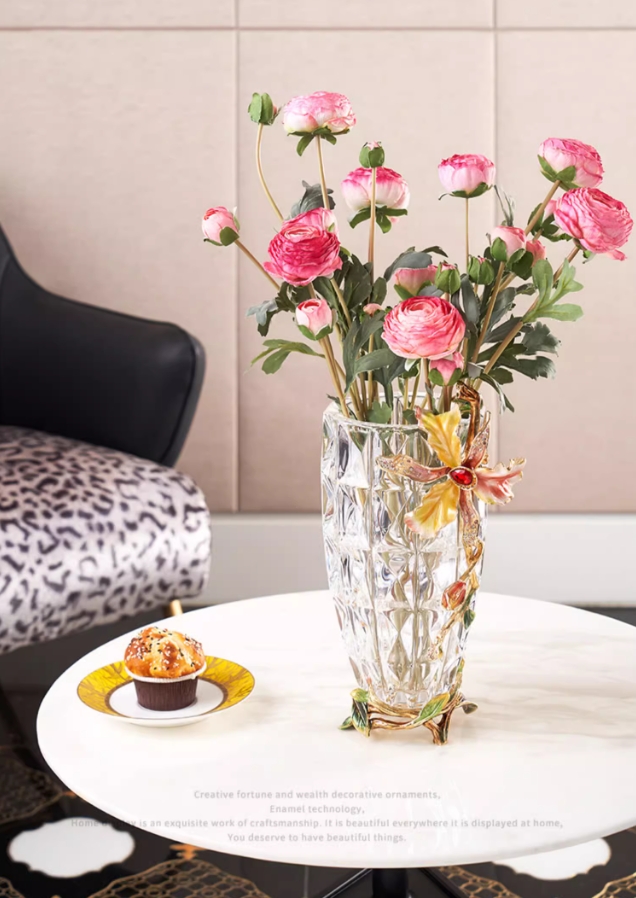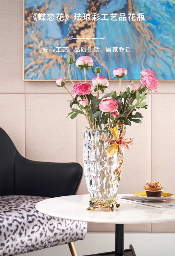 【彼达思】罗比罗丹蝶恋花花瓶珐琅彩工艺花瓶 创意餐桌茶几水养鲜花花器