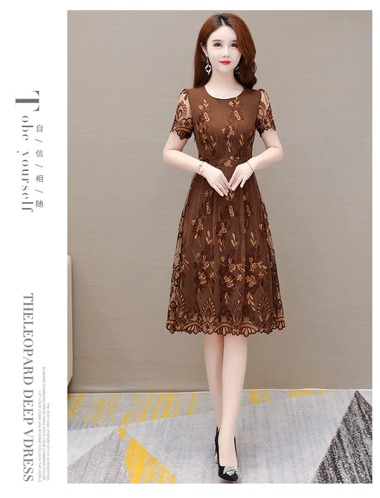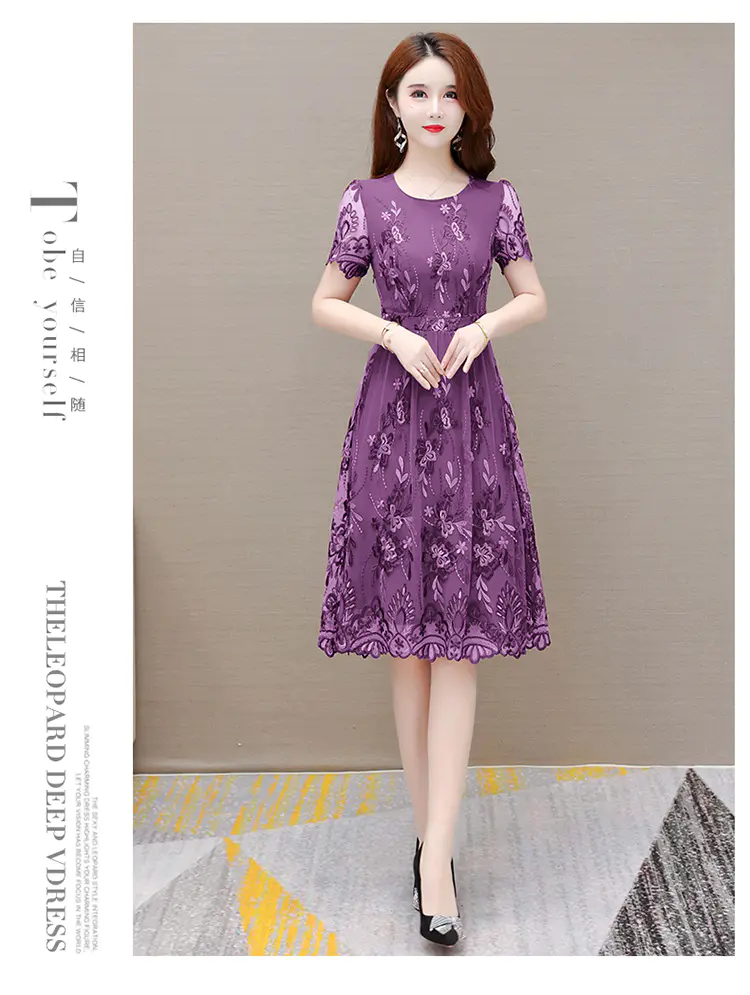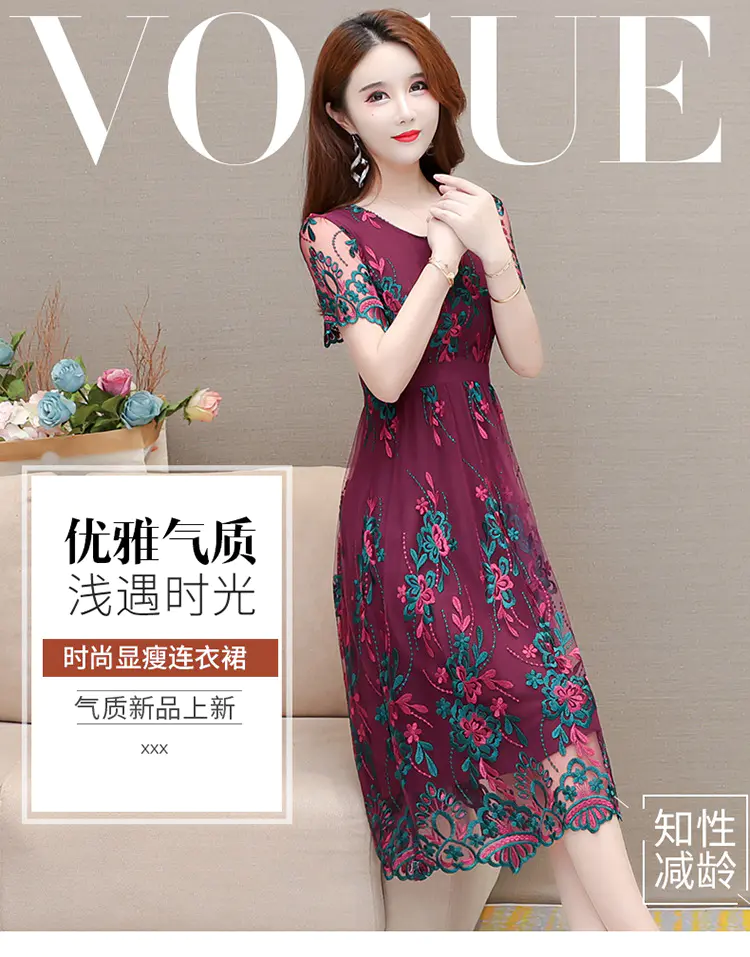 YWE-WP18761夏季新款修身短袖贵夫人气质洋气连衣裙