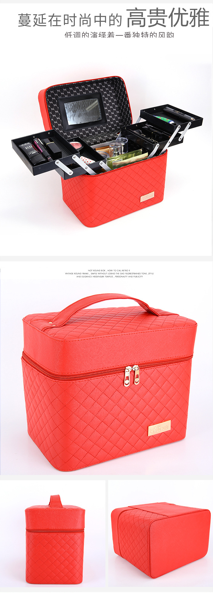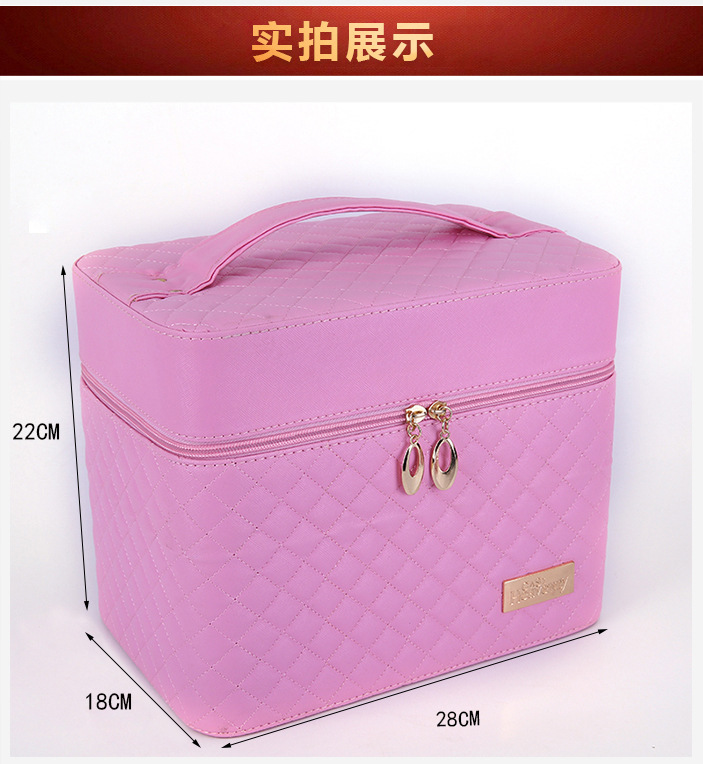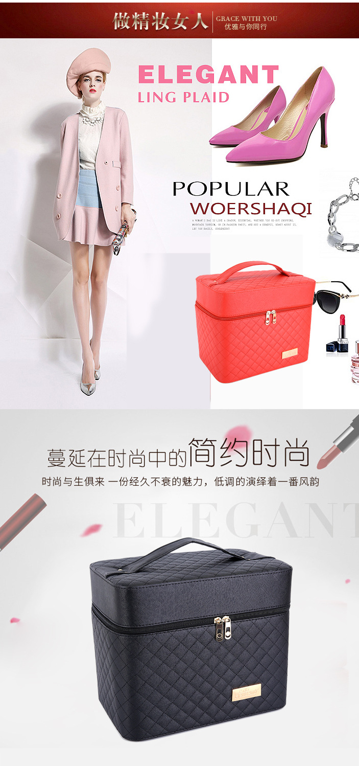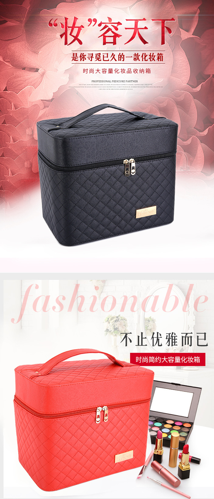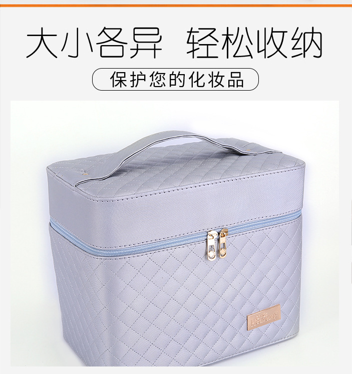 DD-632韩国四开绣格子纹手提大号多功能化妆品收纳箱TZW