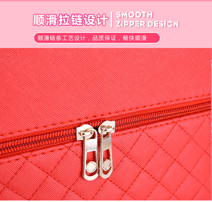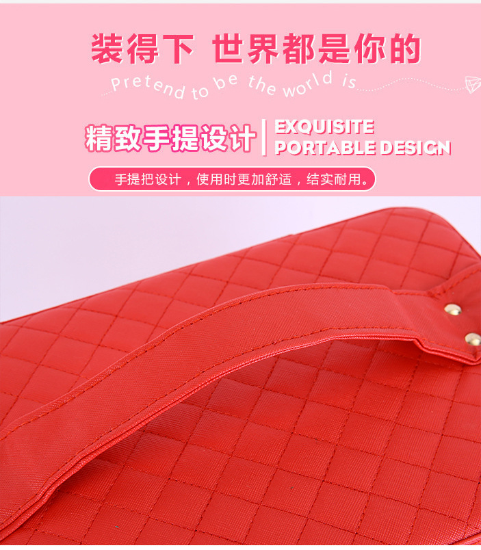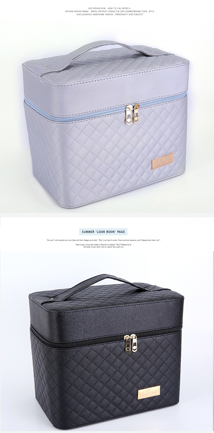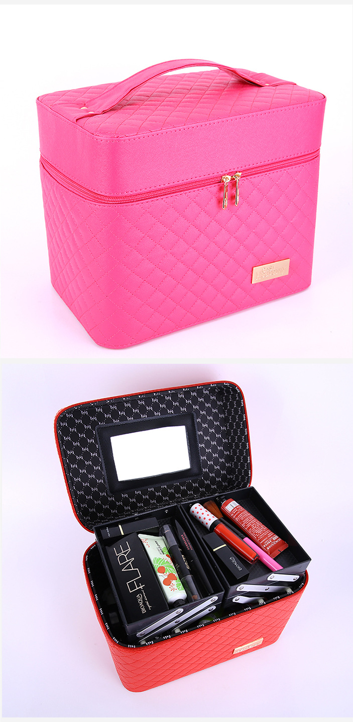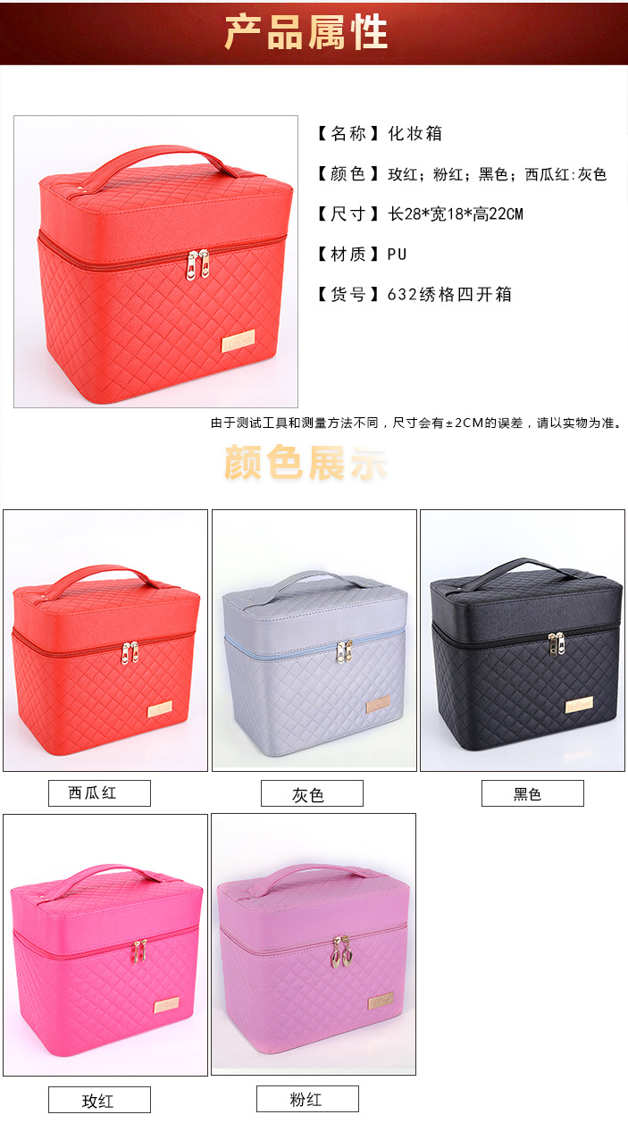 DD-632韩国四开绣格子纹手提大号多功能化妆品收纳箱TZW