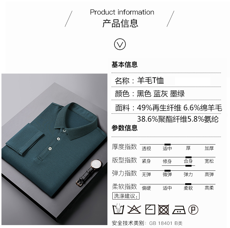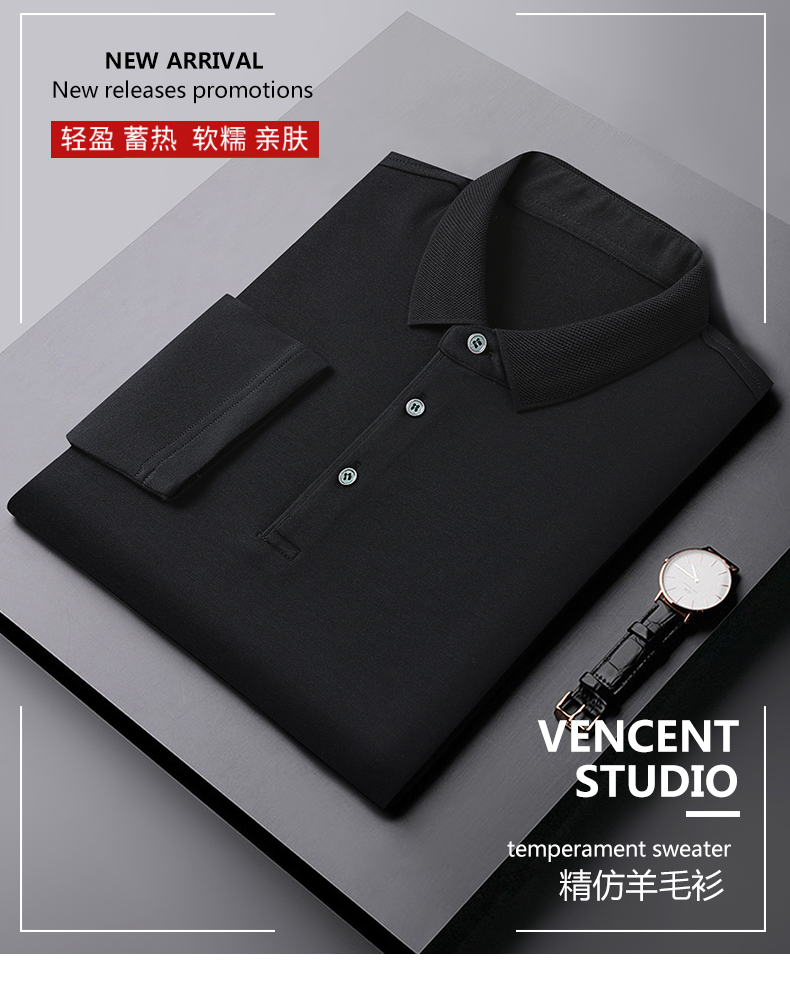 【羊毛】【新款DWP】大依优型大码长袖T恤Polo衫翻领男装加肥加大体恤大号上衣胖子内搭