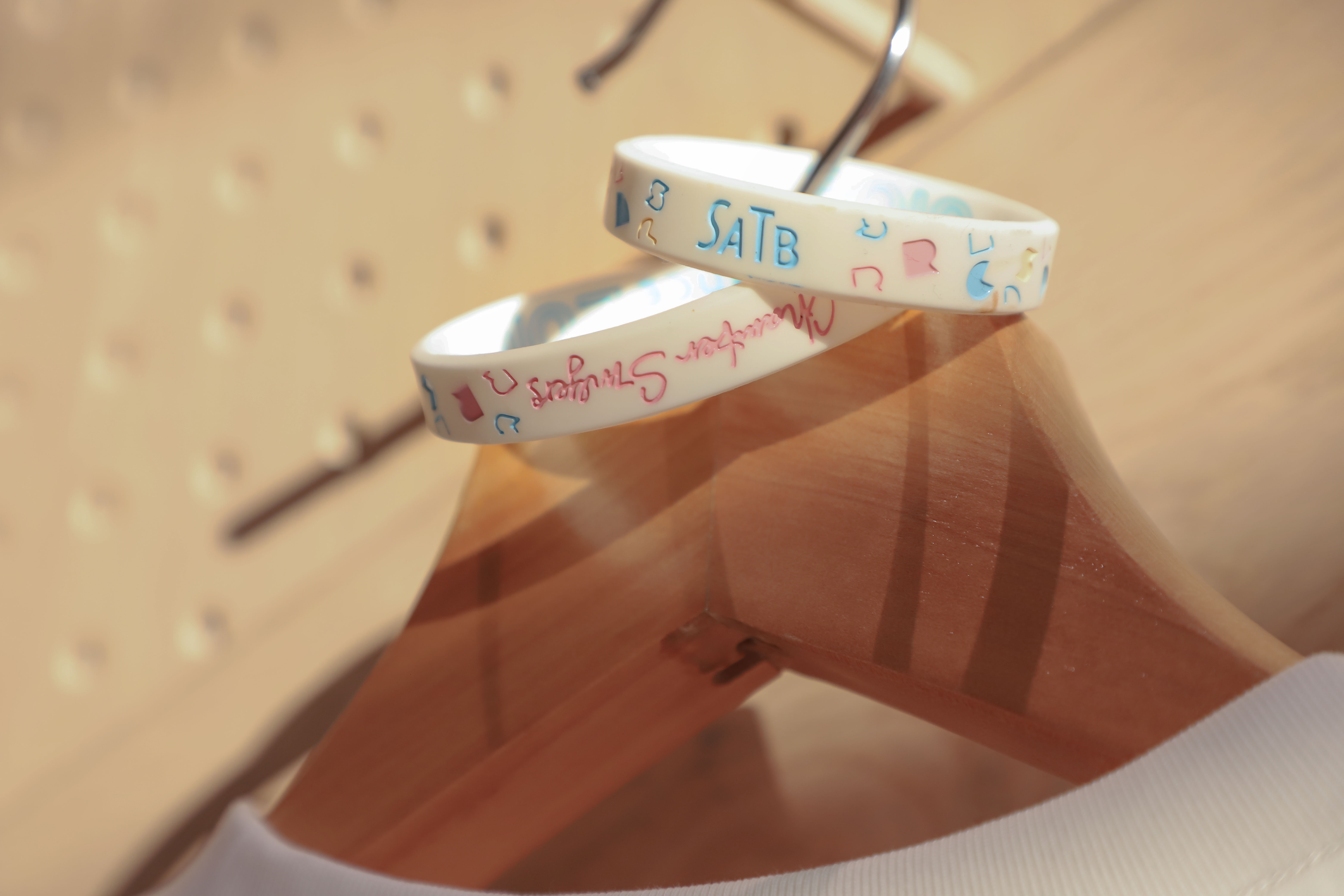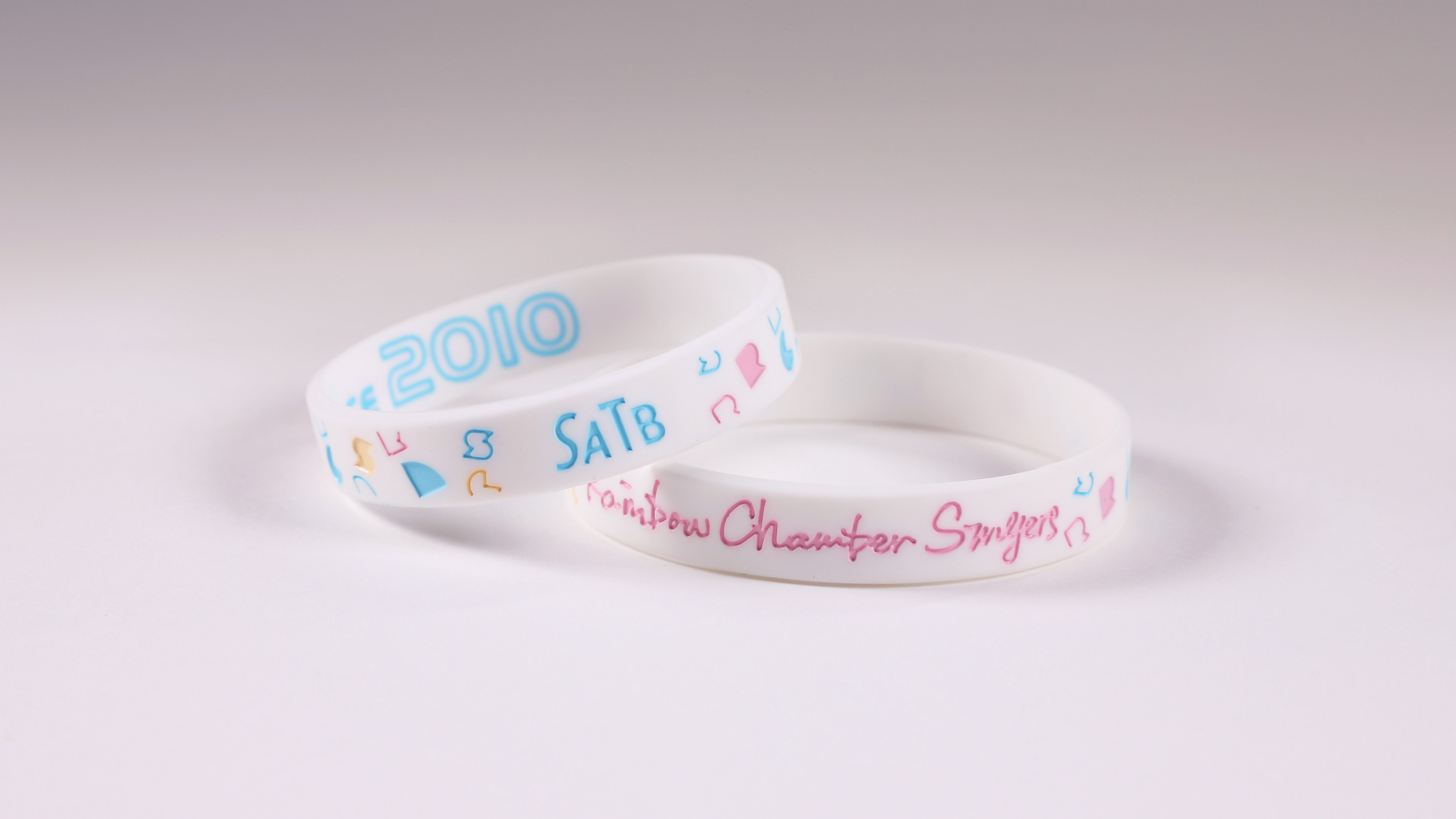 设计简约配色清爽,手写体的 Rainbow Chamber Singers 字样与四声部缩写 SATB 的 “秘密暗号” 让你在人群中一眼认出同好🌈