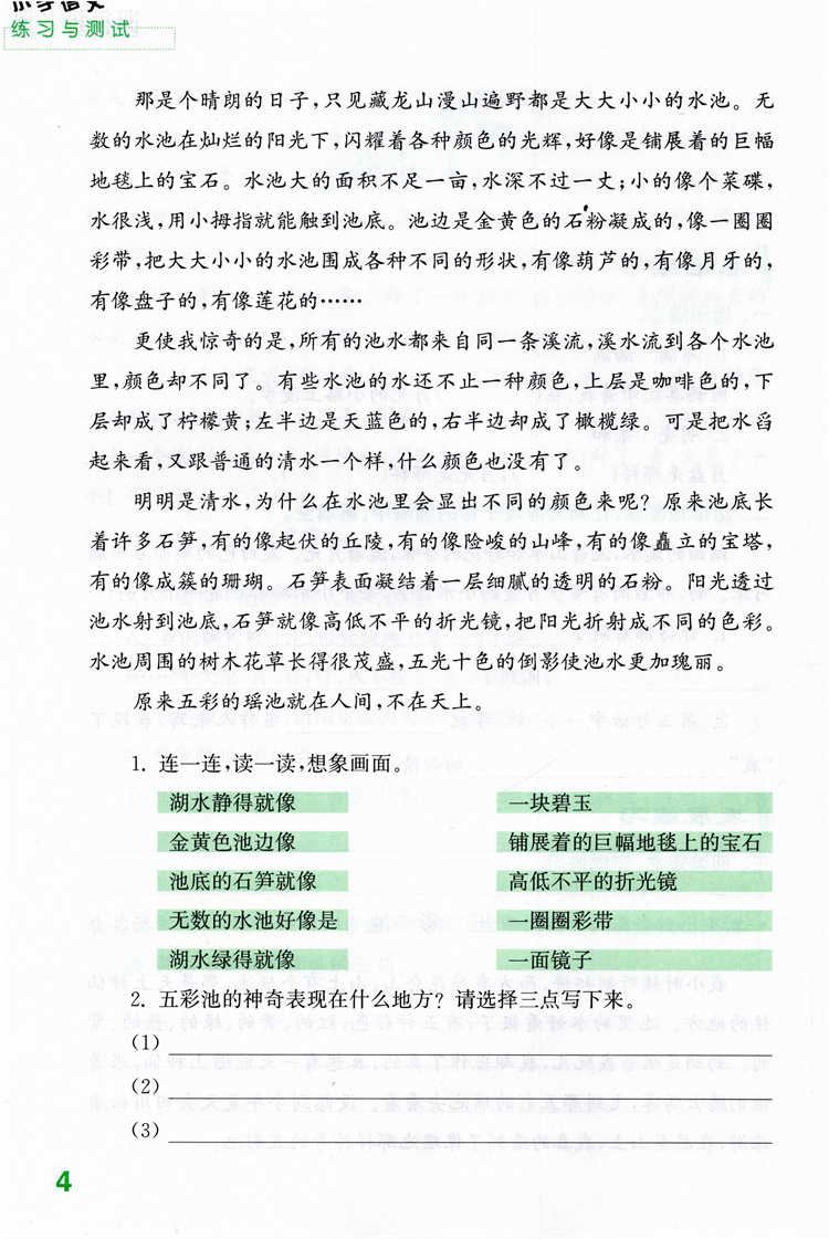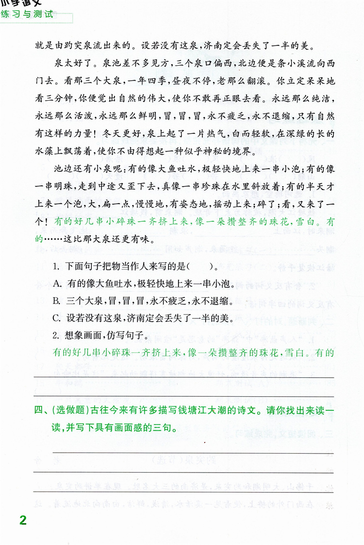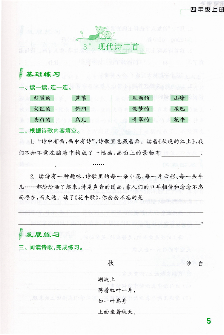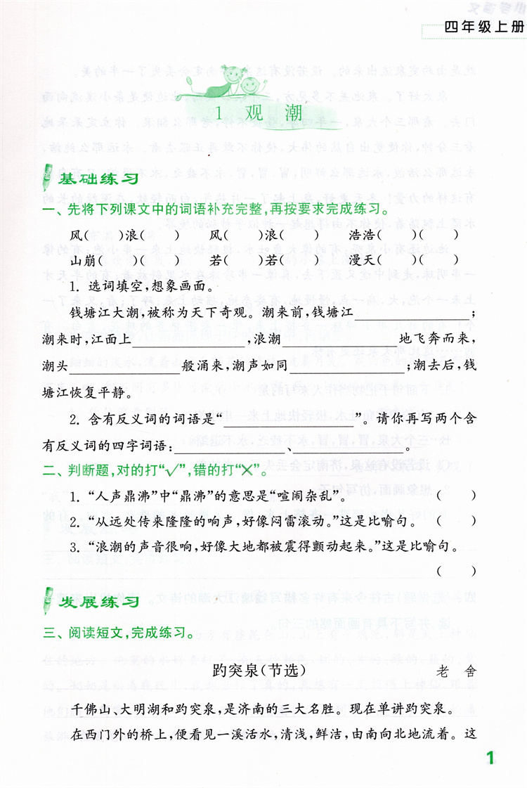 2025秋 练习与测试小学语文4上 四年级上册 配部编版 含电子答案 不含试卷 江苏凤凰教育出版社