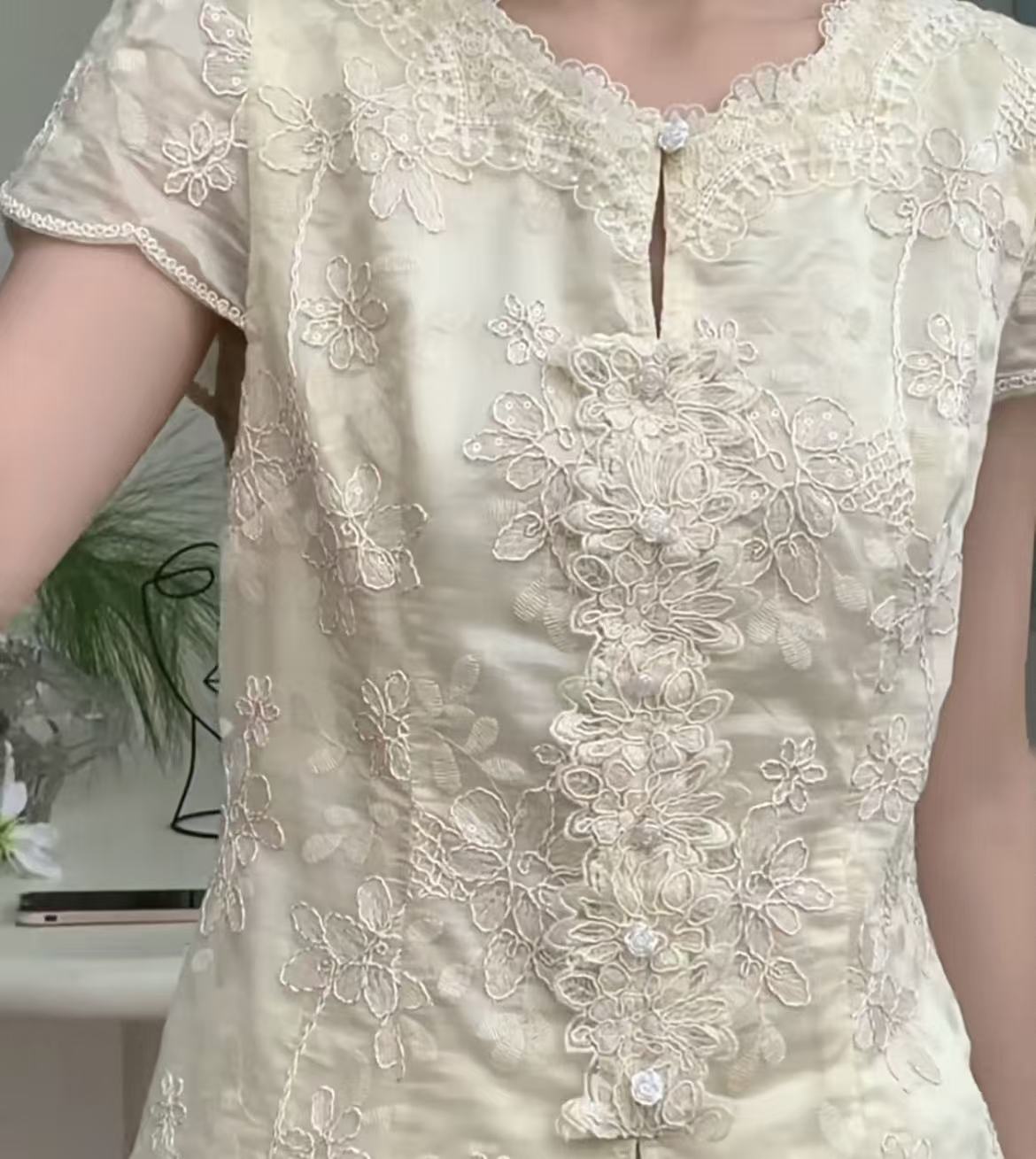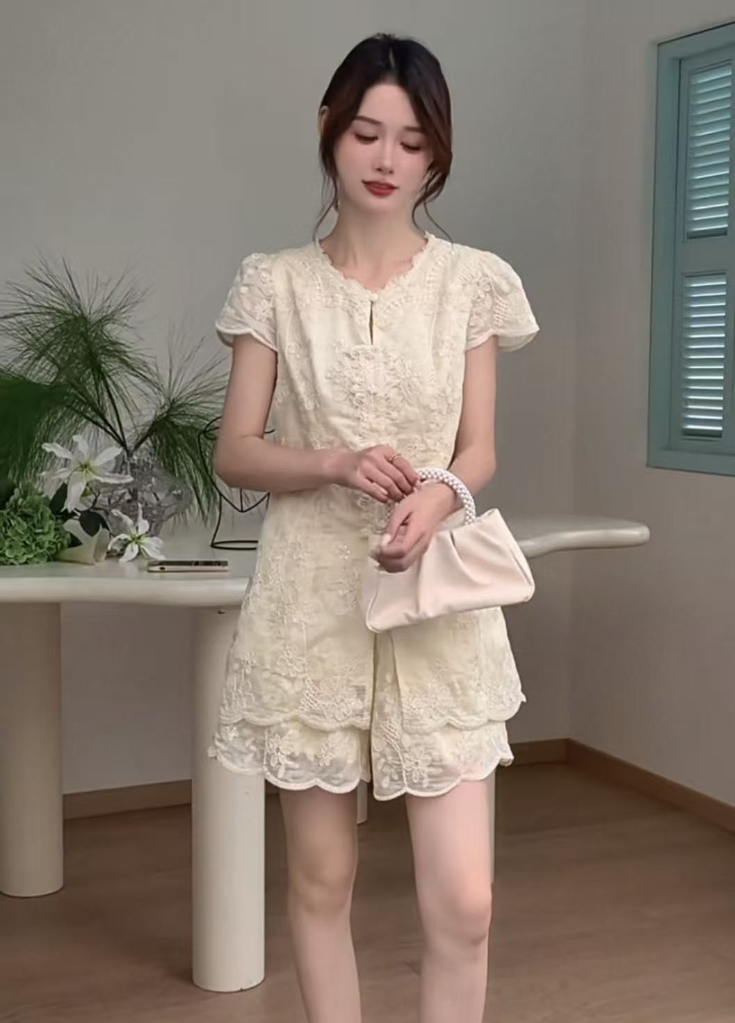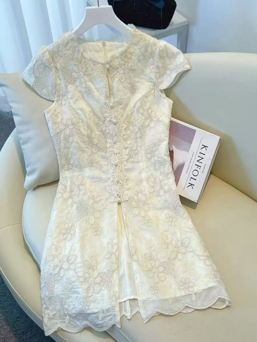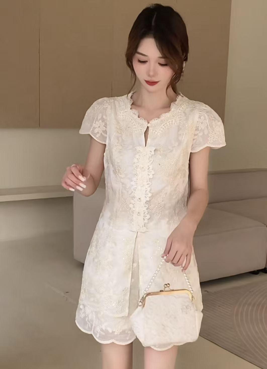 11.11最后促,不参与退货 清仓处理(单件上衣)4654重工刺绣精致开叉单件短袖上衣-喜出