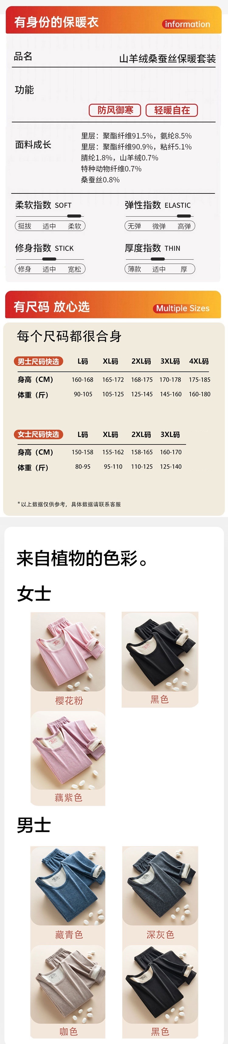 【貂绒+山羊绒+桑蚕丝+德绒 69元2套 99元3套】Basiclive貂绒蚕丝羊绒德绒保暖内衣套装 轻薄 保暖(单拍不发!自行加购进购物车,自动减!)