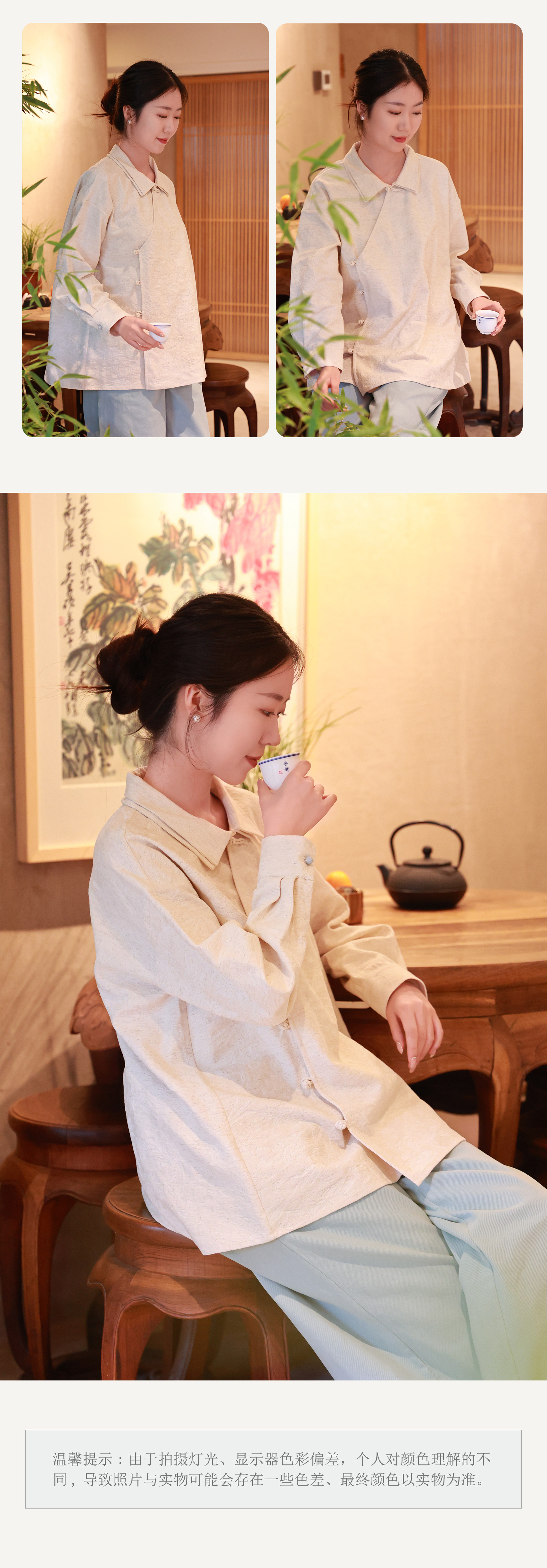 【抖音专属】晴天•新中式衬衣(24810134-蜜合)