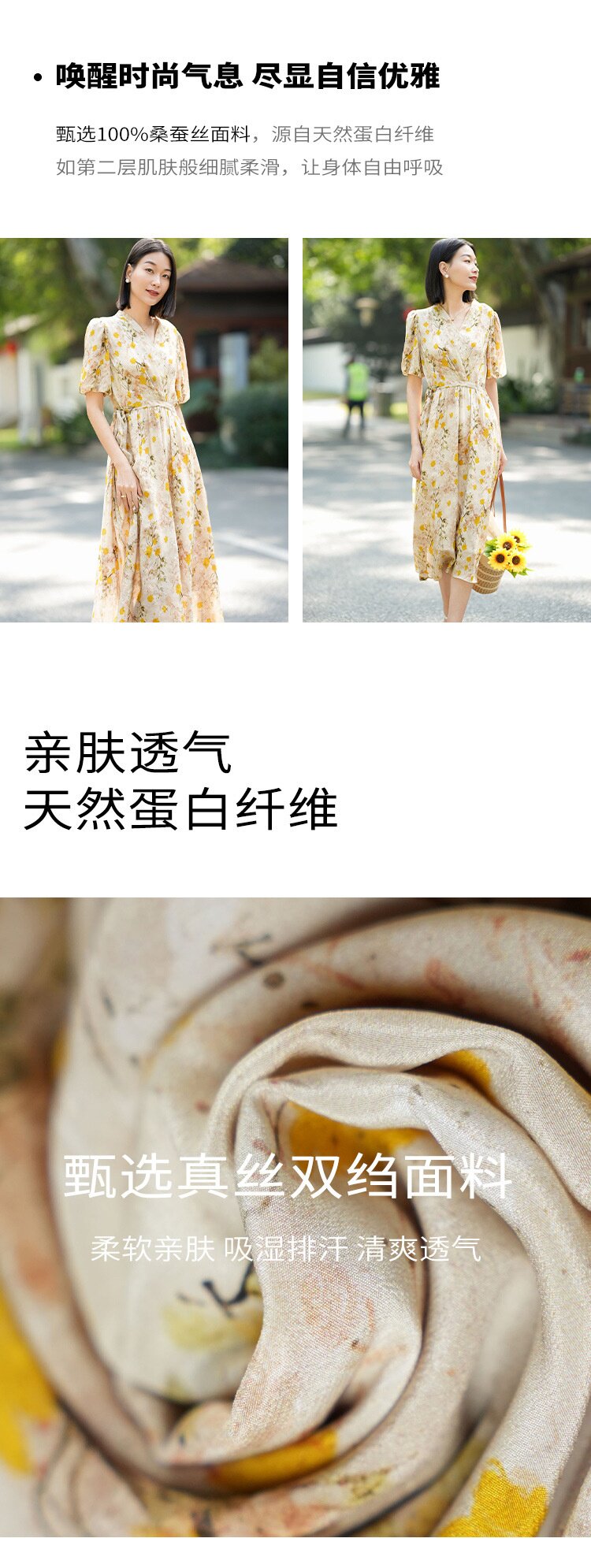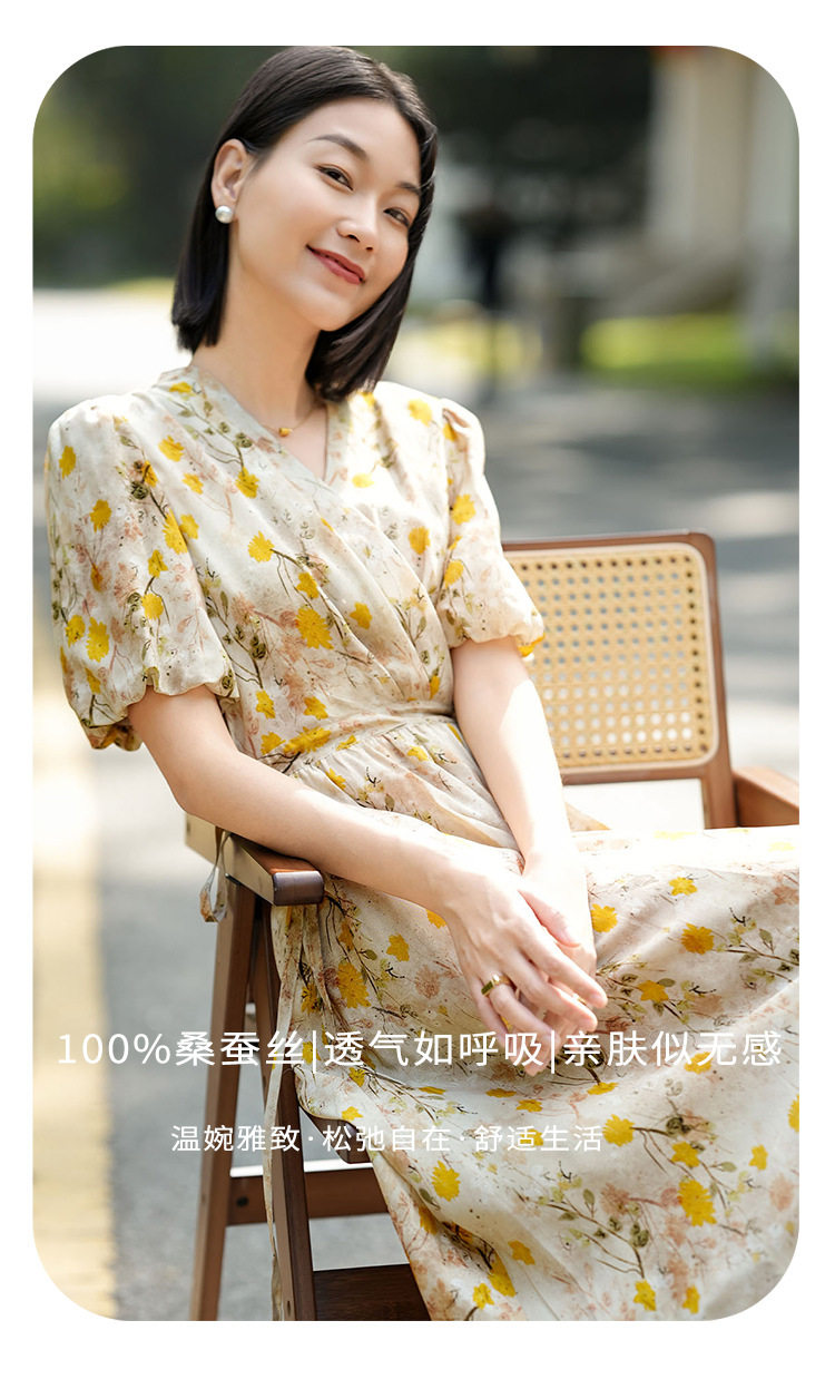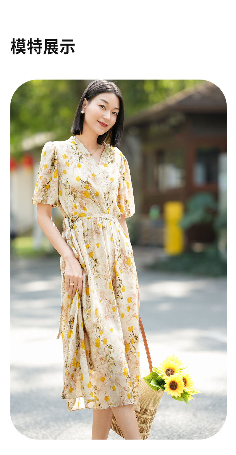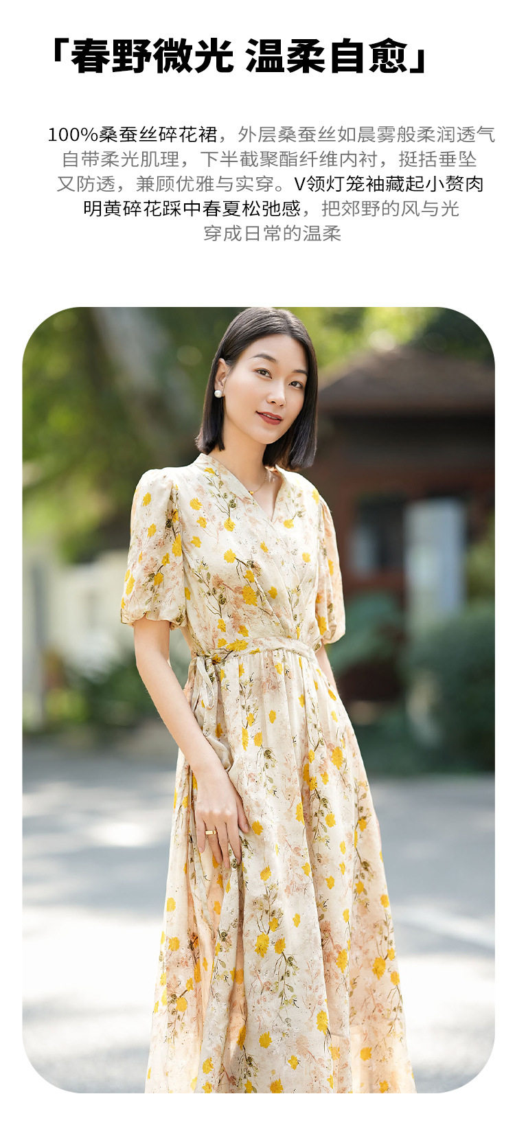 「高货kbnq」全新升级【铂金会员514/天猫699/差价185】(22818)洛诗琳法式度假风真丝印花连衣裙2026夏季显瘦碎花裙
