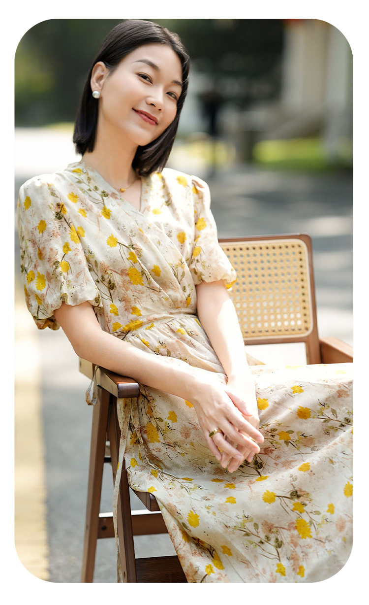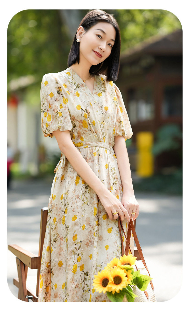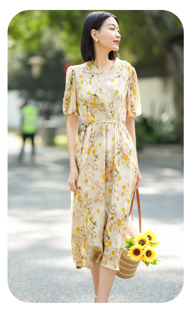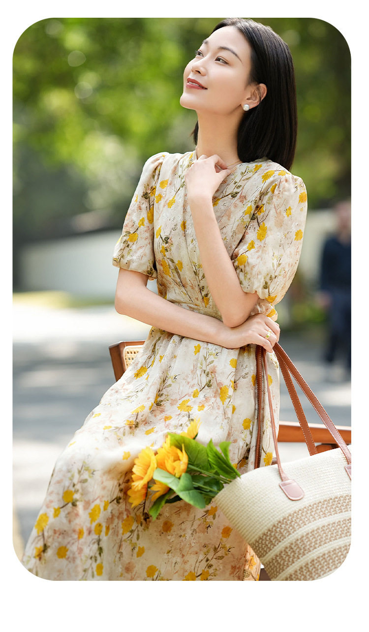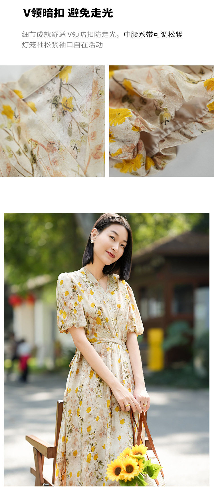 「高货kbnq」全新升级【铂金会员514/天猫699/差价185】(22818)洛诗琳法式度假风真丝印花连衣裙2026夏季显瘦碎花裙
