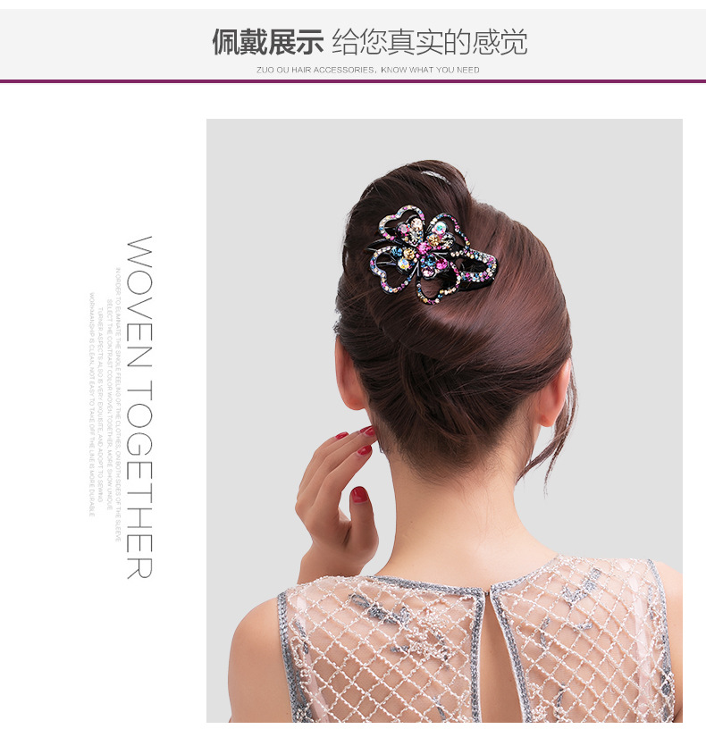 上海旗袍厂LBE-pf087-2爆款鸭嘴夹发夹气质满钻花朵发卡韩版盘发一字夹成人大号发饰