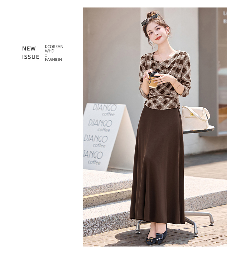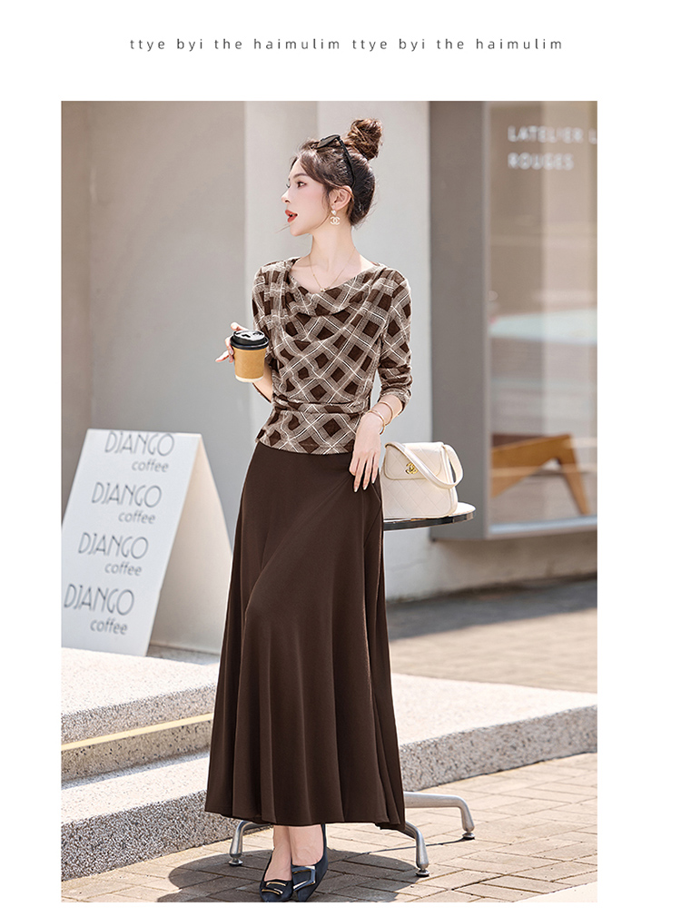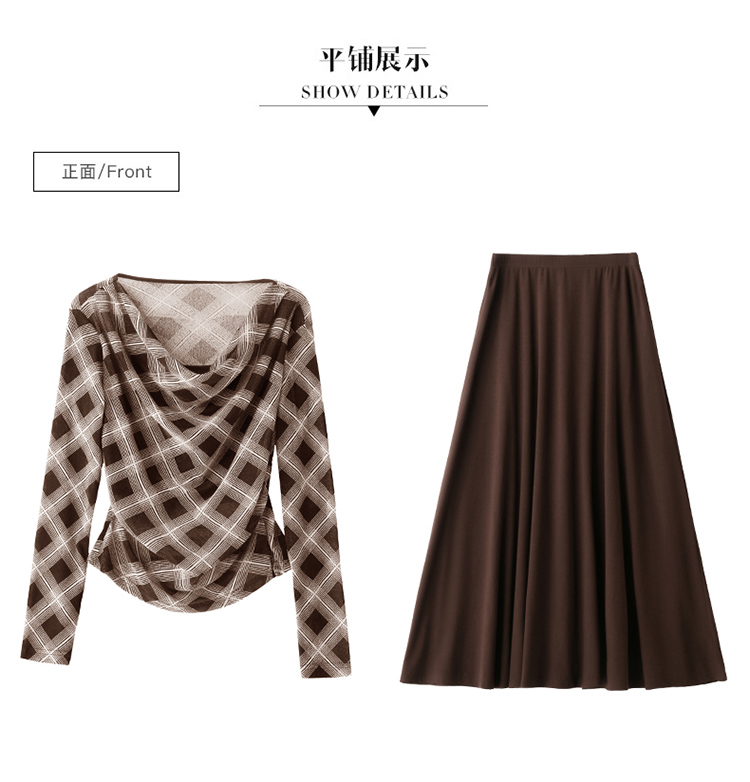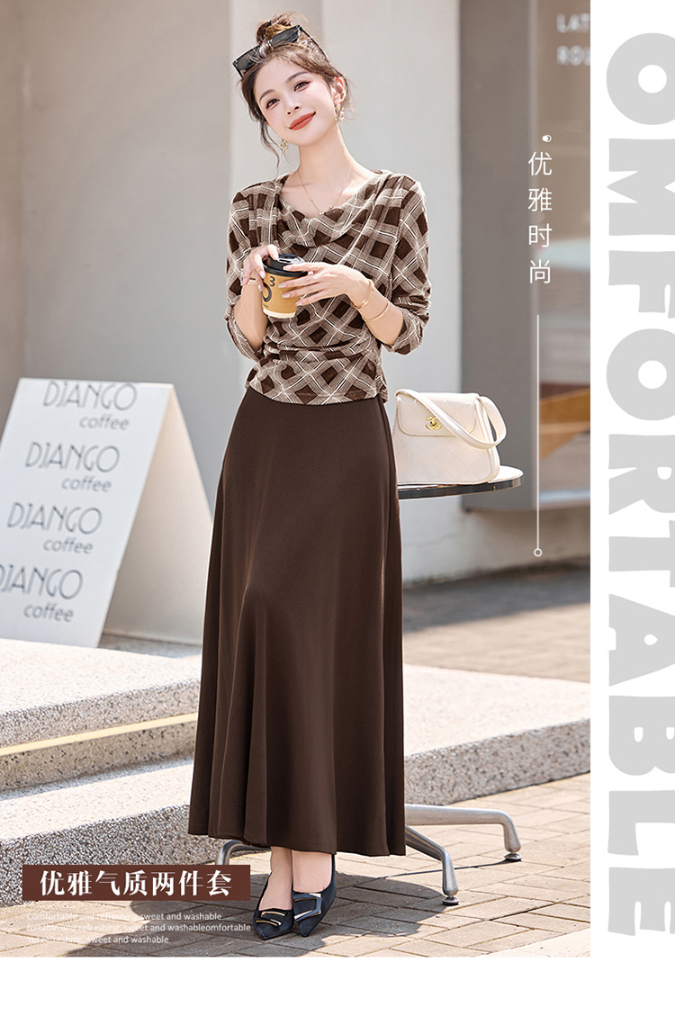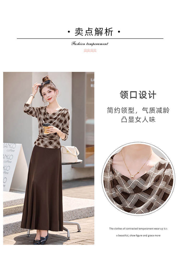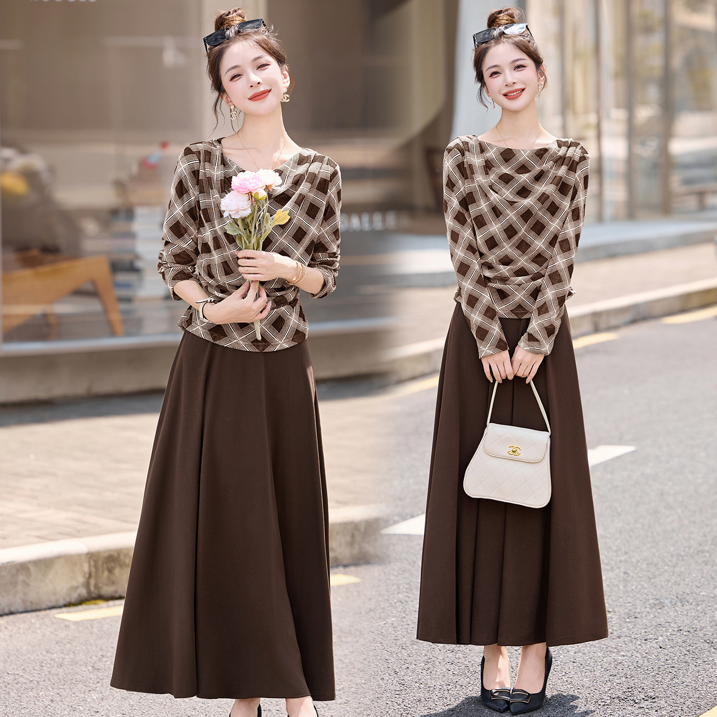 法式设计感格纹上衣长裙套装,气质高级感洋气半身裙两件HR-SNX3185