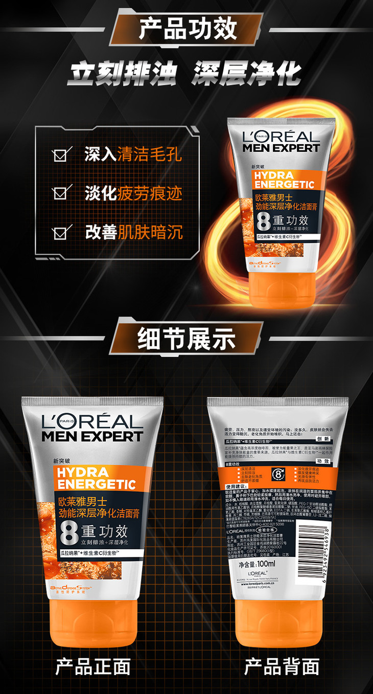 L'OREAL 欧莱雅男士劲能深层净化洁面膏
