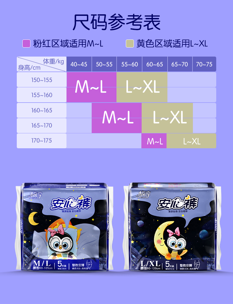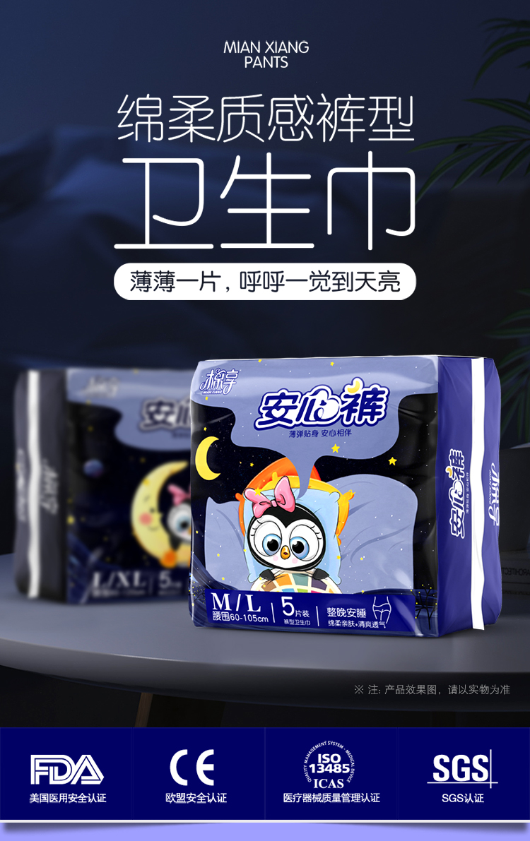 棉享高腰弹力超熟睡少女裤型卫生巾安心裤M-L码5片装