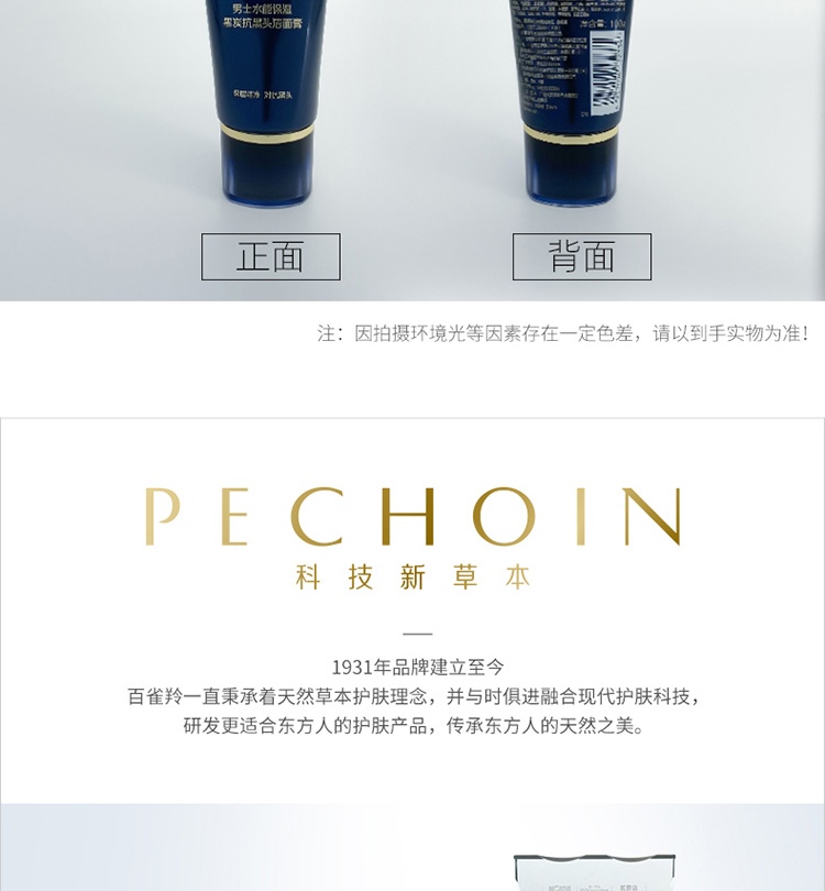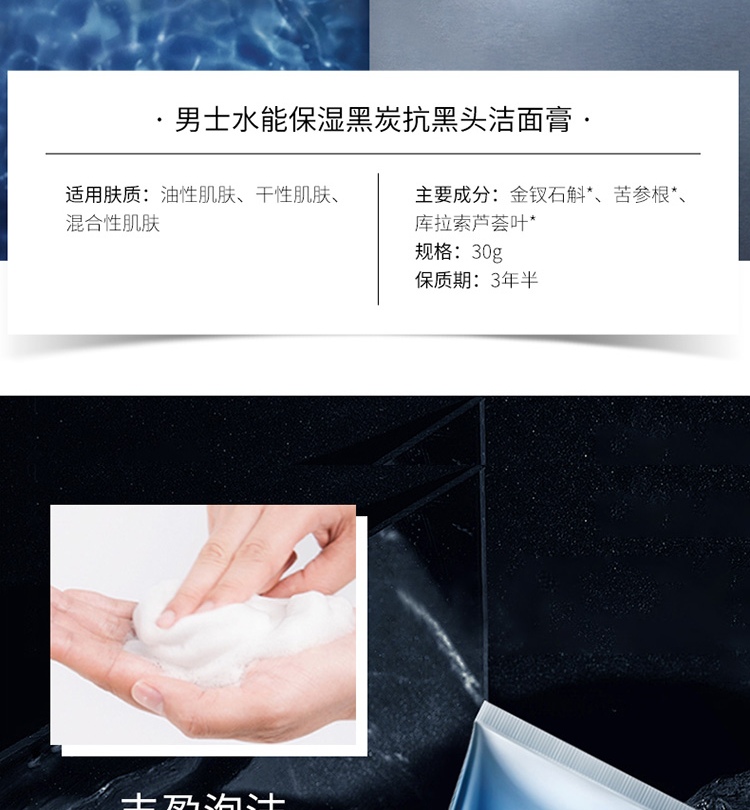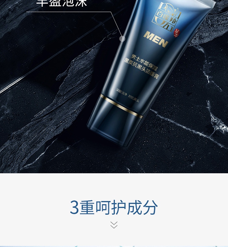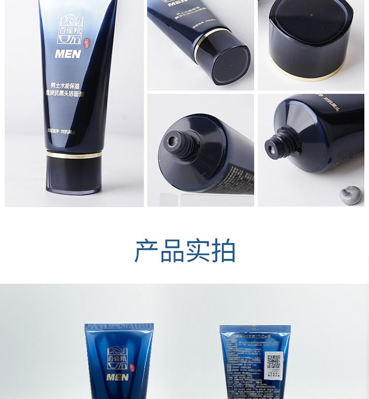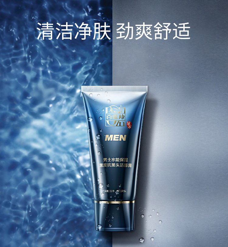 【百雀羚】男士系列水能保湿黑炭抗黑头洁面膏100g