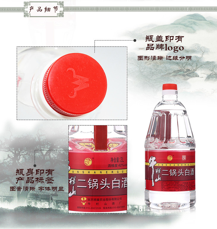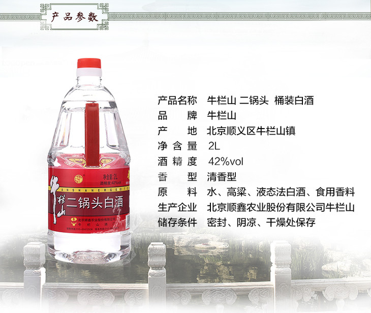【推荐】二锅头 牛桶42度清香型桶装白酒2000ml*6瓶 整箱装