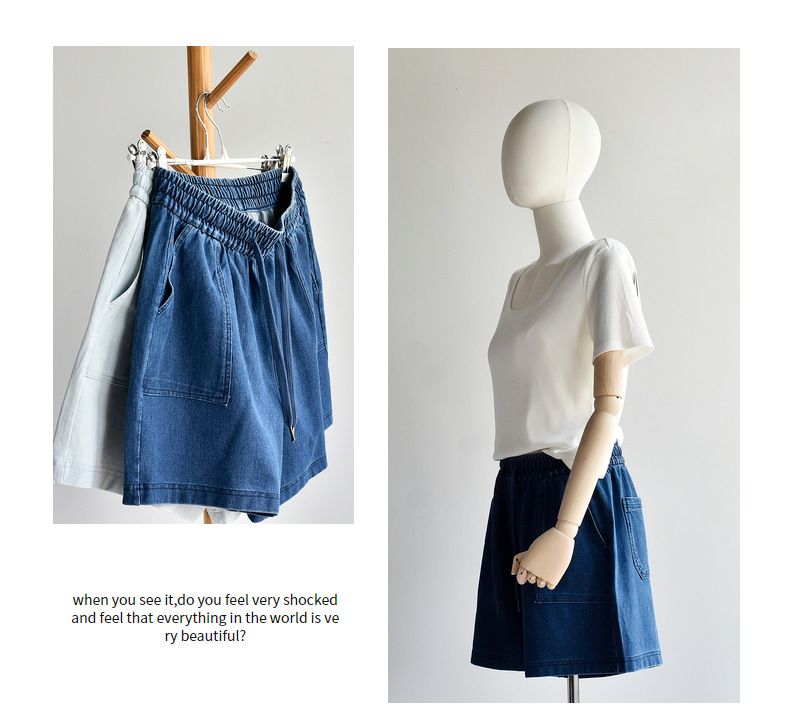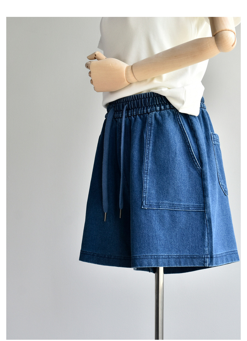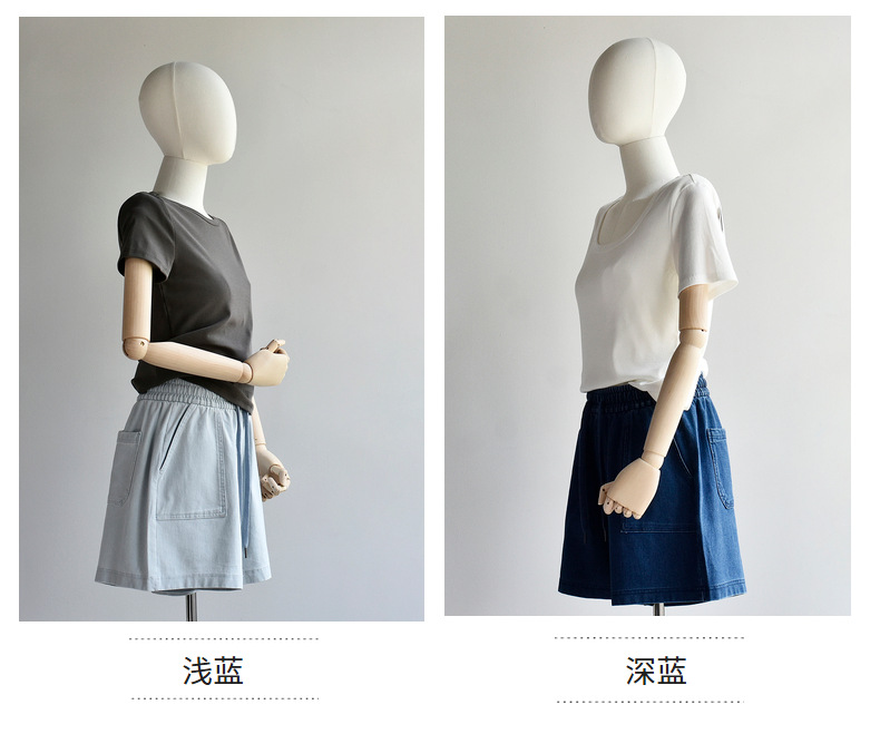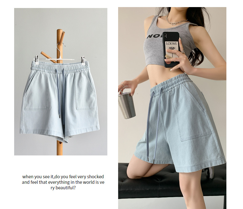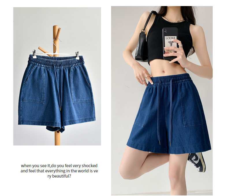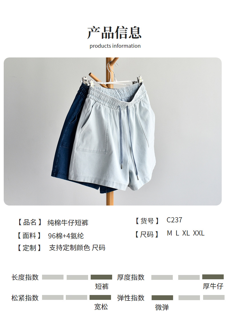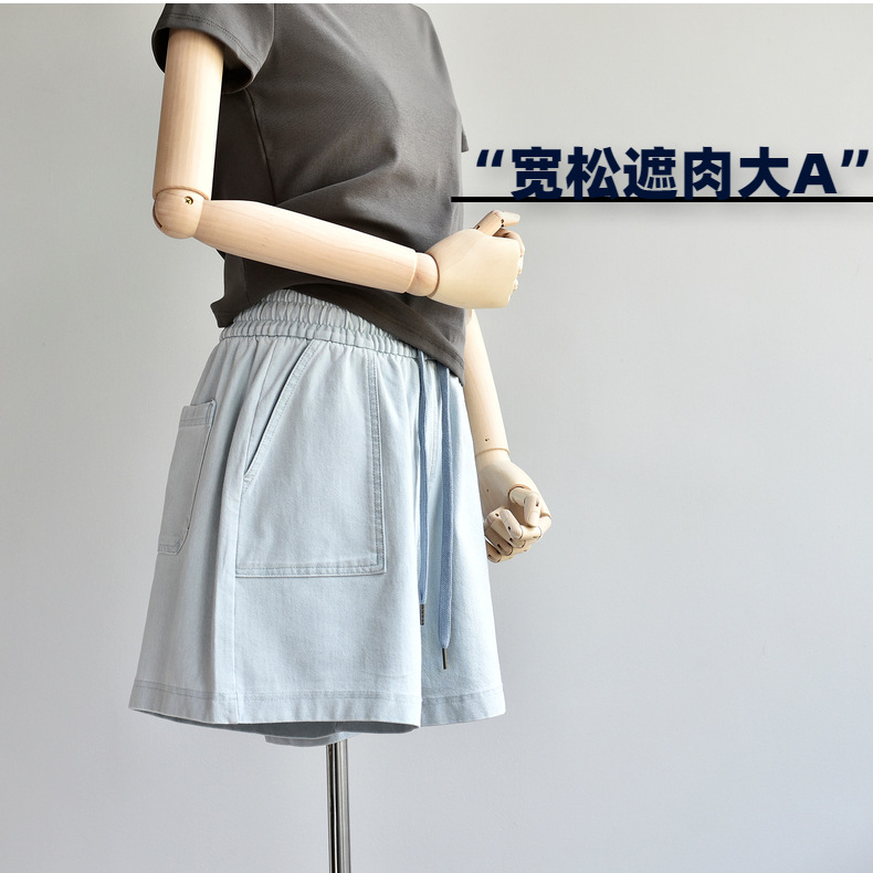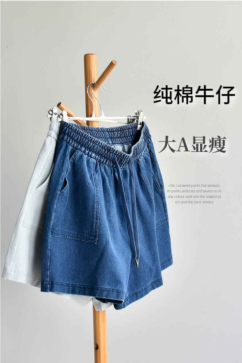 丁摩 【纯棉牛仔短裤】水洗全棉牛仔短裤女夏季宽松a字阔腿休闲裤5ZF-237