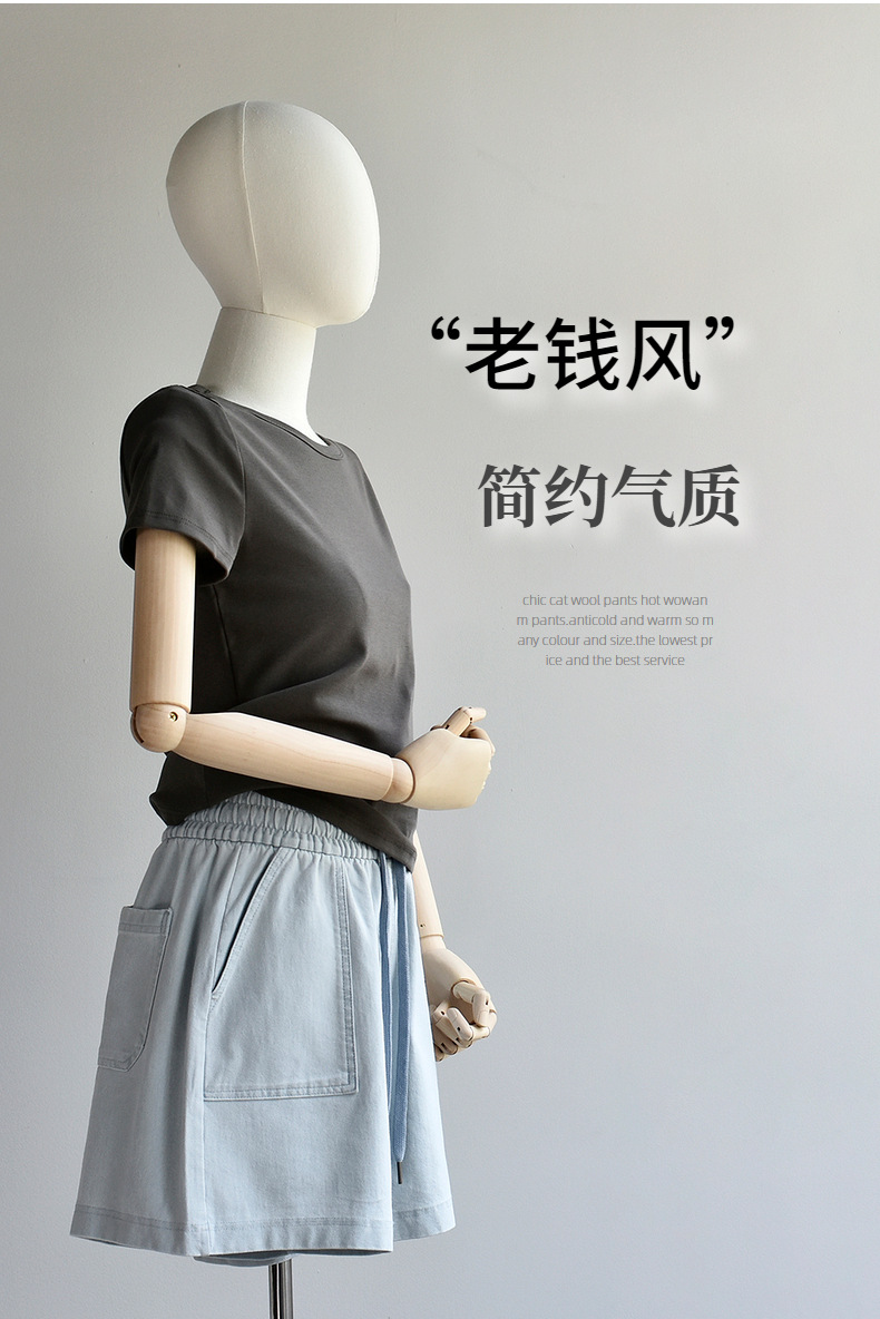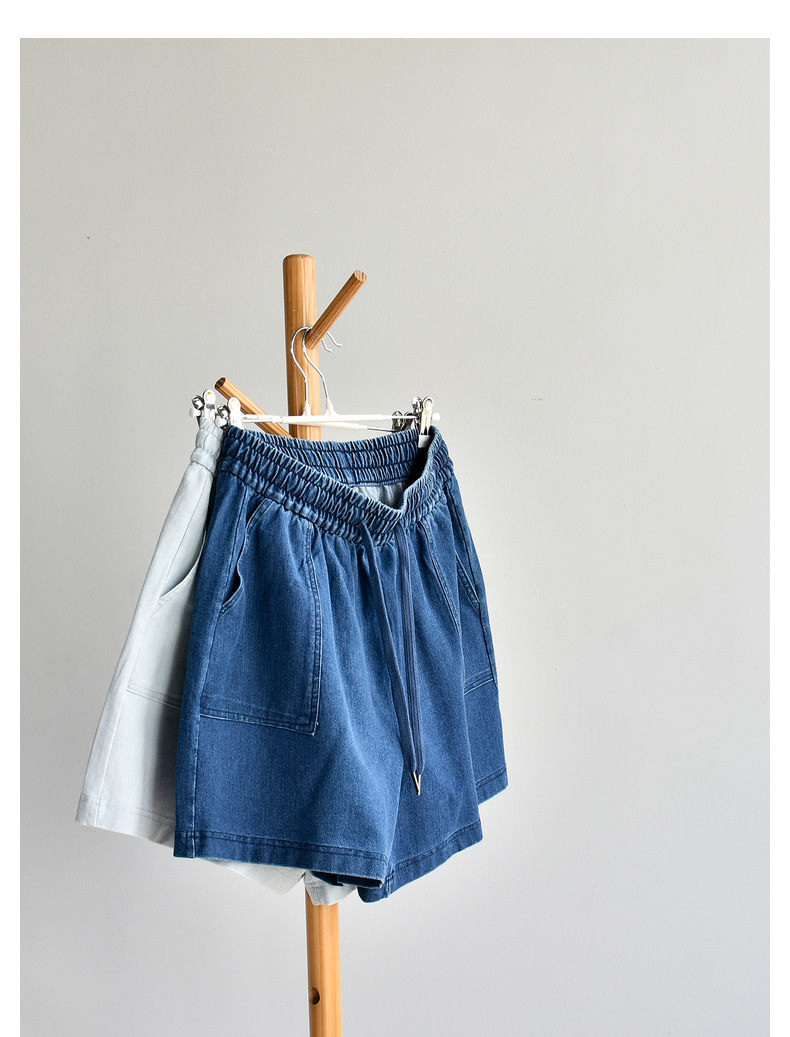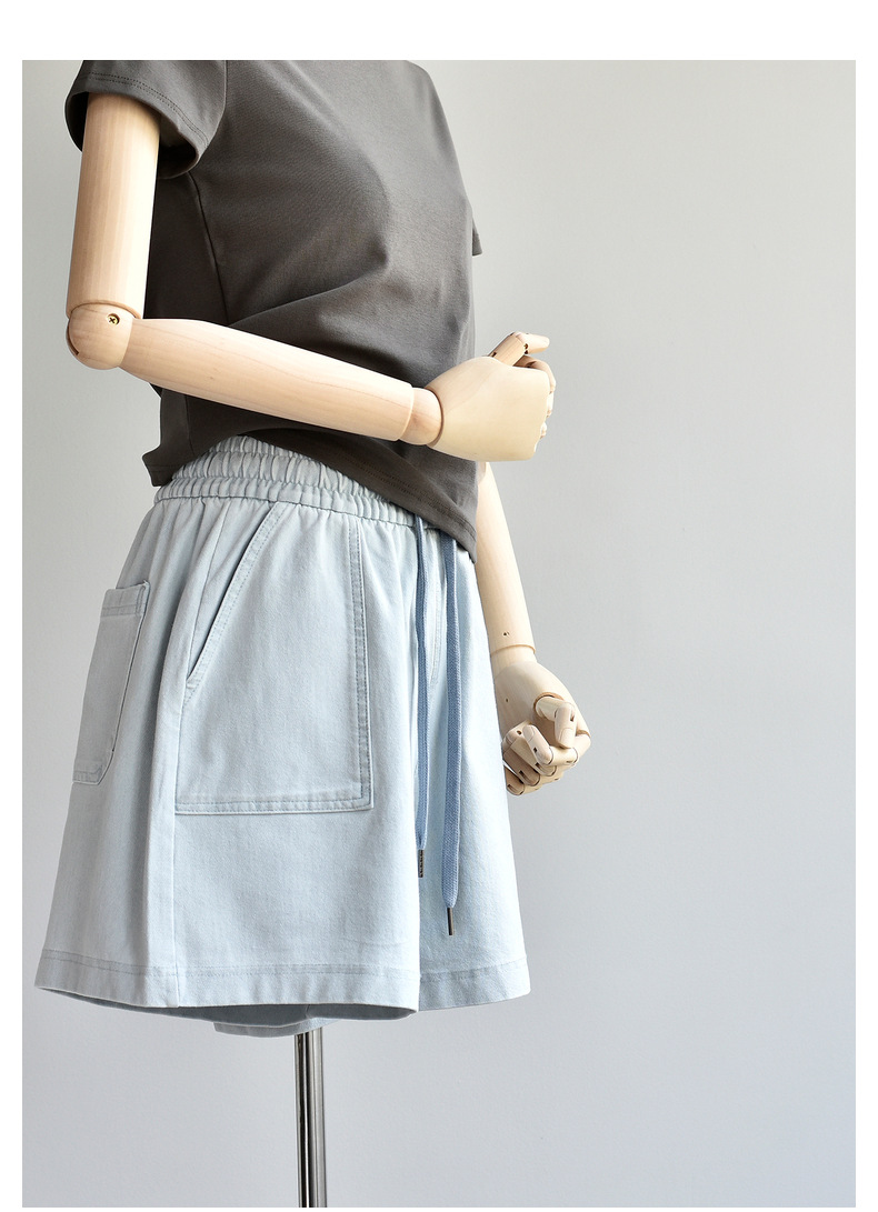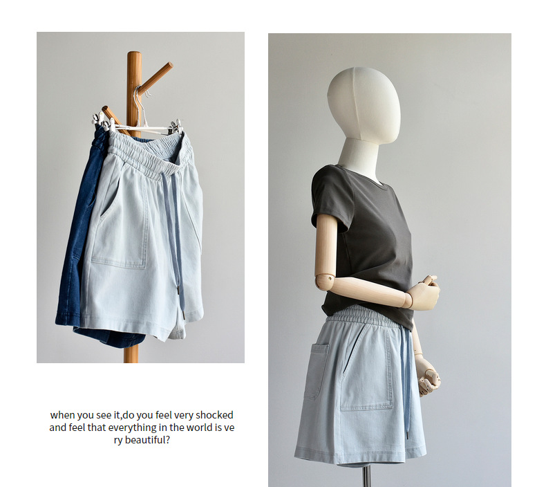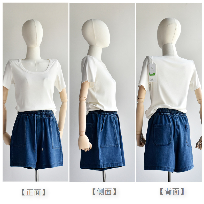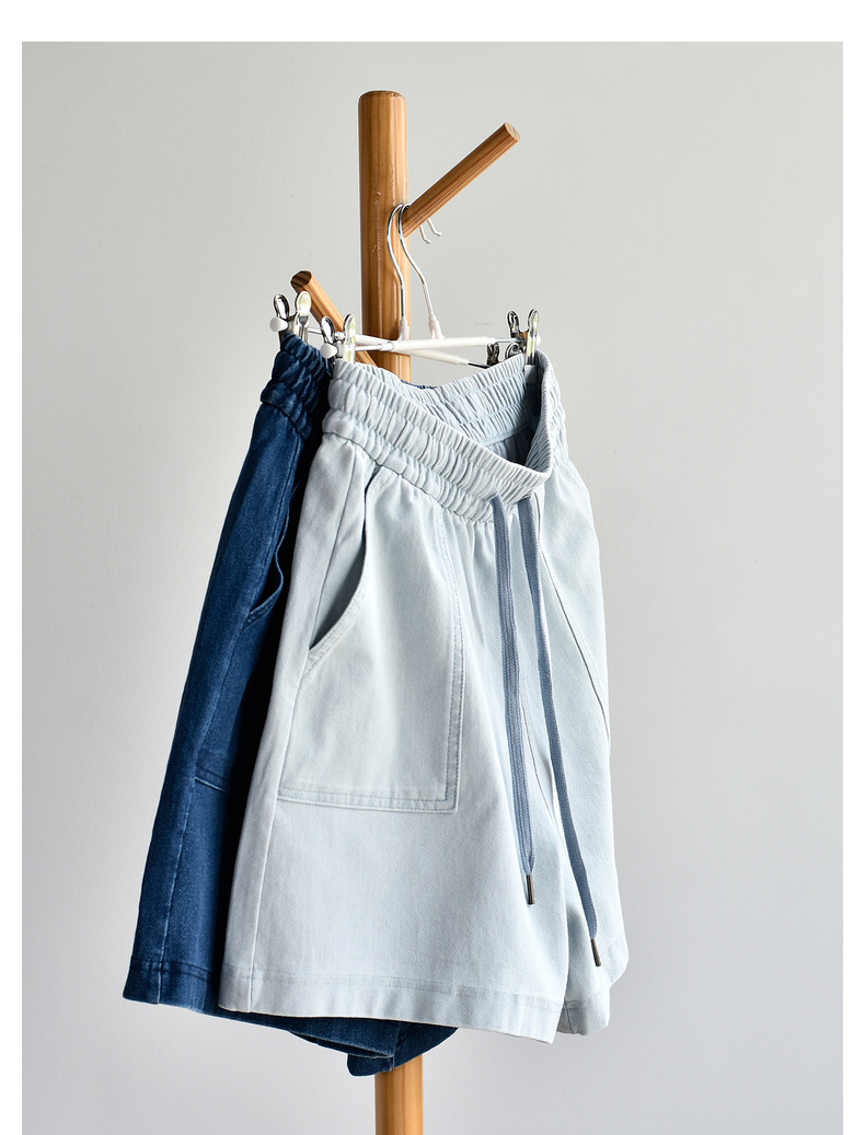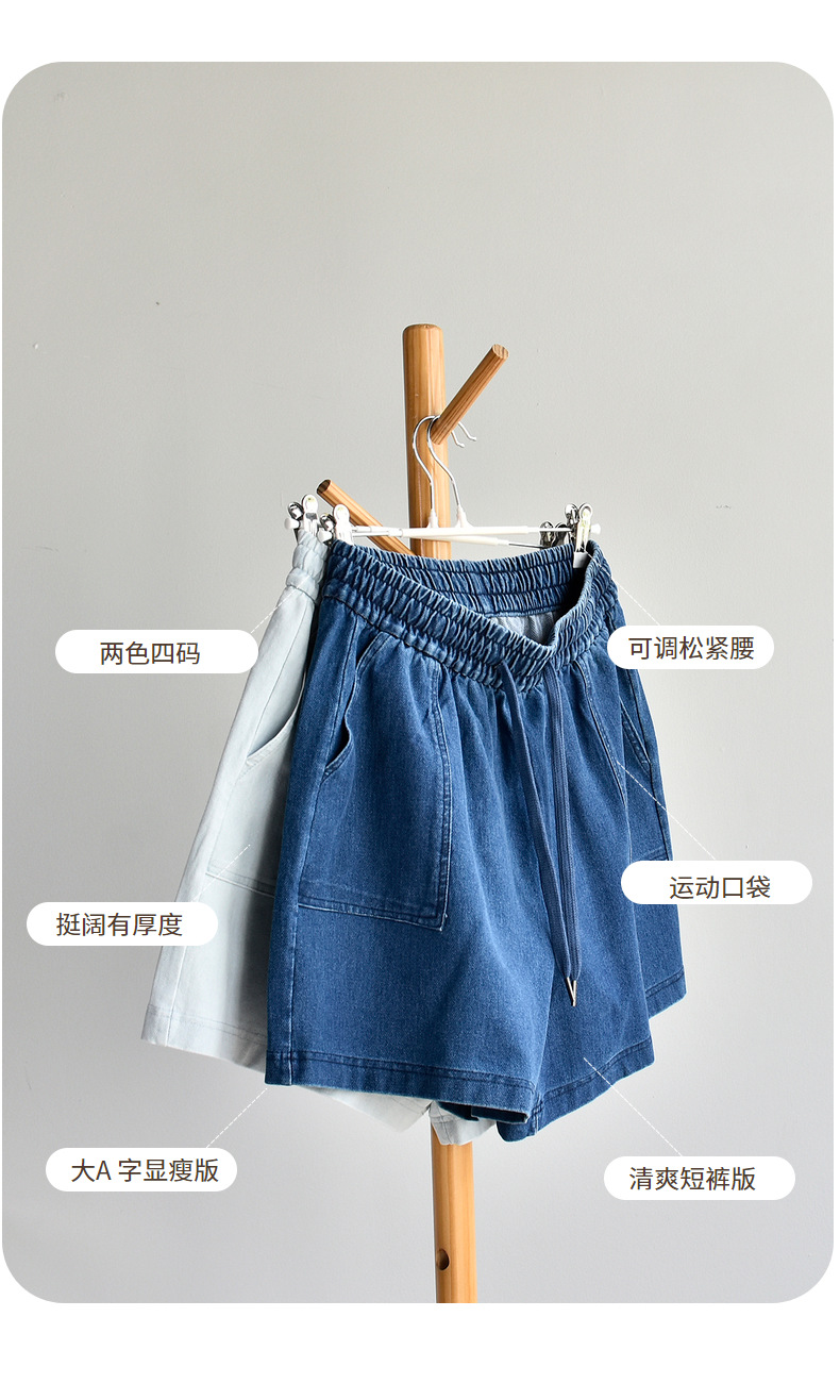 丁摩 【纯棉牛仔短裤】水洗全棉牛仔短裤女夏季宽松a字阔腿休闲裤5ZF-237
