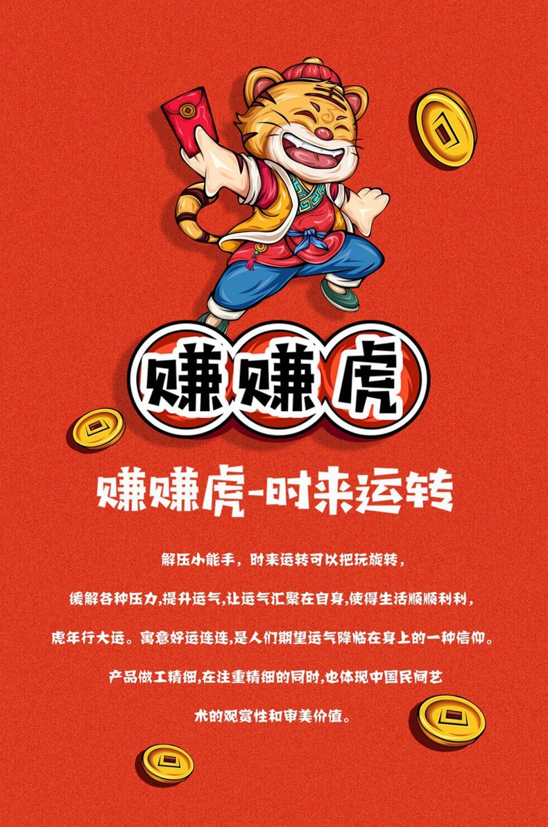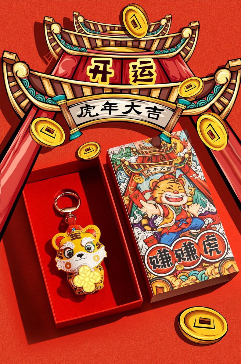 2022虎年金箔时来运转赚赚虎钥匙扣配件包包挂件挂饰车挂礼品