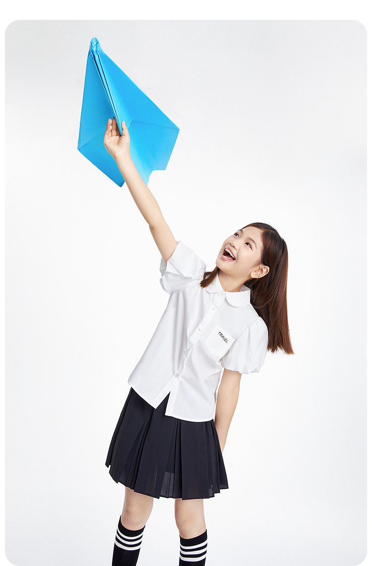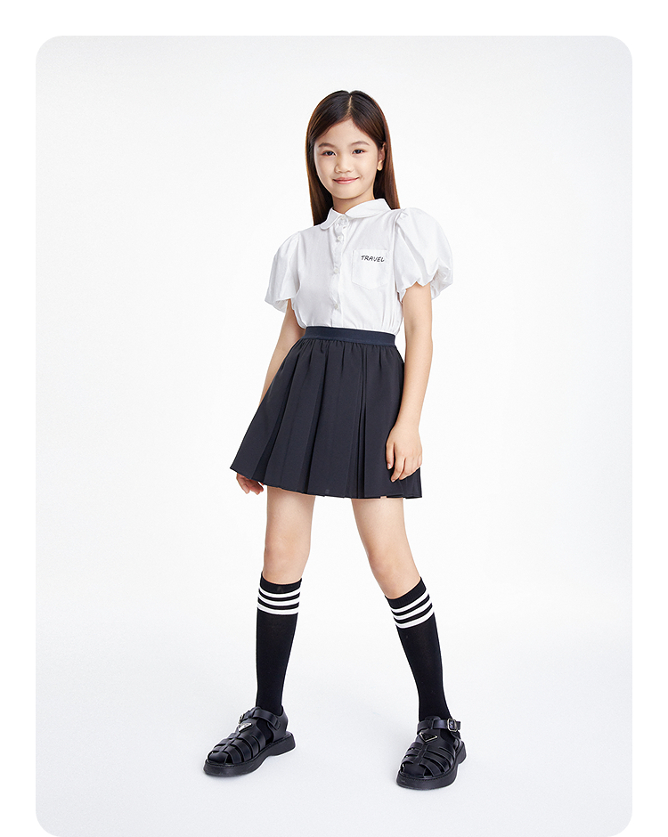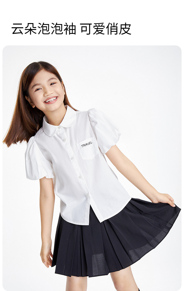 女童翻领短袖上衣夏季新款安奈儿童装EG621704