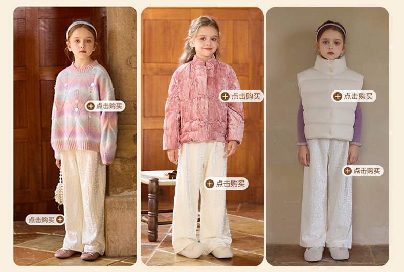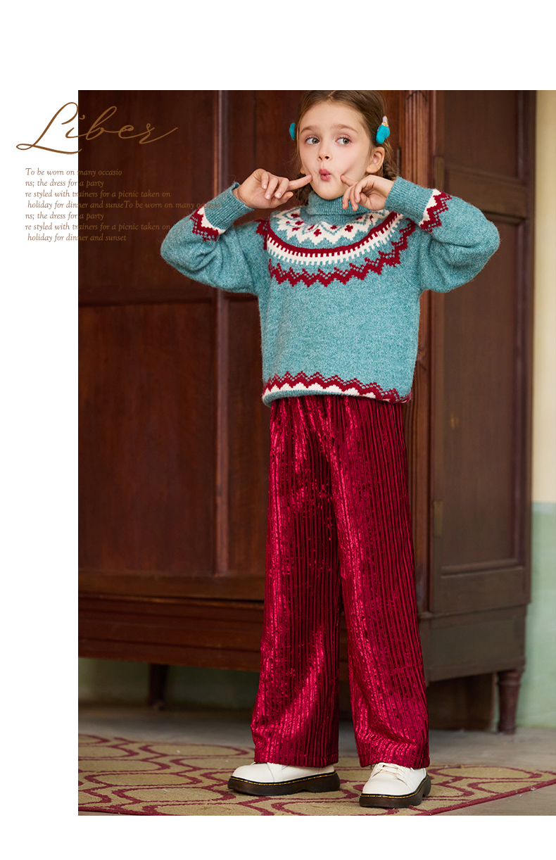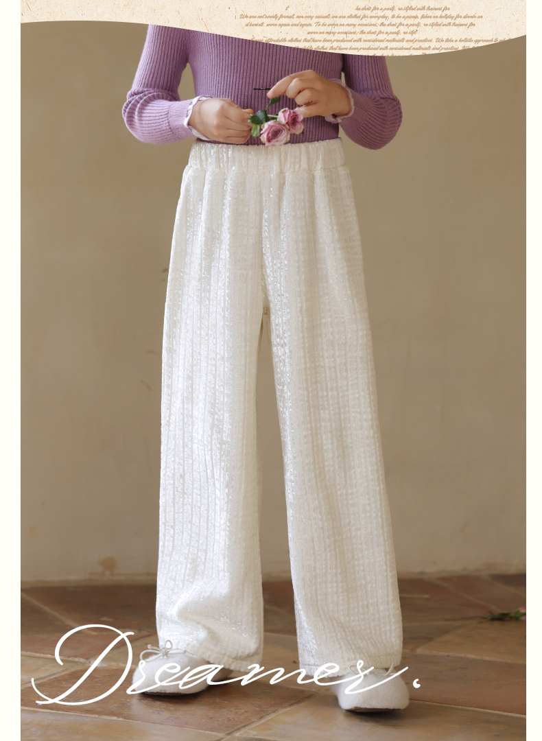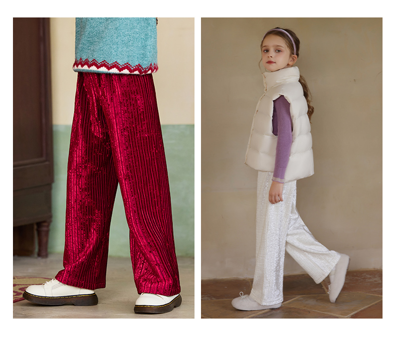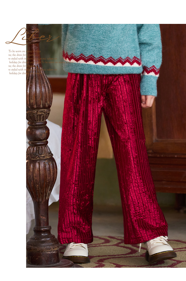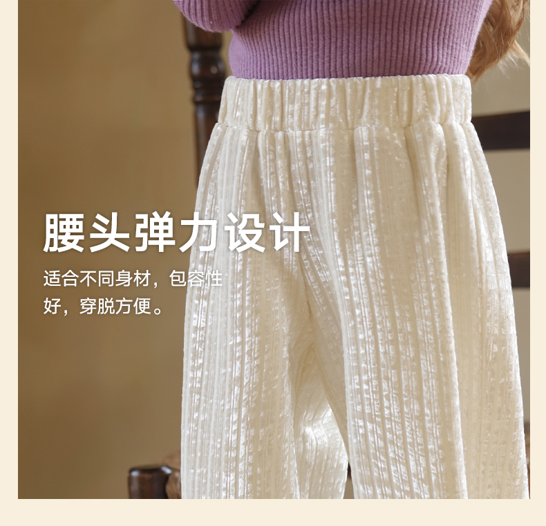 LittleNaive女童宽松休闲裤一体绒冬新款金丝绒裤儿童直筒加绒裤