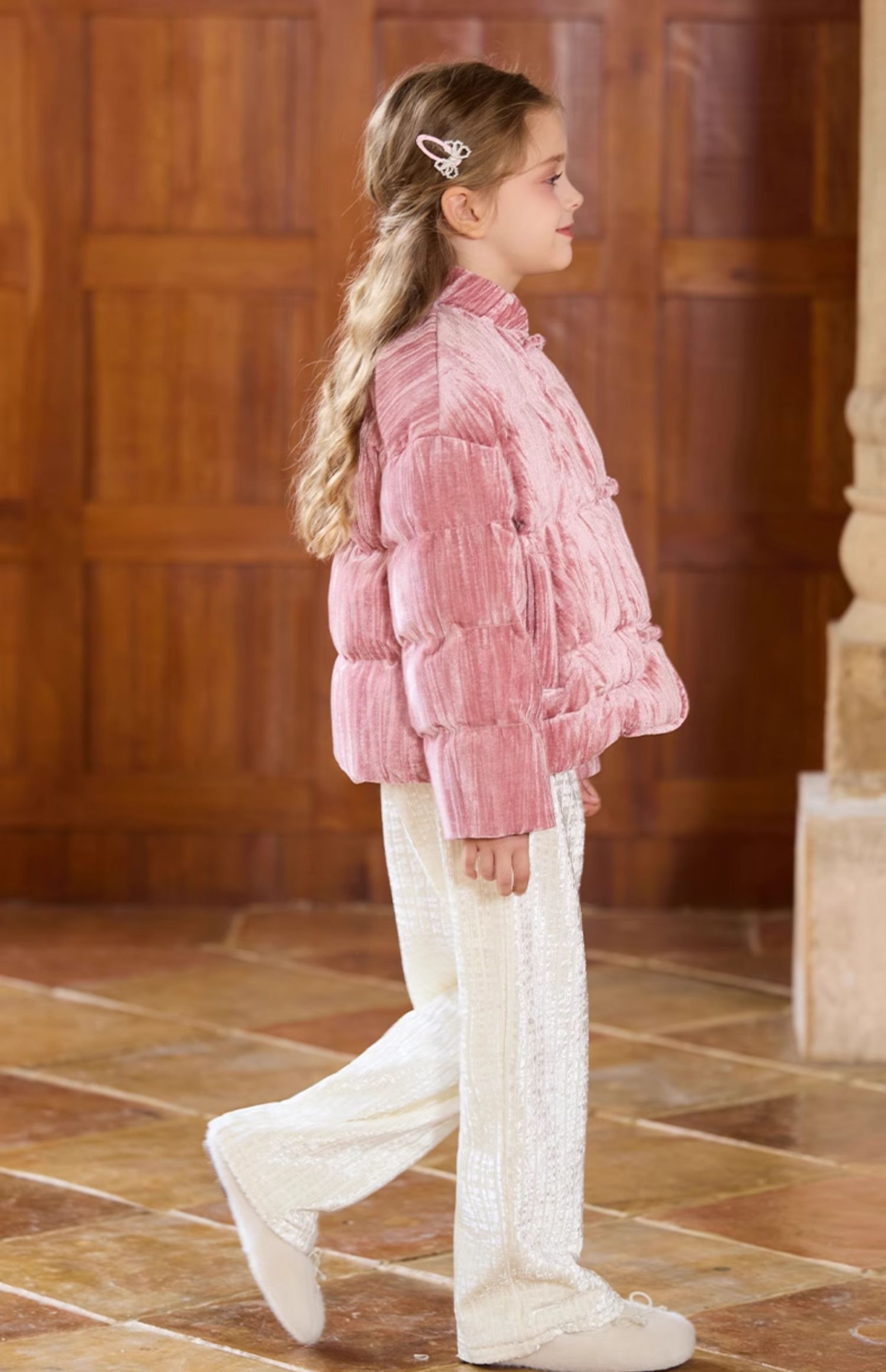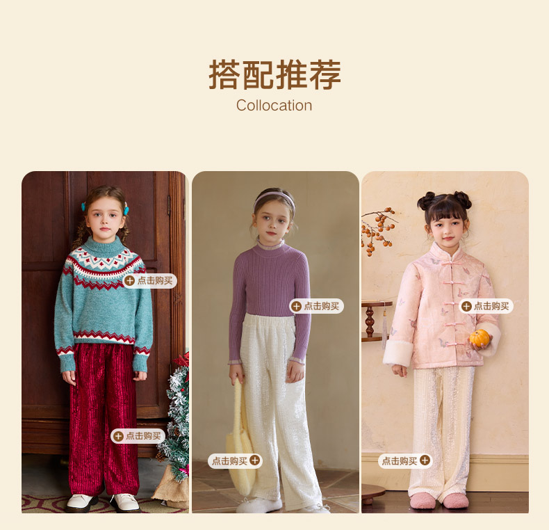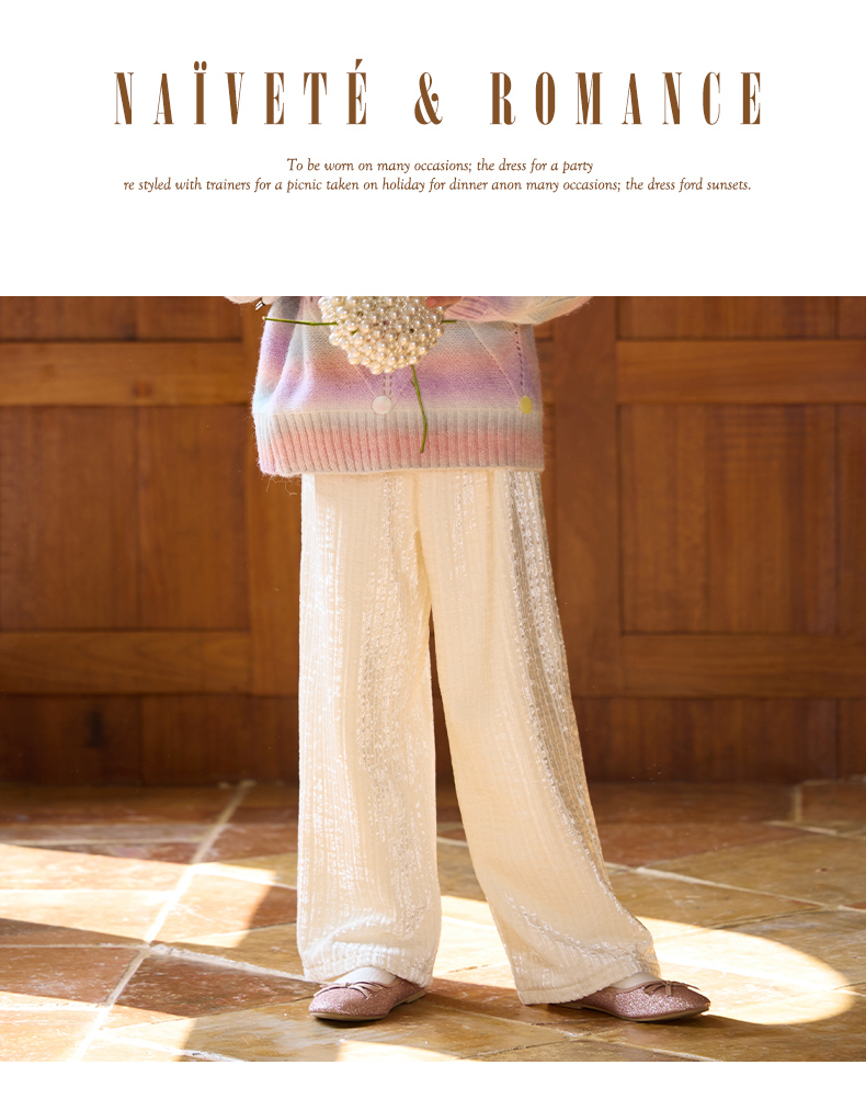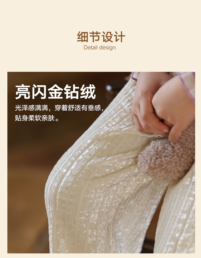LittleNaive女童宽松休闲裤一体绒冬新款金丝绒裤儿童直筒加绒裤