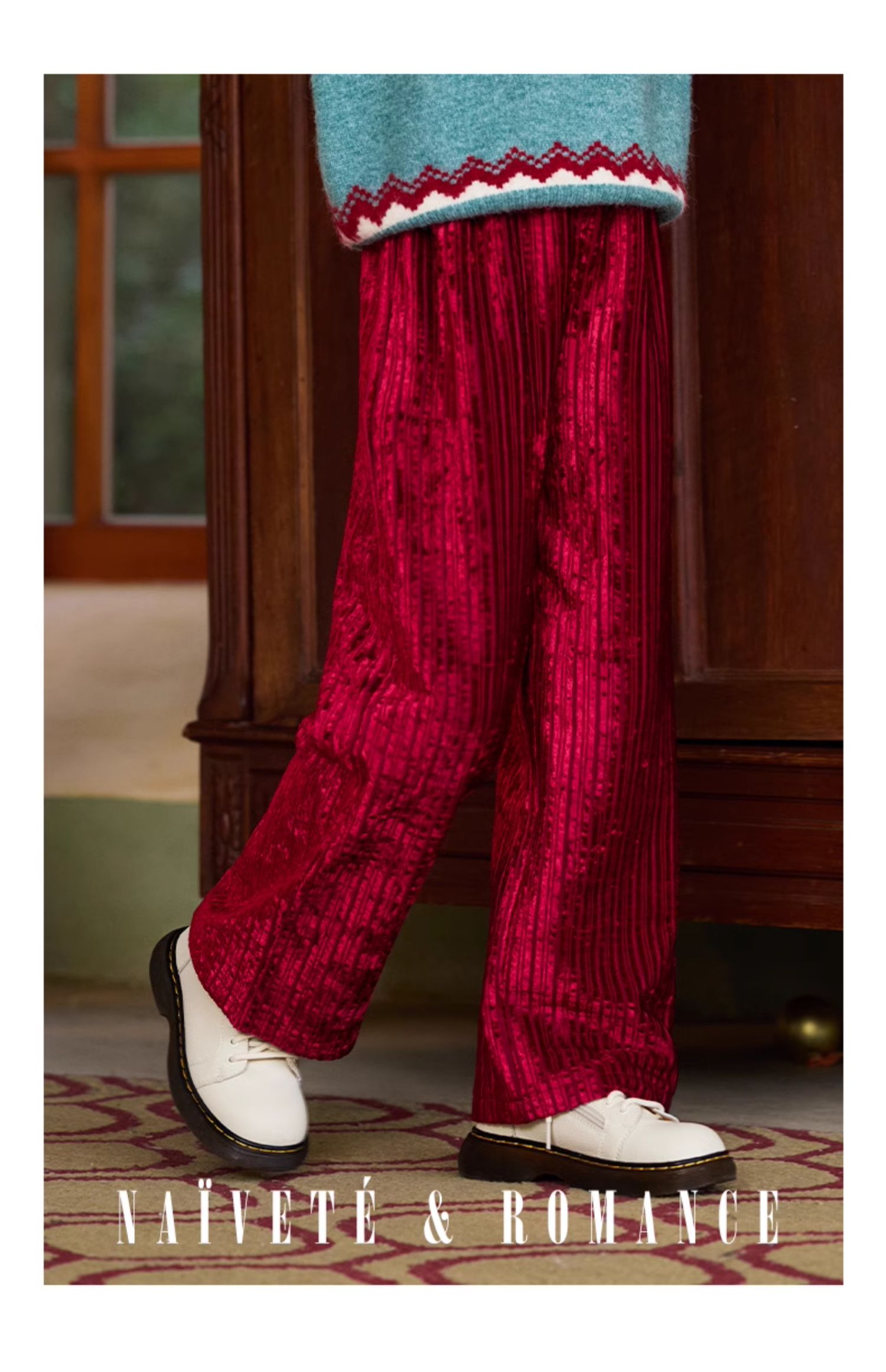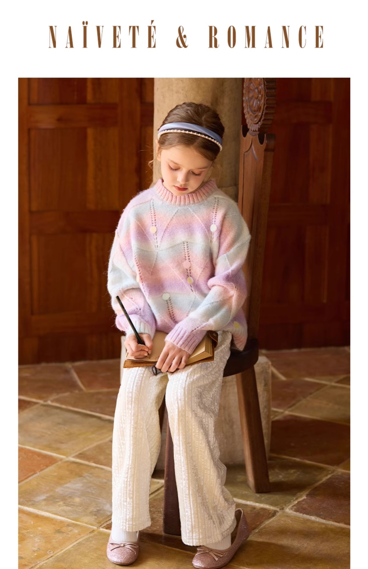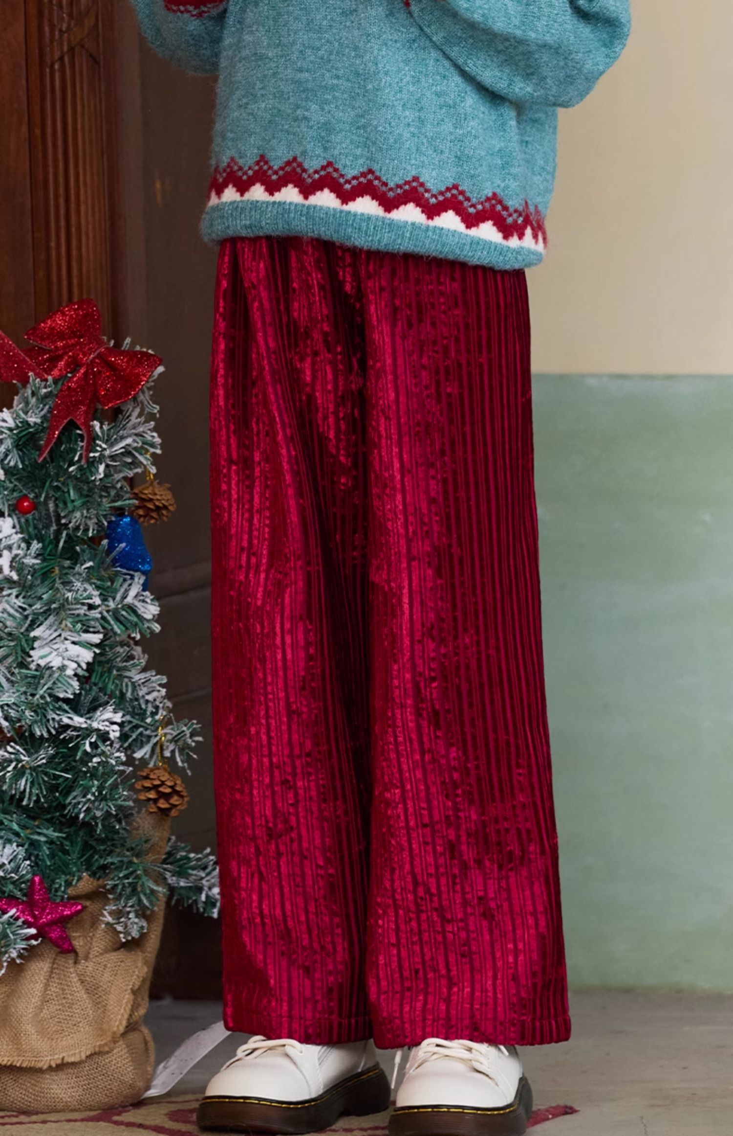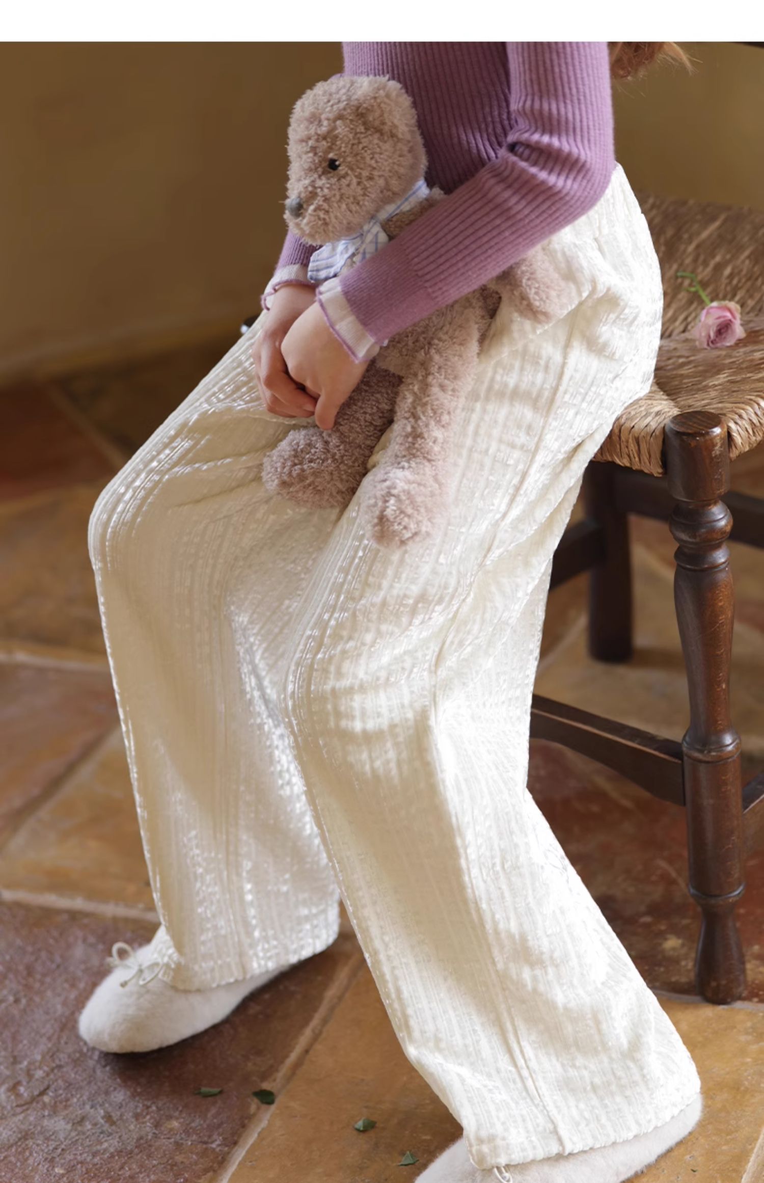 LittleNaive女童宽松休闲裤一体绒冬新款金丝绒裤儿童直筒加绒裤