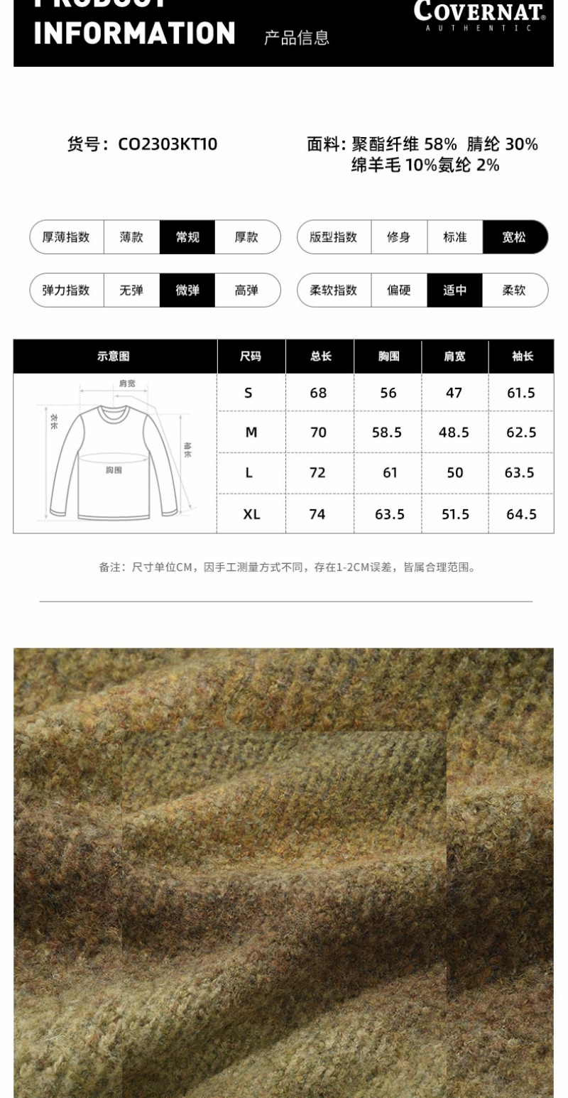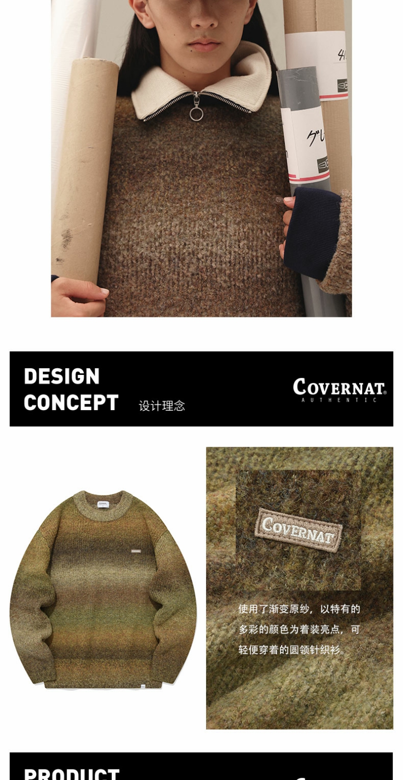 Covernat秋季新品渐变圆领针织衫毛衣男女同款CO2303KT10