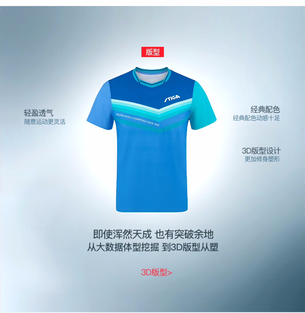 Stiga斯帝卡乒乓球服CA-S1A斯蒂卡乒乓球服运动短袖T恤吸湿排汗速干透气乒乓球衣比赛服 3色可选