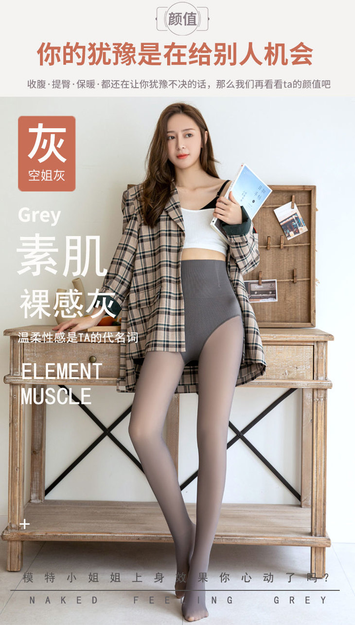PDD-NJRANWL201006新款南极人空姐灰透肤加绒高腰收腹连裤袜