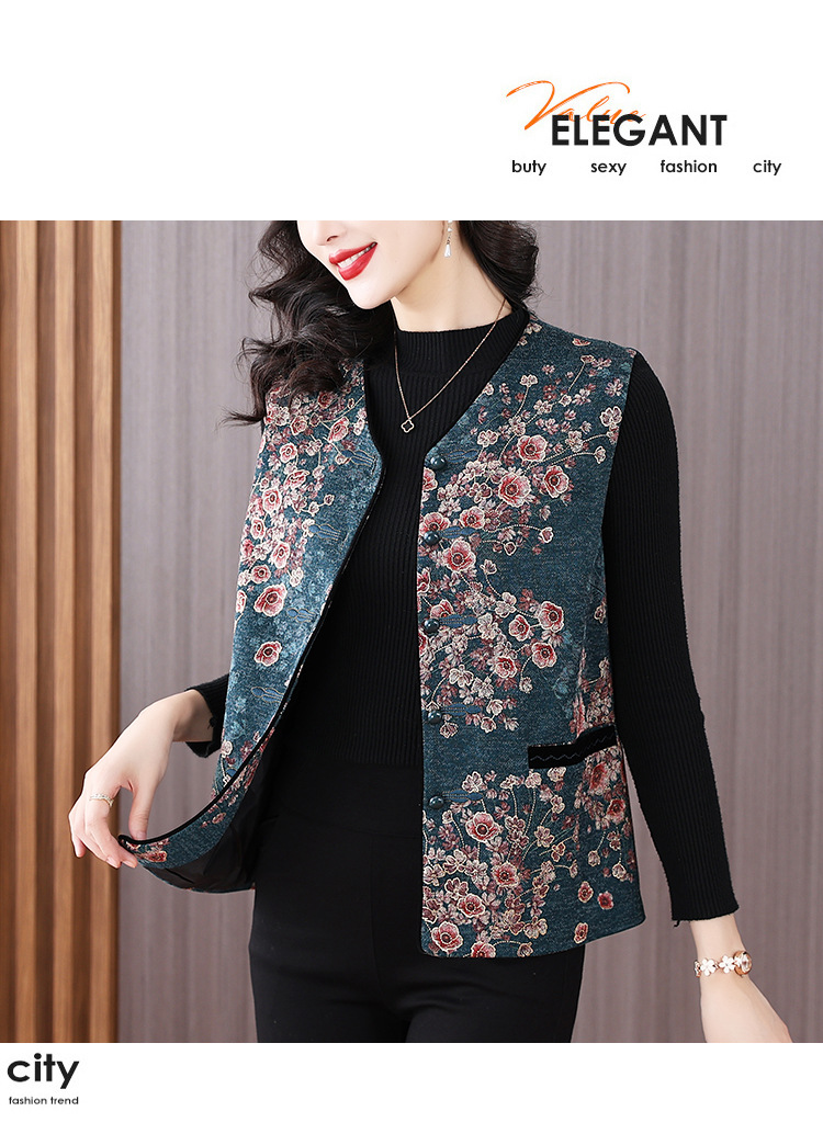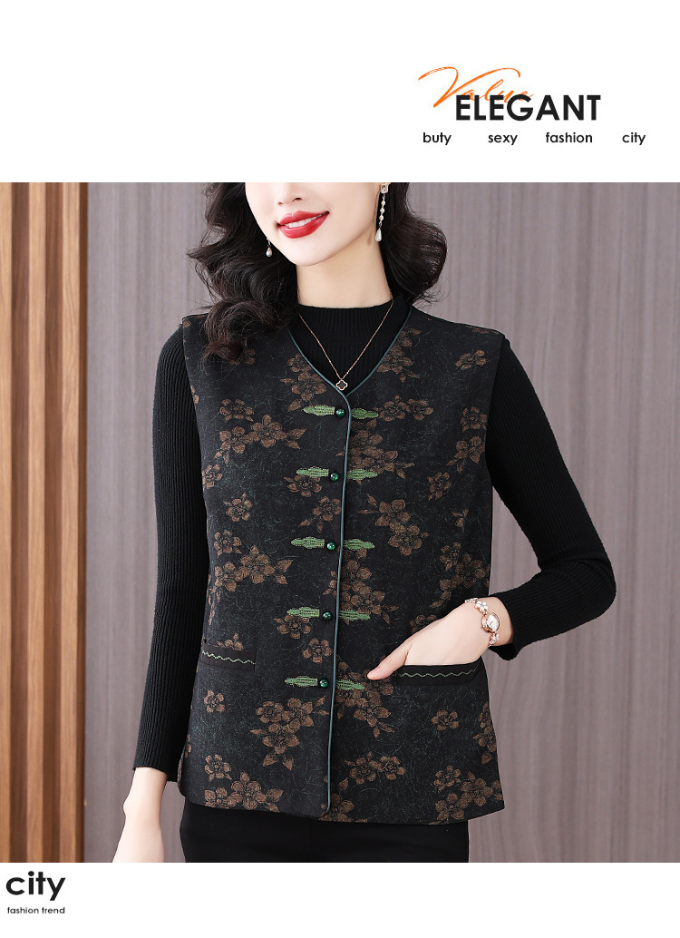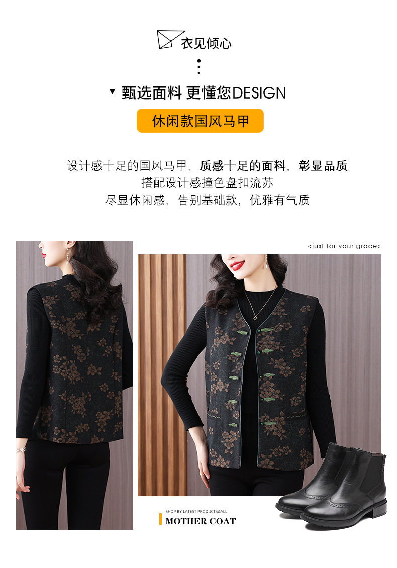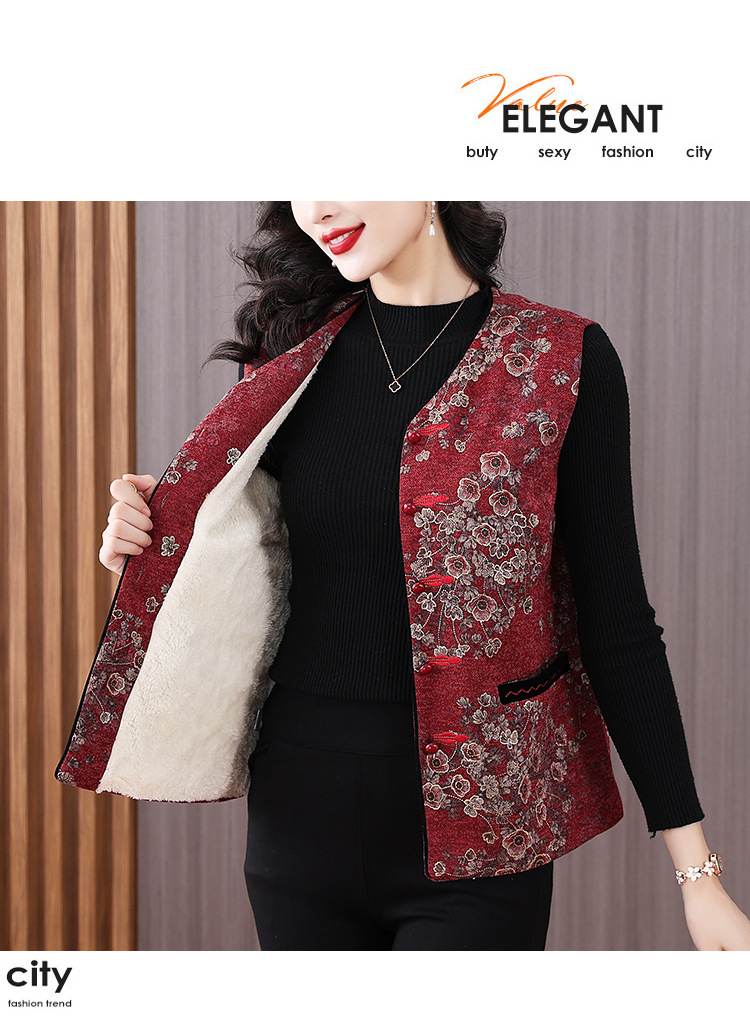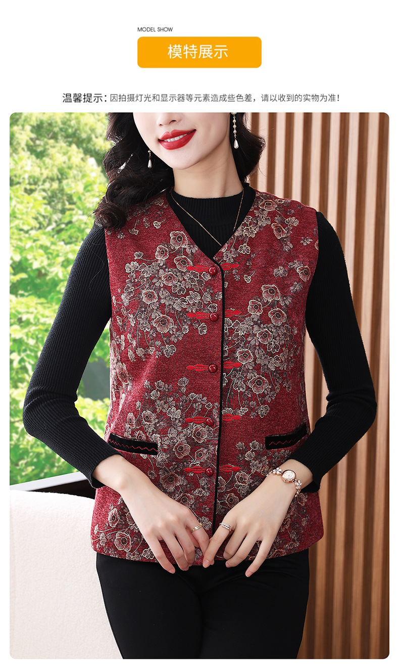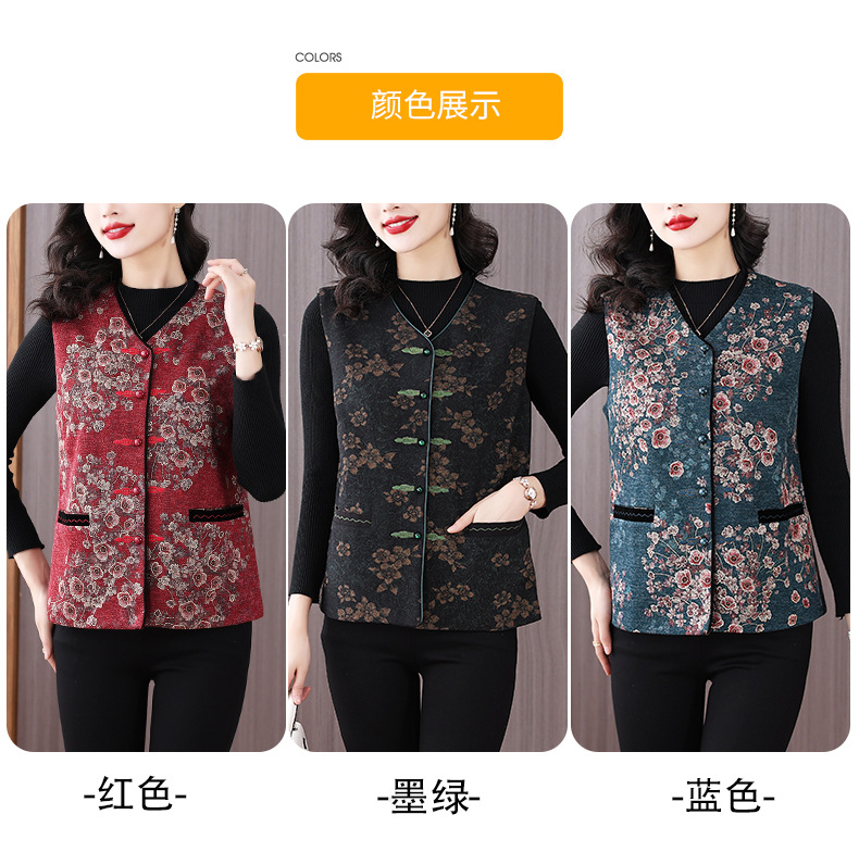 SMZ11641国风盘扣马夹背心女冬季2023年新款气质优雅加绒保暖坎肩无袖外套