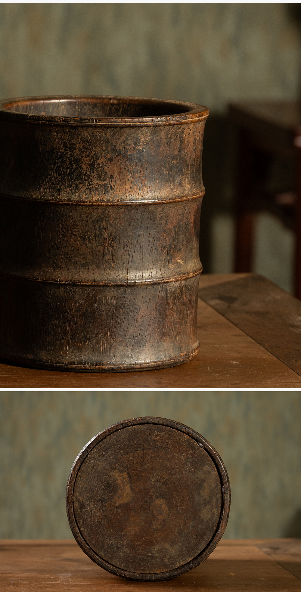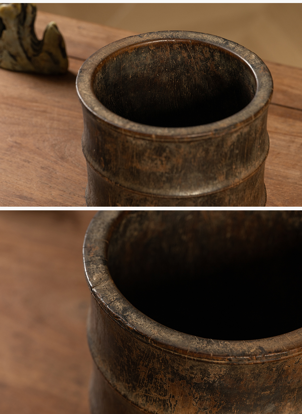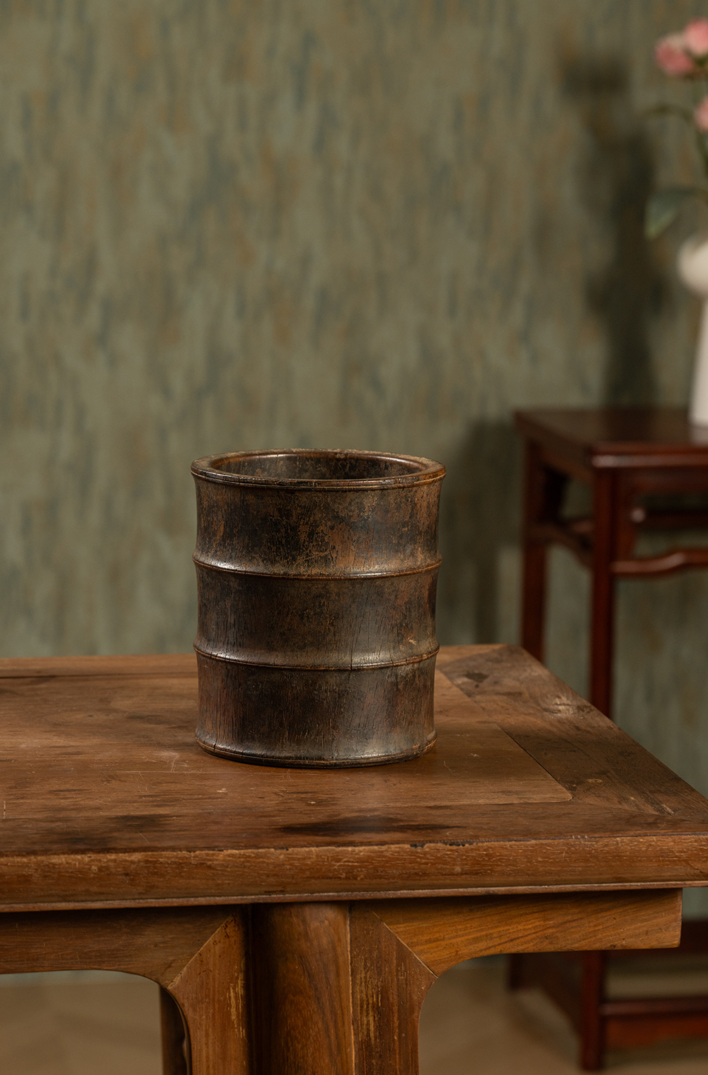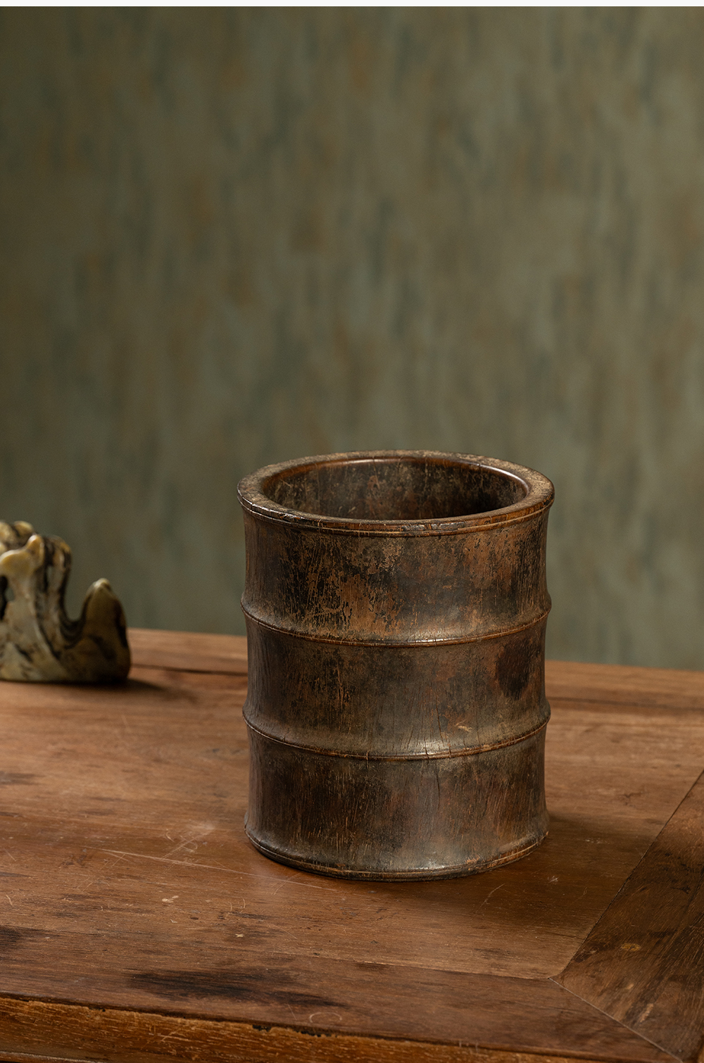 明 黄花梨竹节工笔筒