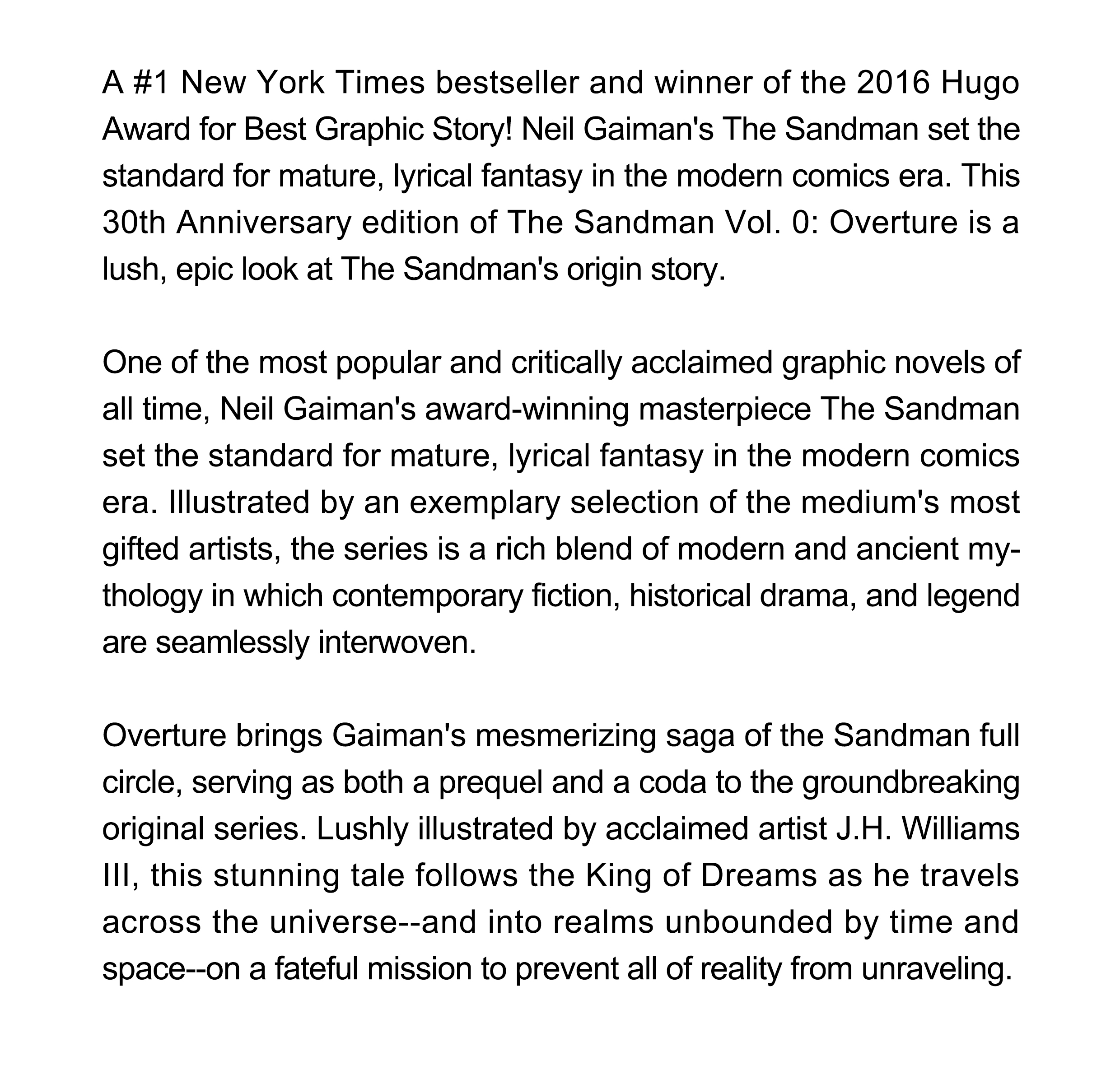 英文原版 睡魔 Sandman Overture 30Th Anniversary Edition 英文原版 睡魔 序曲 30周年版 漫画合集 图像小说