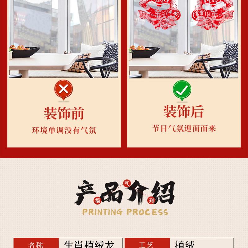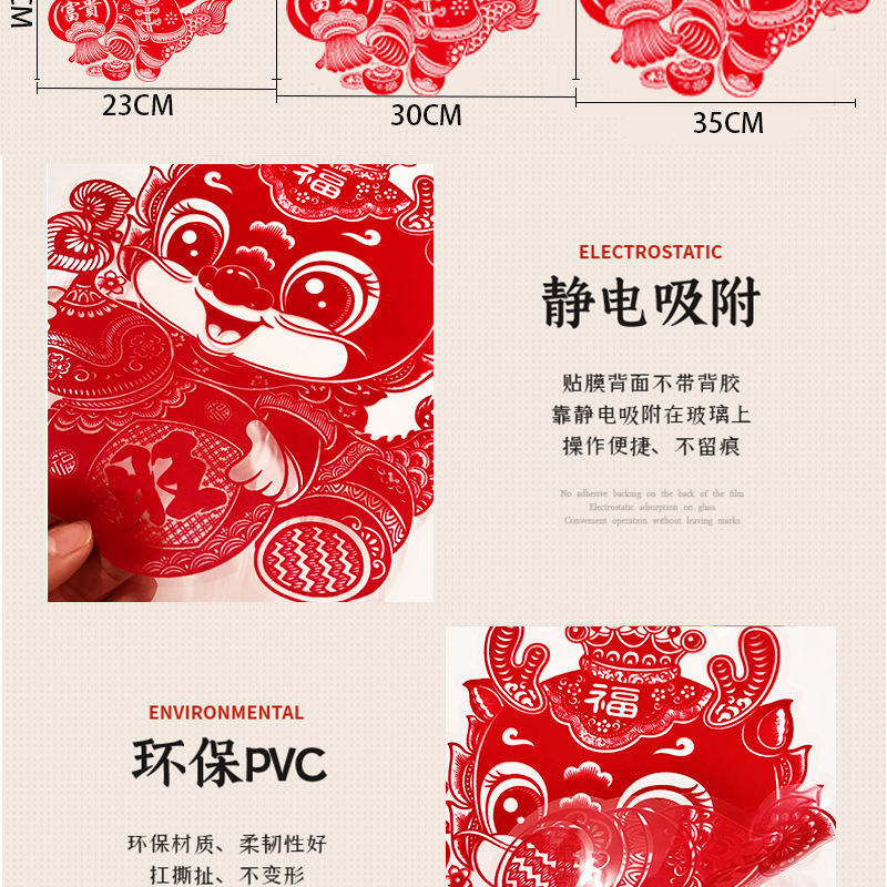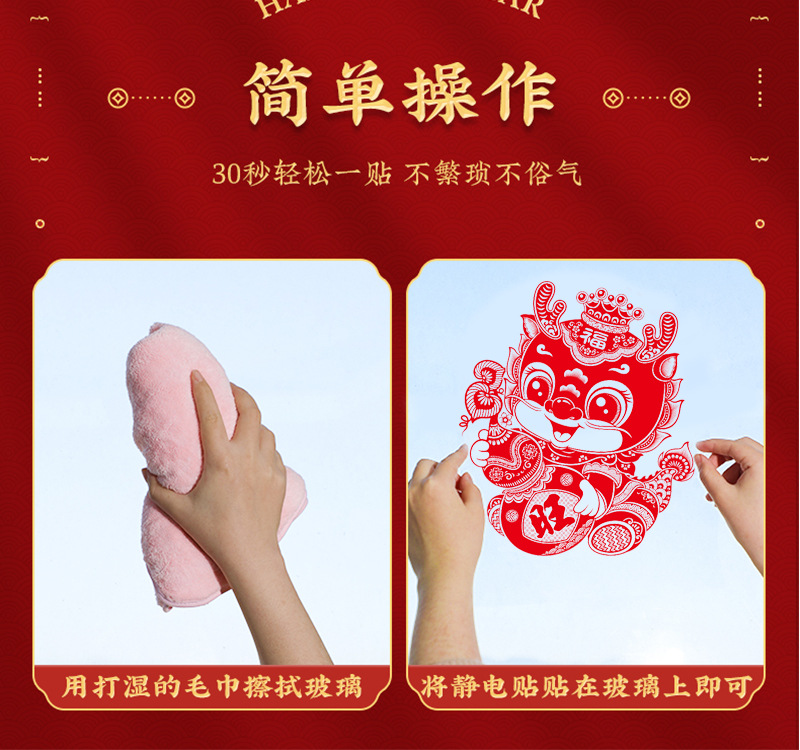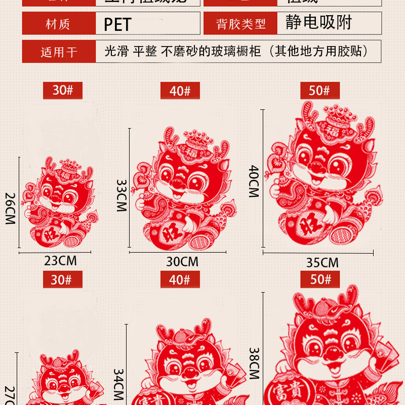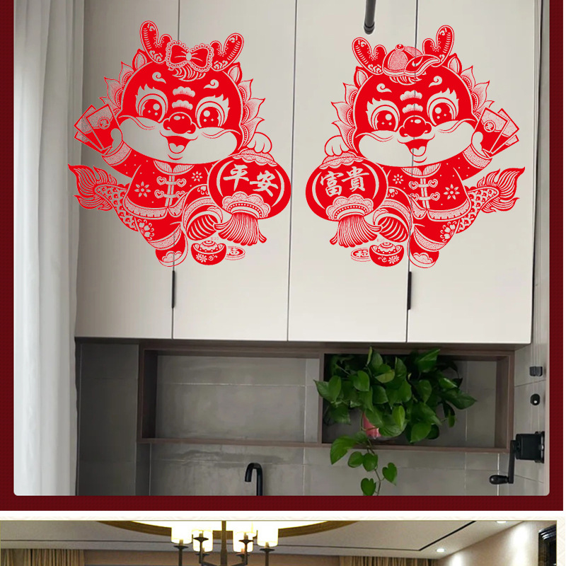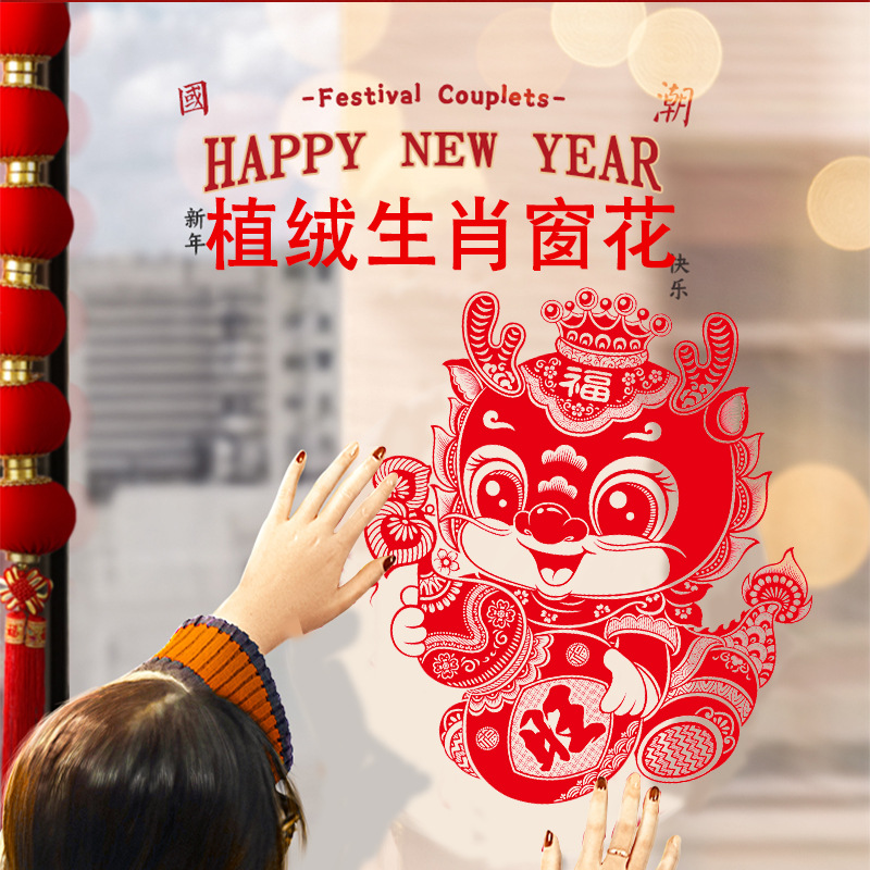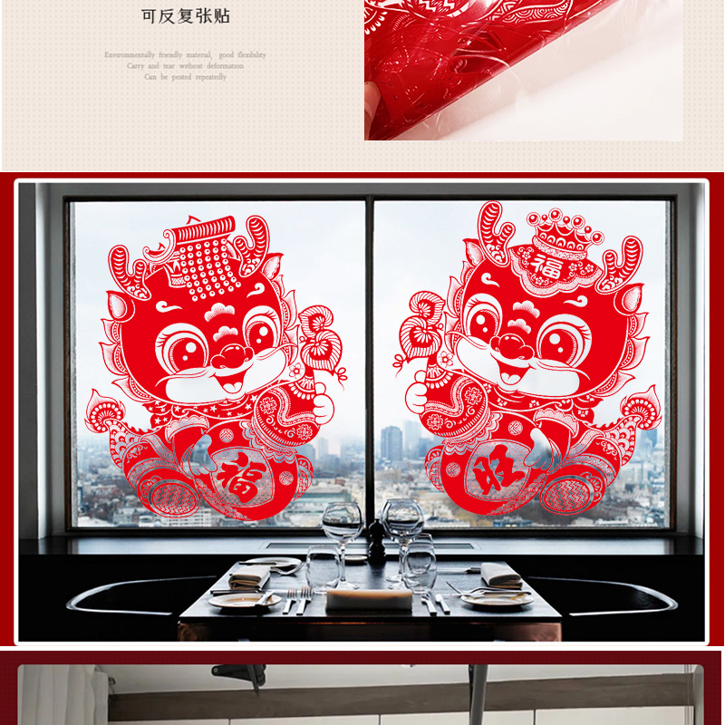 【橱窗装扮,提升格调!】2024龙年生肖绒面加厚剪纸窗花,静电贴门窗贴纸过年春节龙年装饰门,让简约的家居都一起放大光彩!