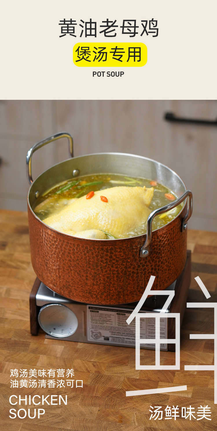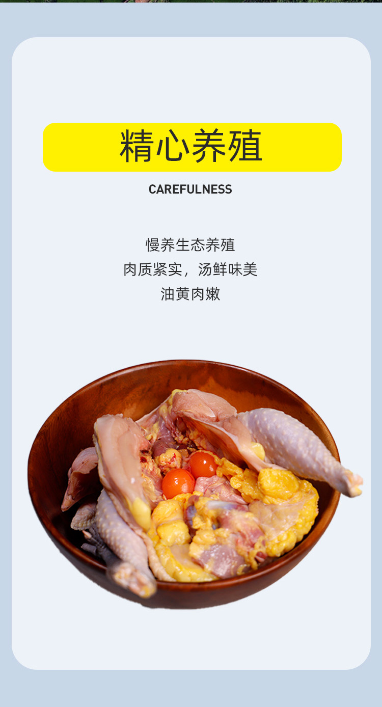 老母鸡是为了炖汤专门设计的产品,老母鸡的品质非常好,带有可见的黄油和蛋花,炖起汤来非常地鲜亮。