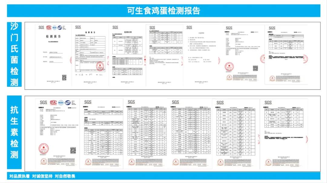 不同于一些小作坊式的养殖户,作为行业内一直专注禽蛋产品研发的尖端大厂,他们的产品从养殖到上市过程中都有严格的要求。(蛋鲜森的产品检测报告,“不得检出”是指没有检测出该物质)