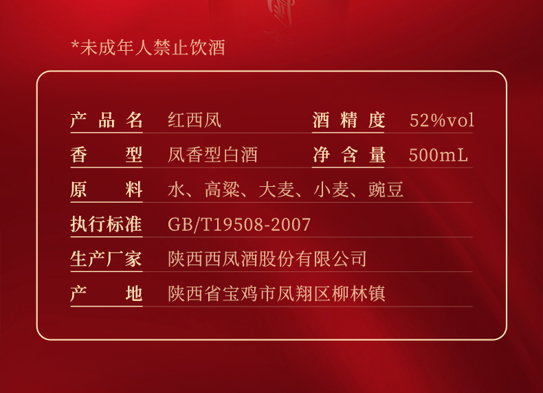 【酒厂直营】52度红西凤 三千年传承的凤香 单瓶500mL
