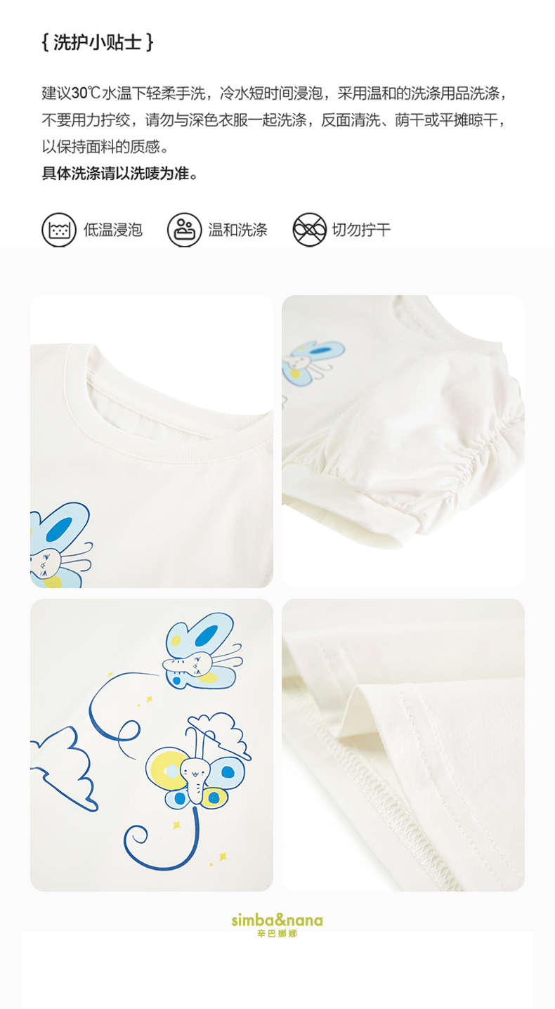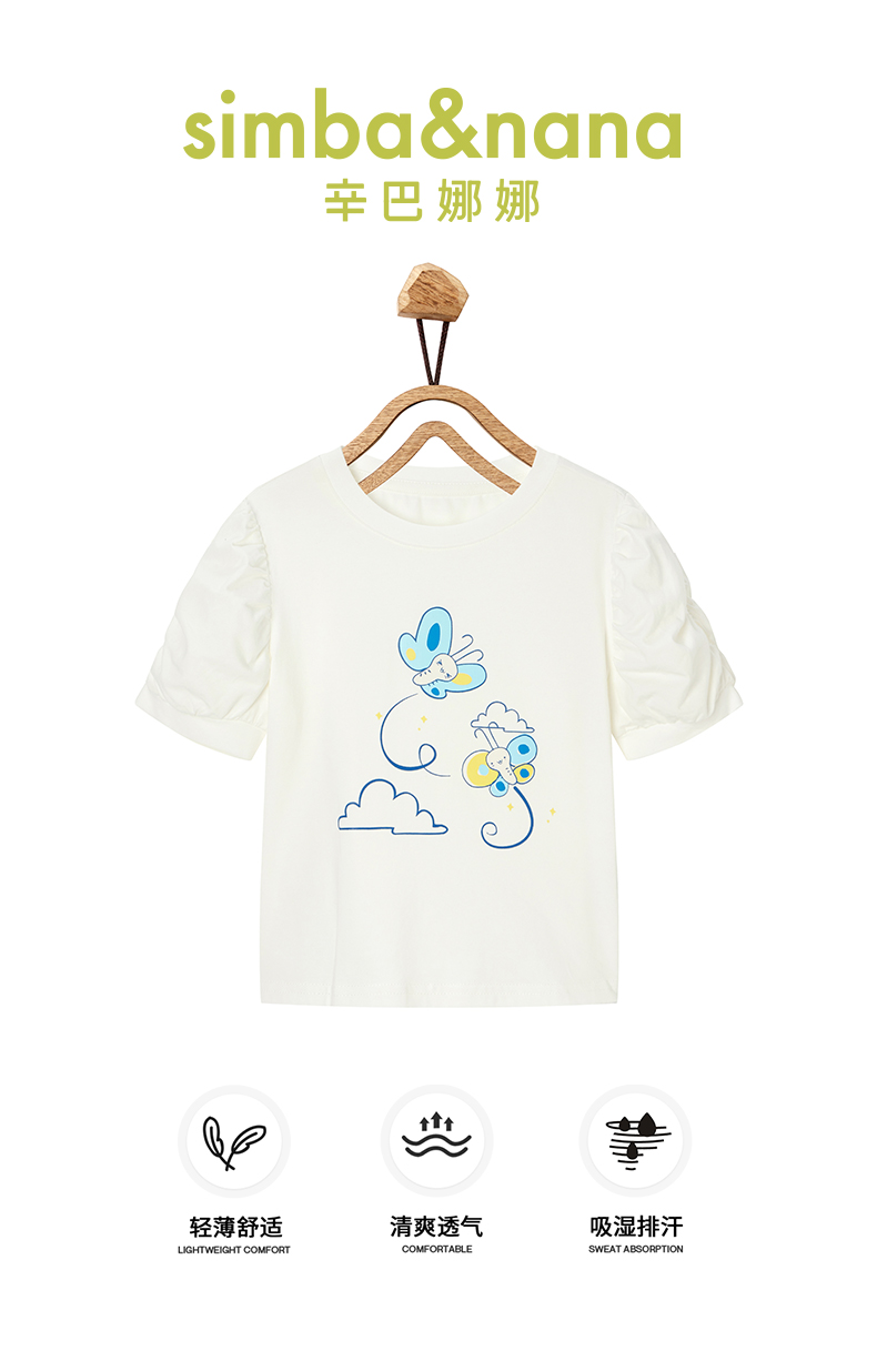 【辛巴娜娜】simbanana女童夏季新款休闲短袖纯棉小蝴蝶印花T恤宝宝上衣小童装