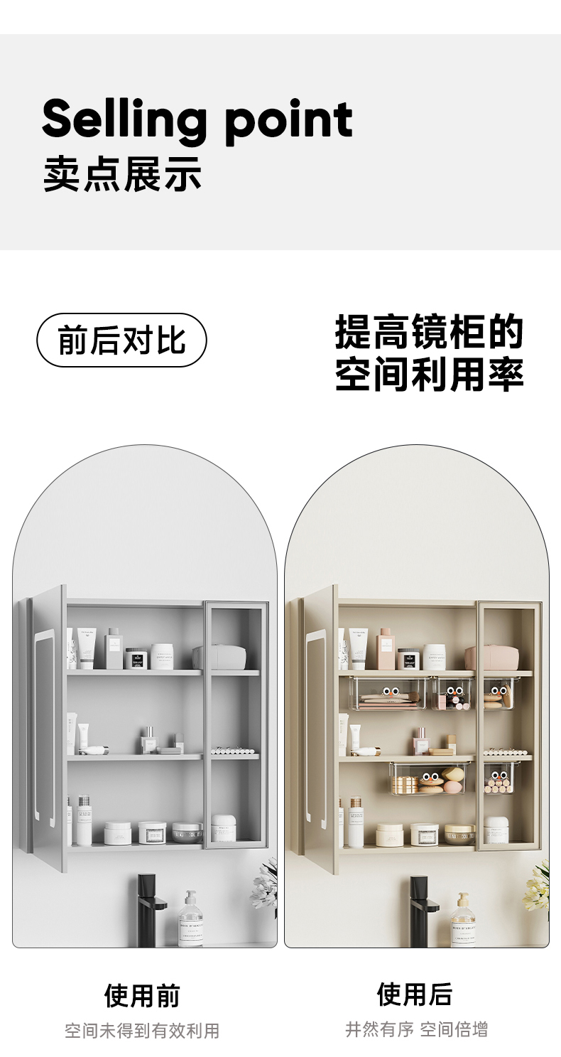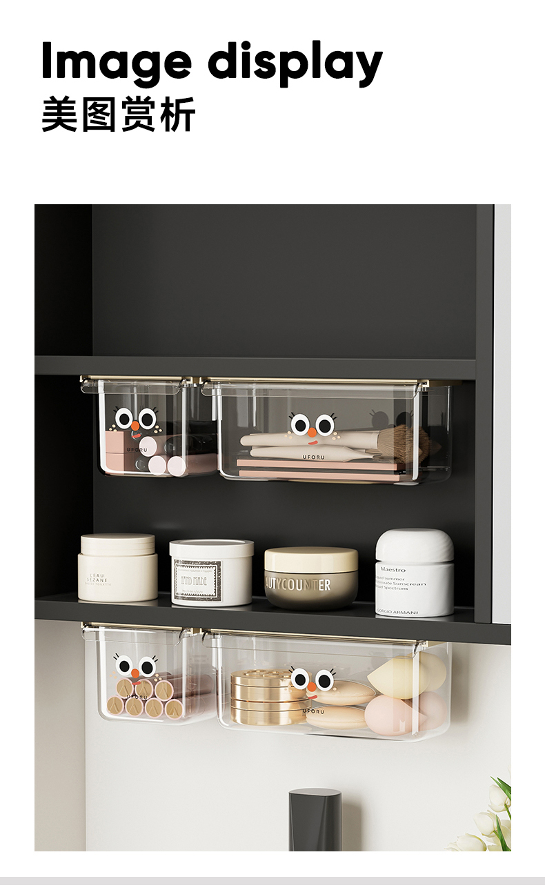 摩登主妇镜柜下抽屉式收纳盒卫生间浴室卸妆棉口红棉签下挂置物架