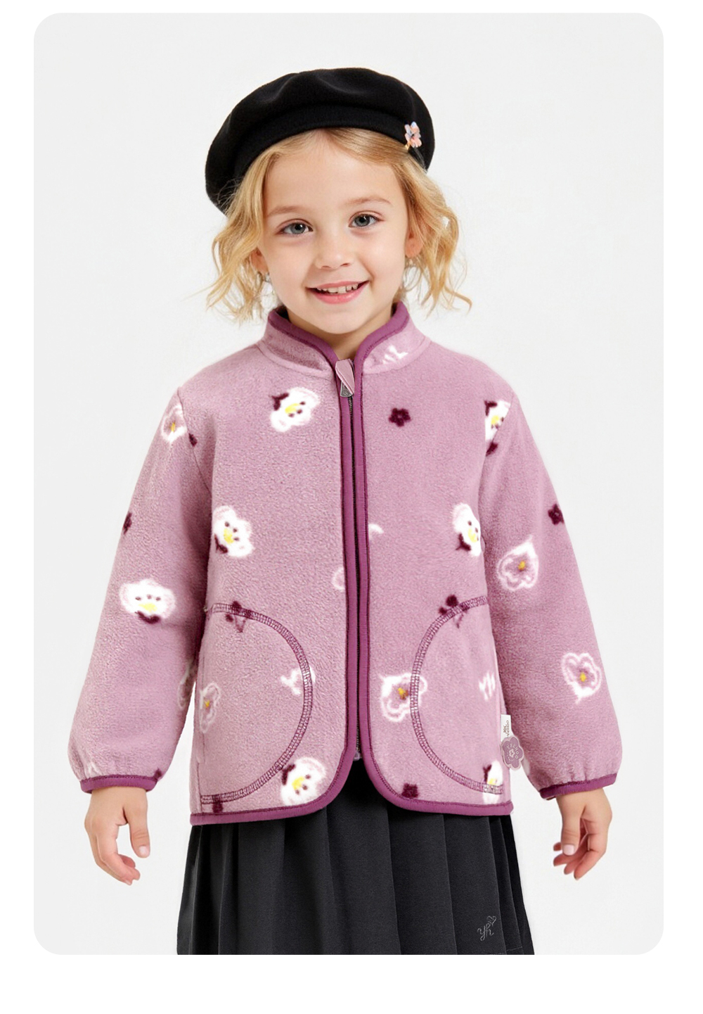 英氏儿童外套秋冬新款保暖加绒男女童百搭外套可爱儿童摇粒绒外套