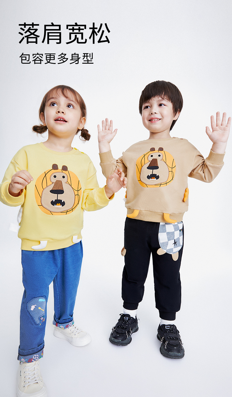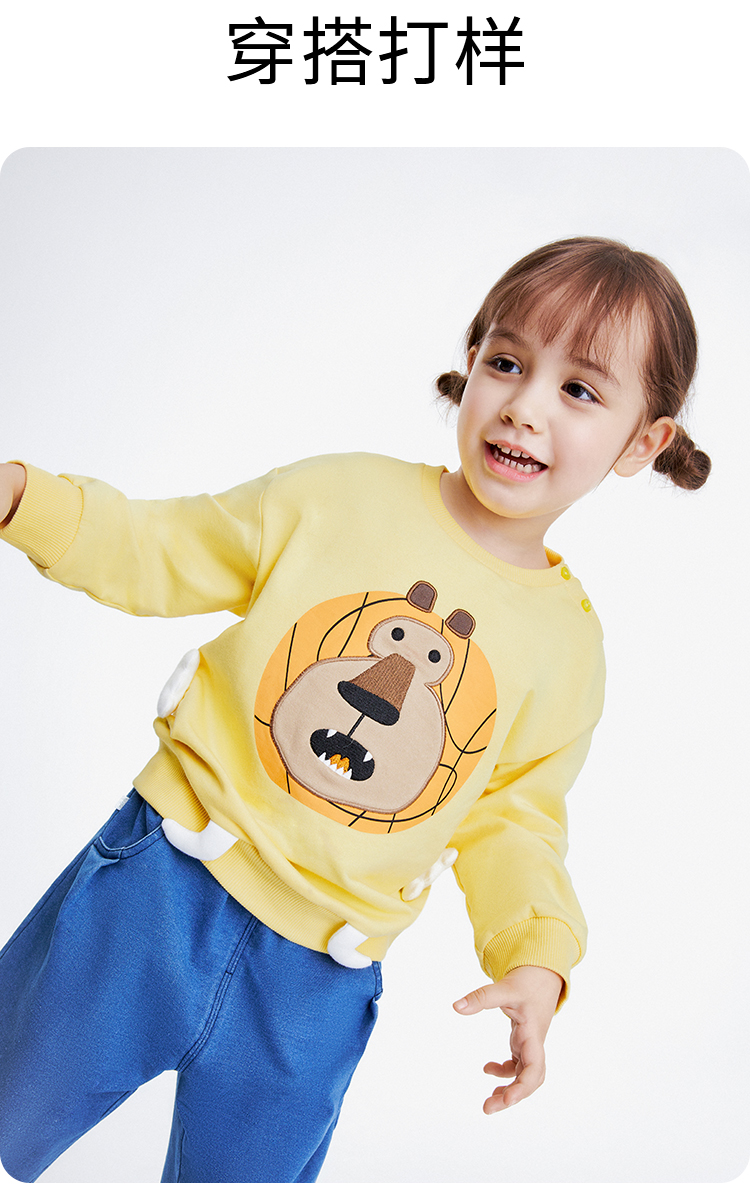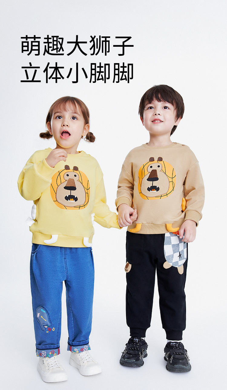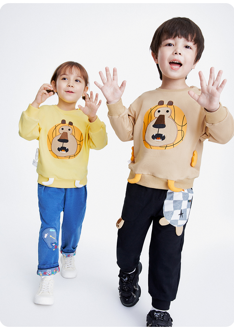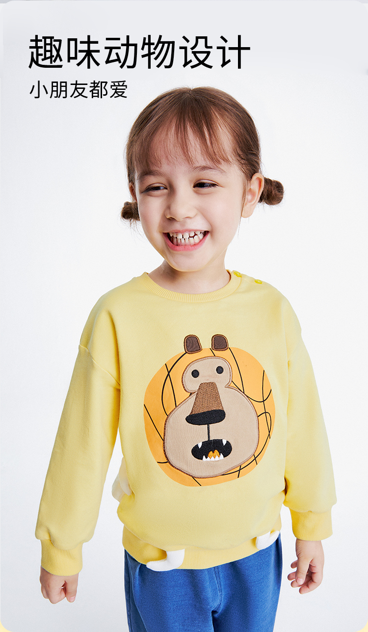 男童女童圆领长袖卫衣秋新款狮子卡通立体图案上衣安奈儿童装TM311033