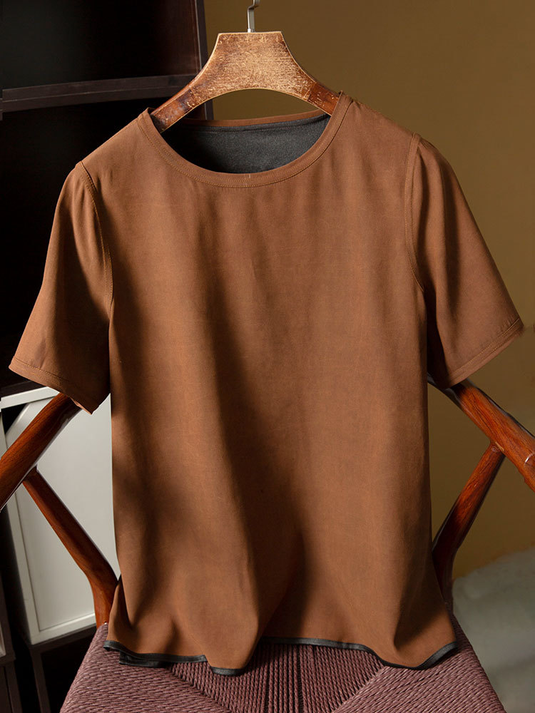 丁摩 双面穿平龟真丝香云纱短袖T恤女夏气质香云纱桑蚕丝圆领上衣4ZF-108