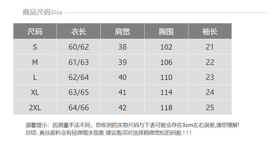 尺码推荐表