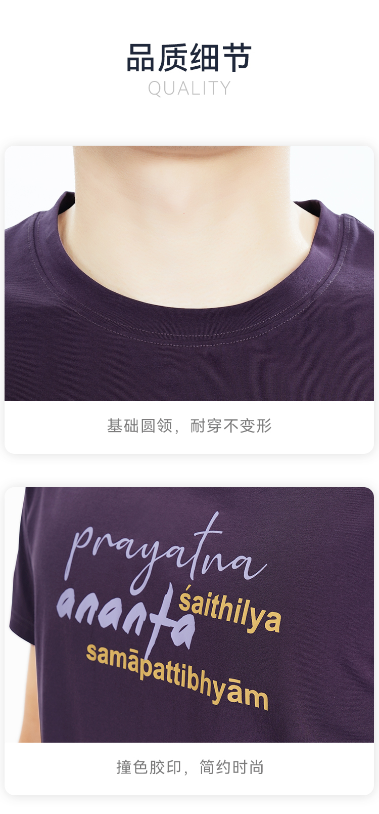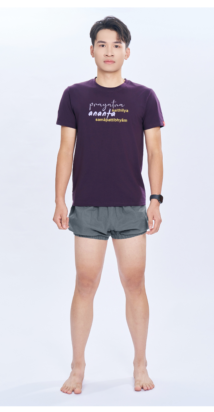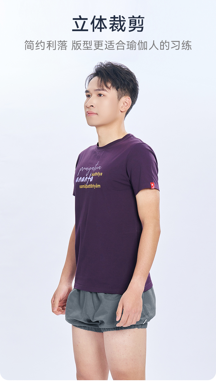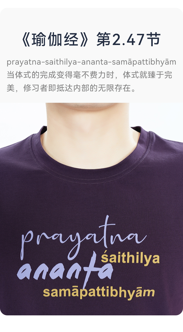 艾扬格 life C3057瑜伽经男装T恤 短袖 腻亲肤棉质面料 金句全译:当体式的完成变得毫不费力时,体式就臻于完美,修习者即抵达内部的无限存在