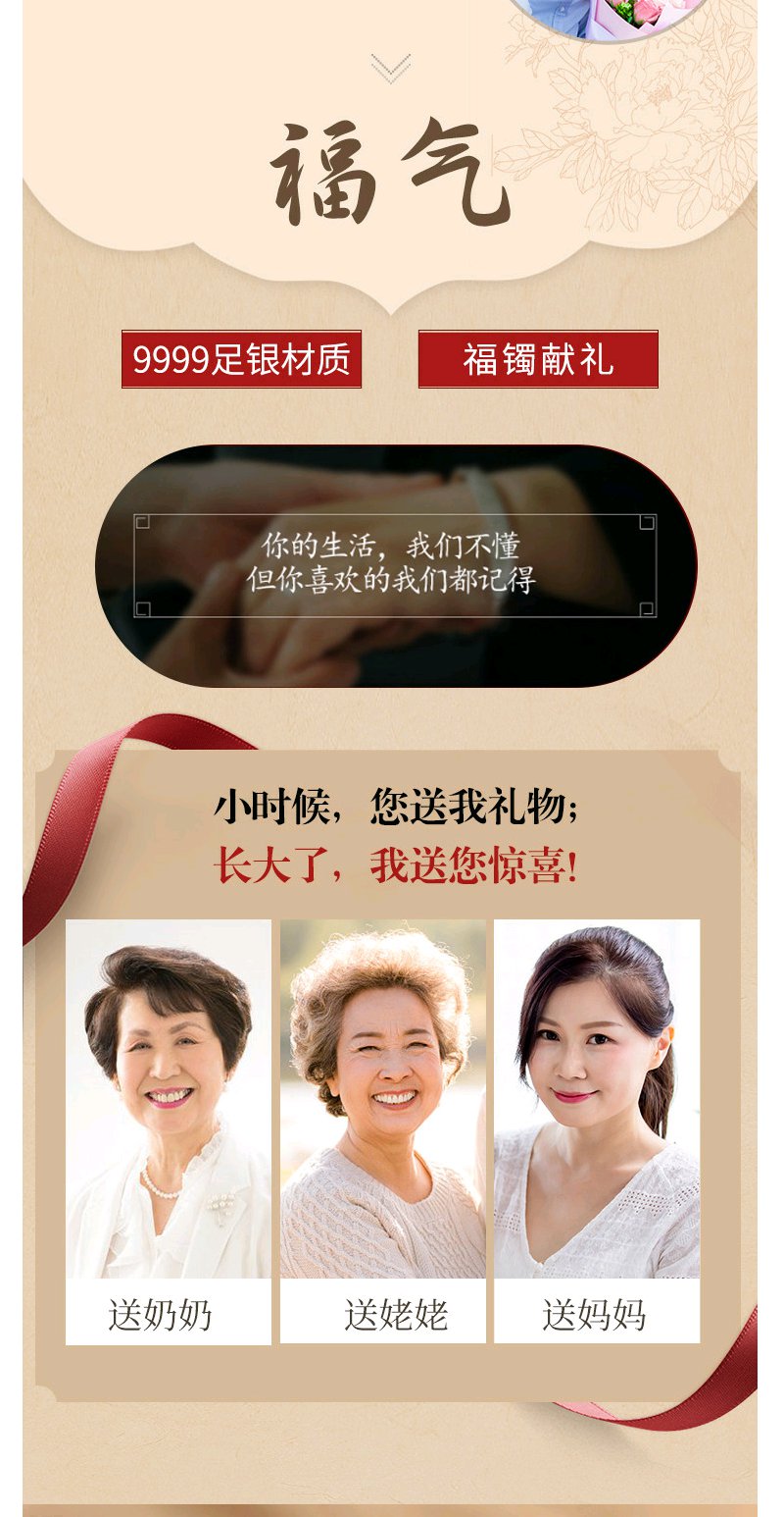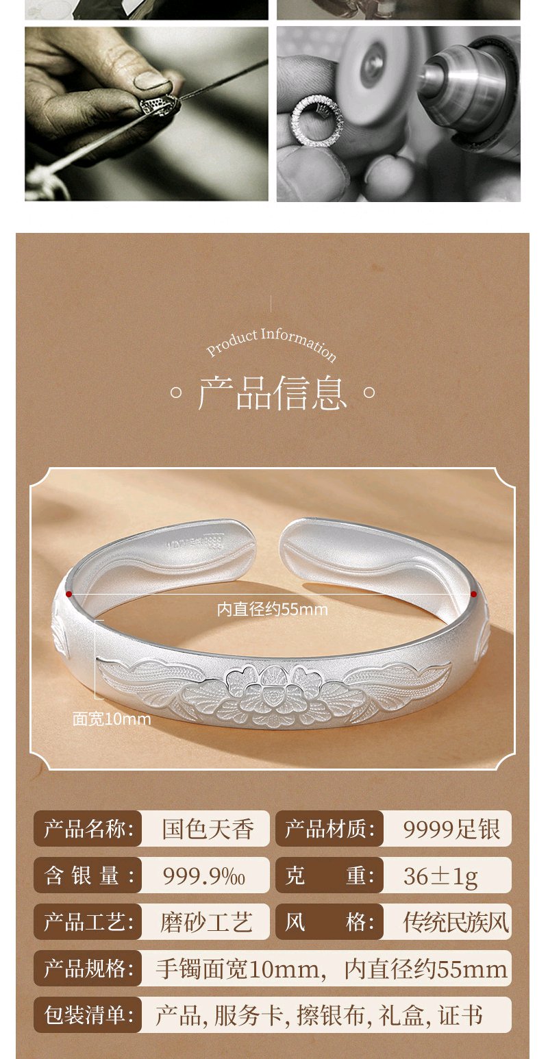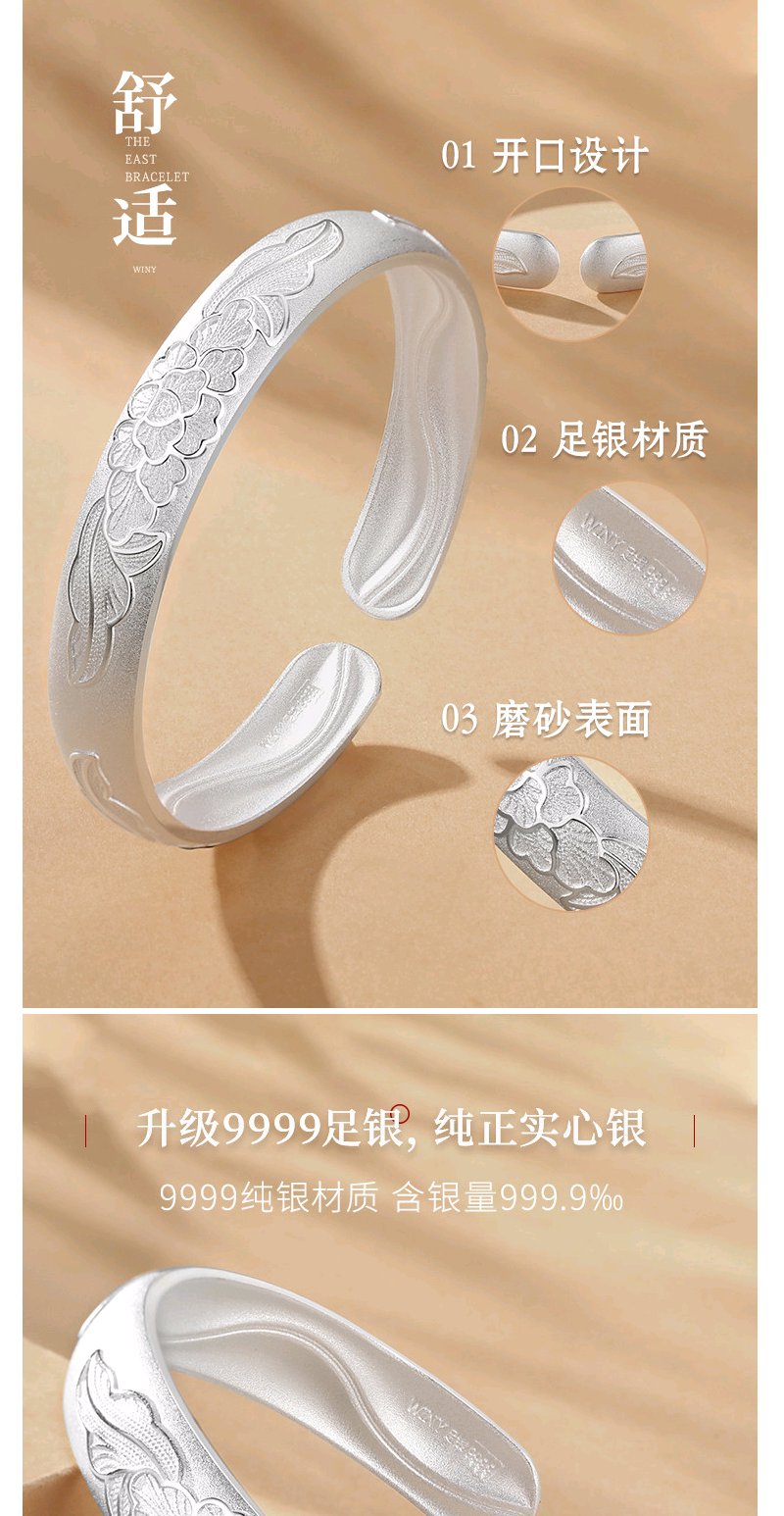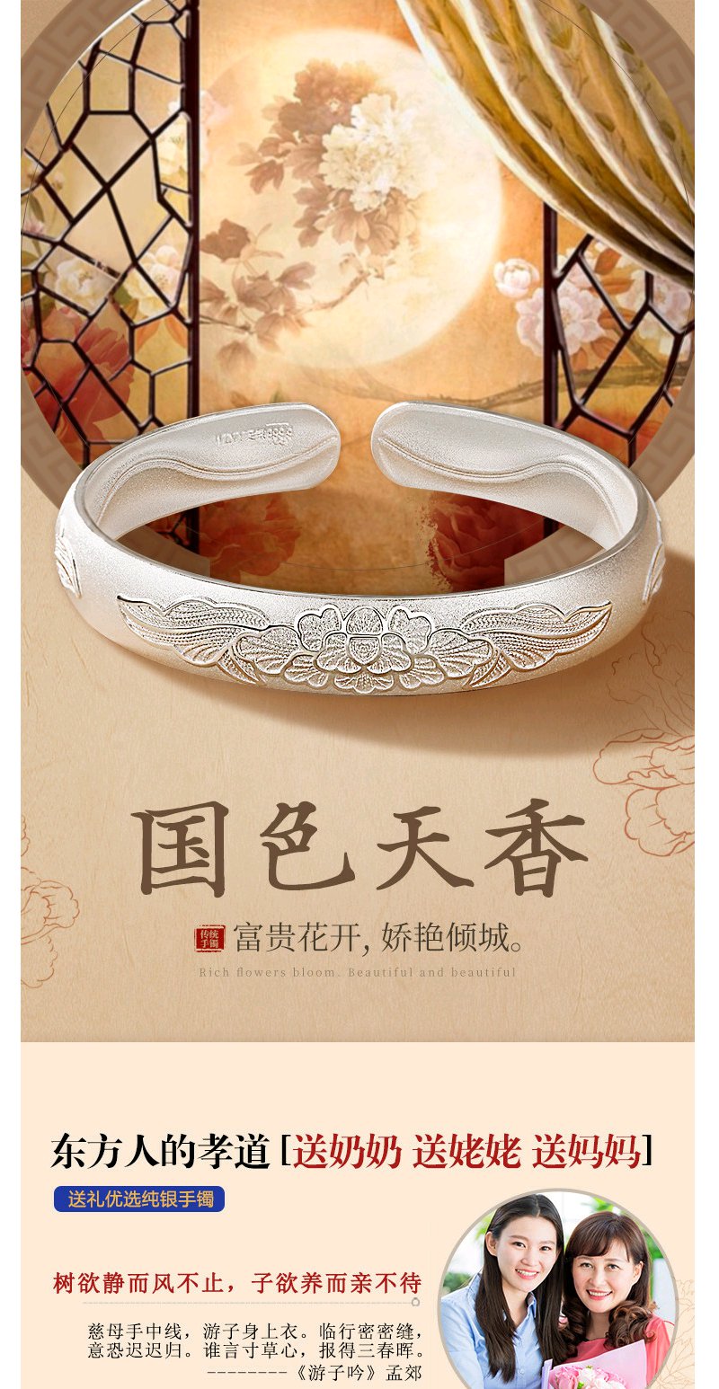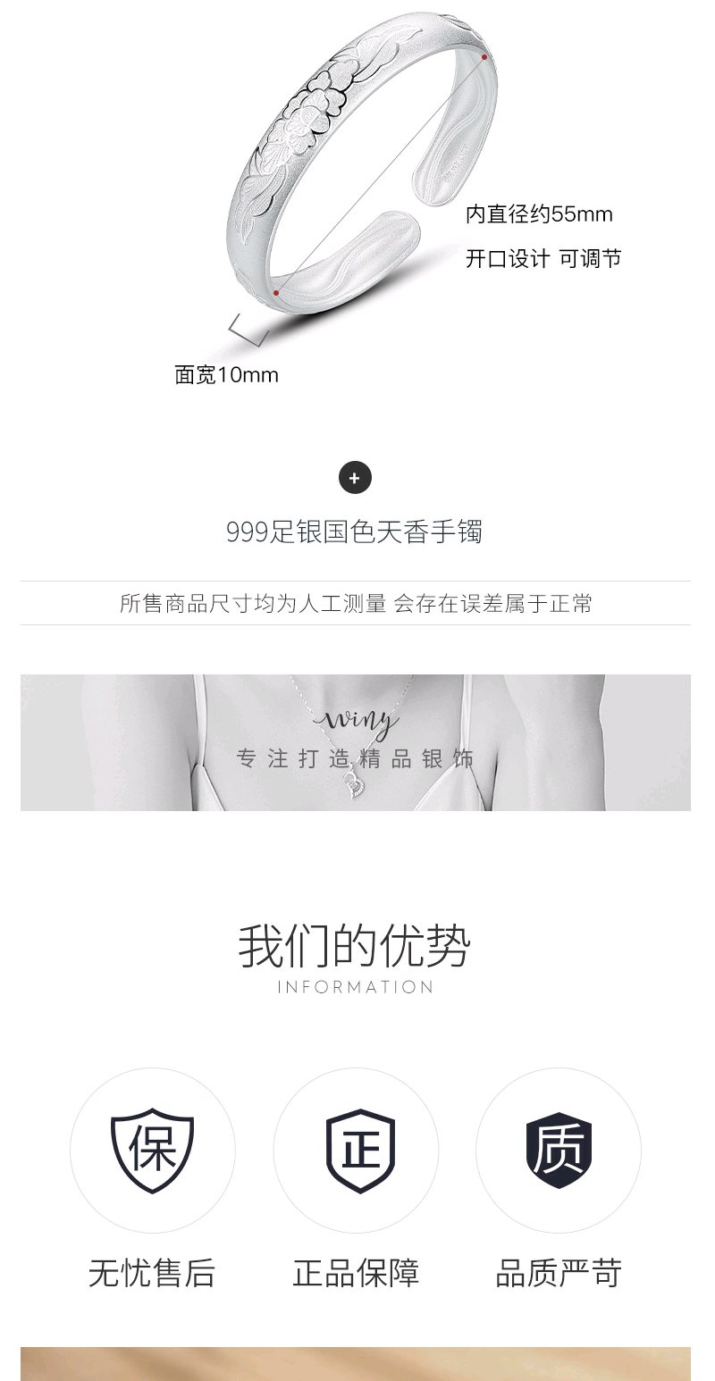 Winy9999足银国色天香手镯送女友闺蜜节日生日礼物