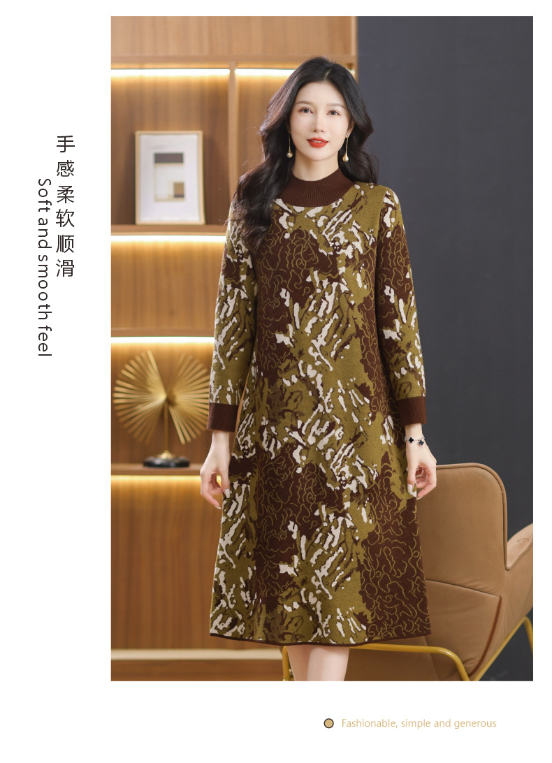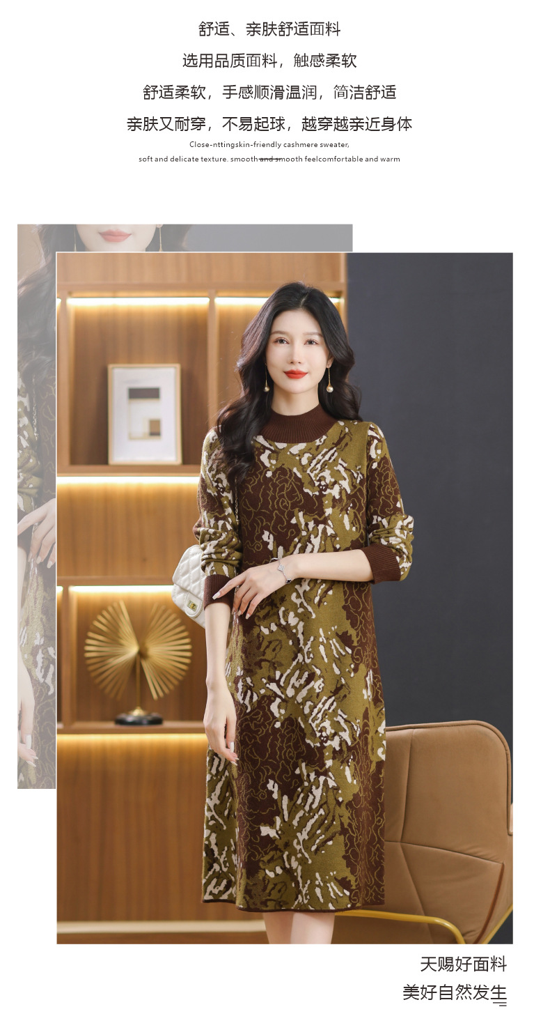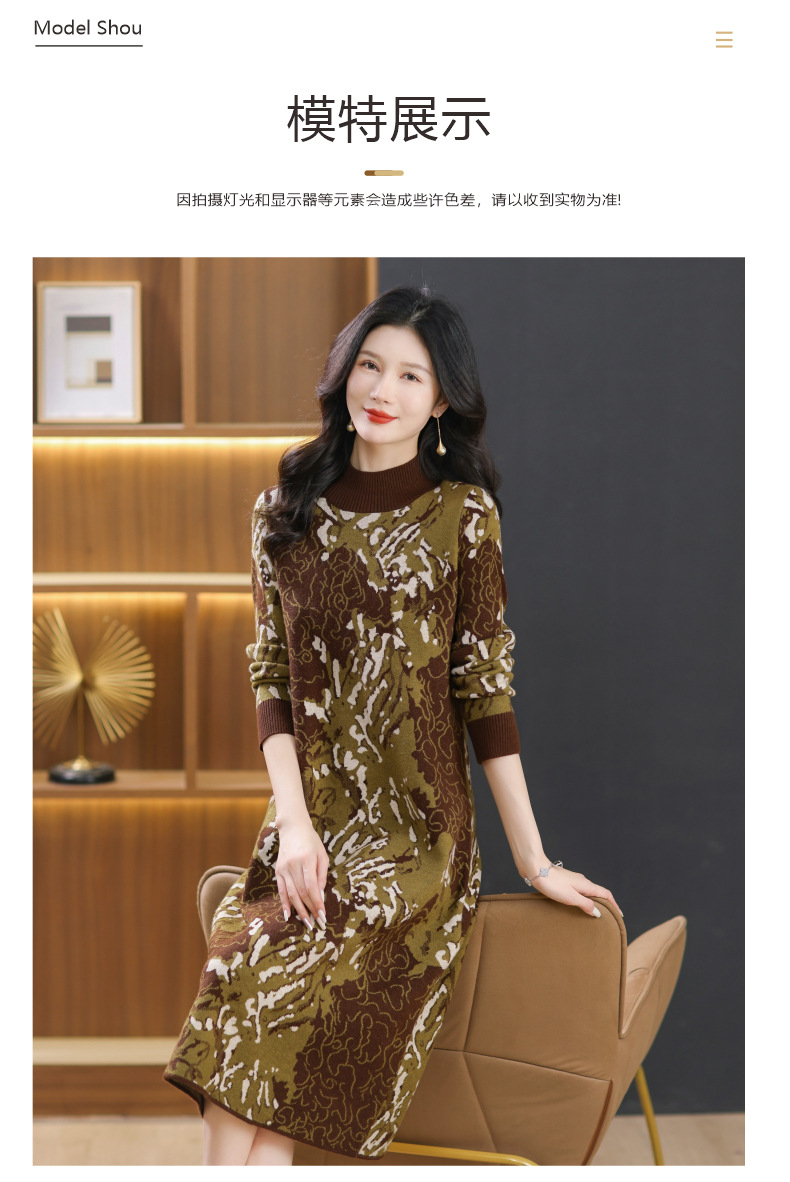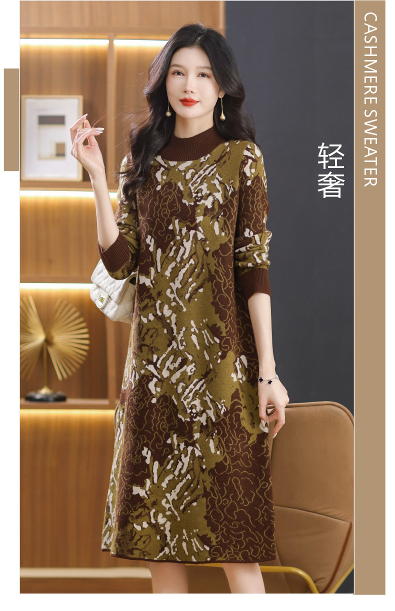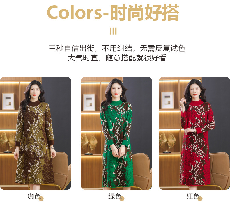 冬季新款毛衣裙,宽松时尚提花半高领加厚过膝长裙针织连衣裙CC-103-7766
