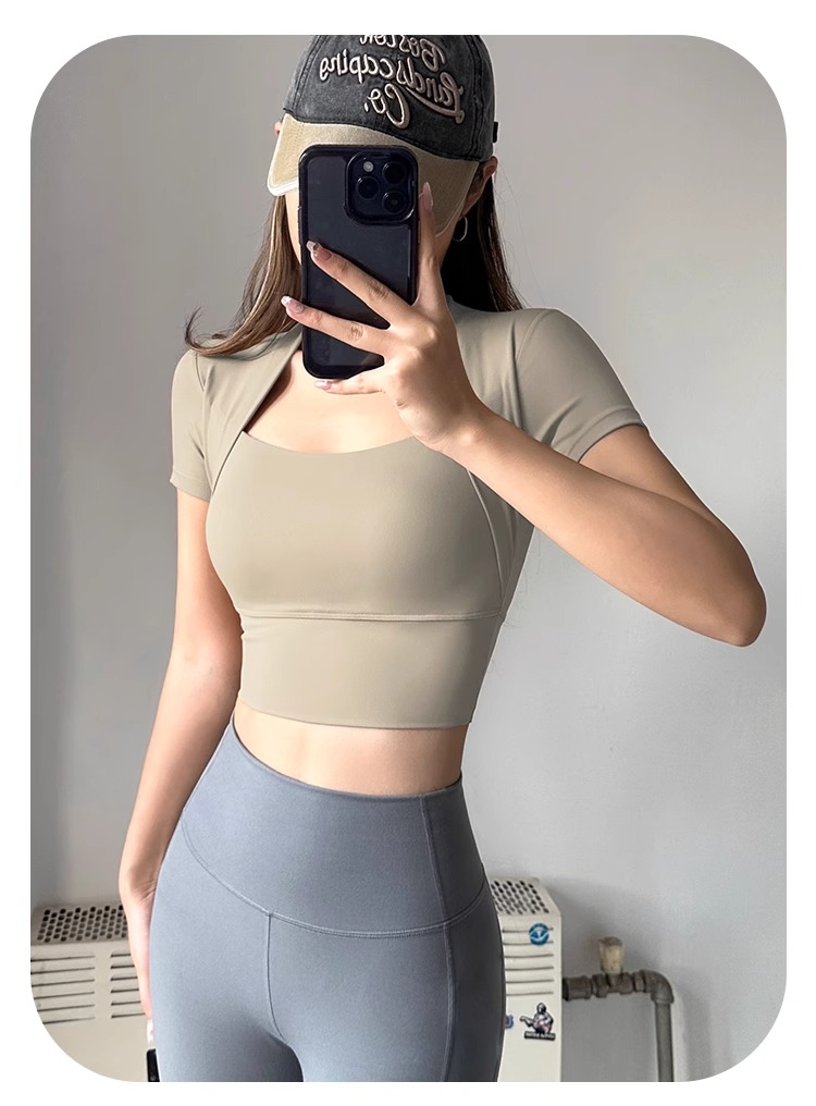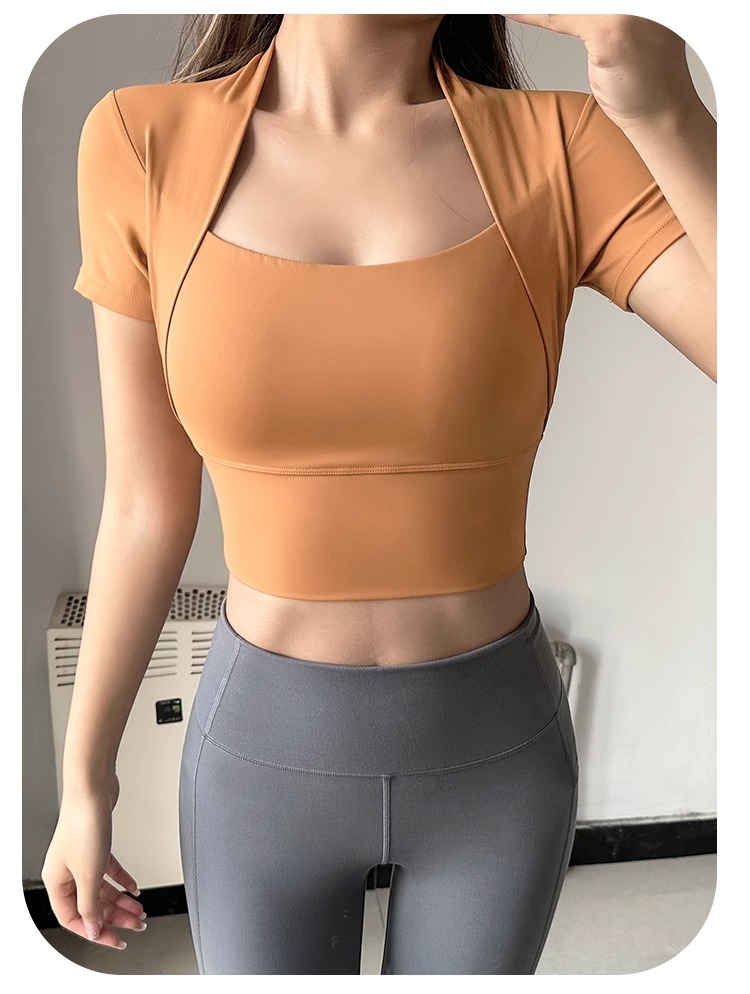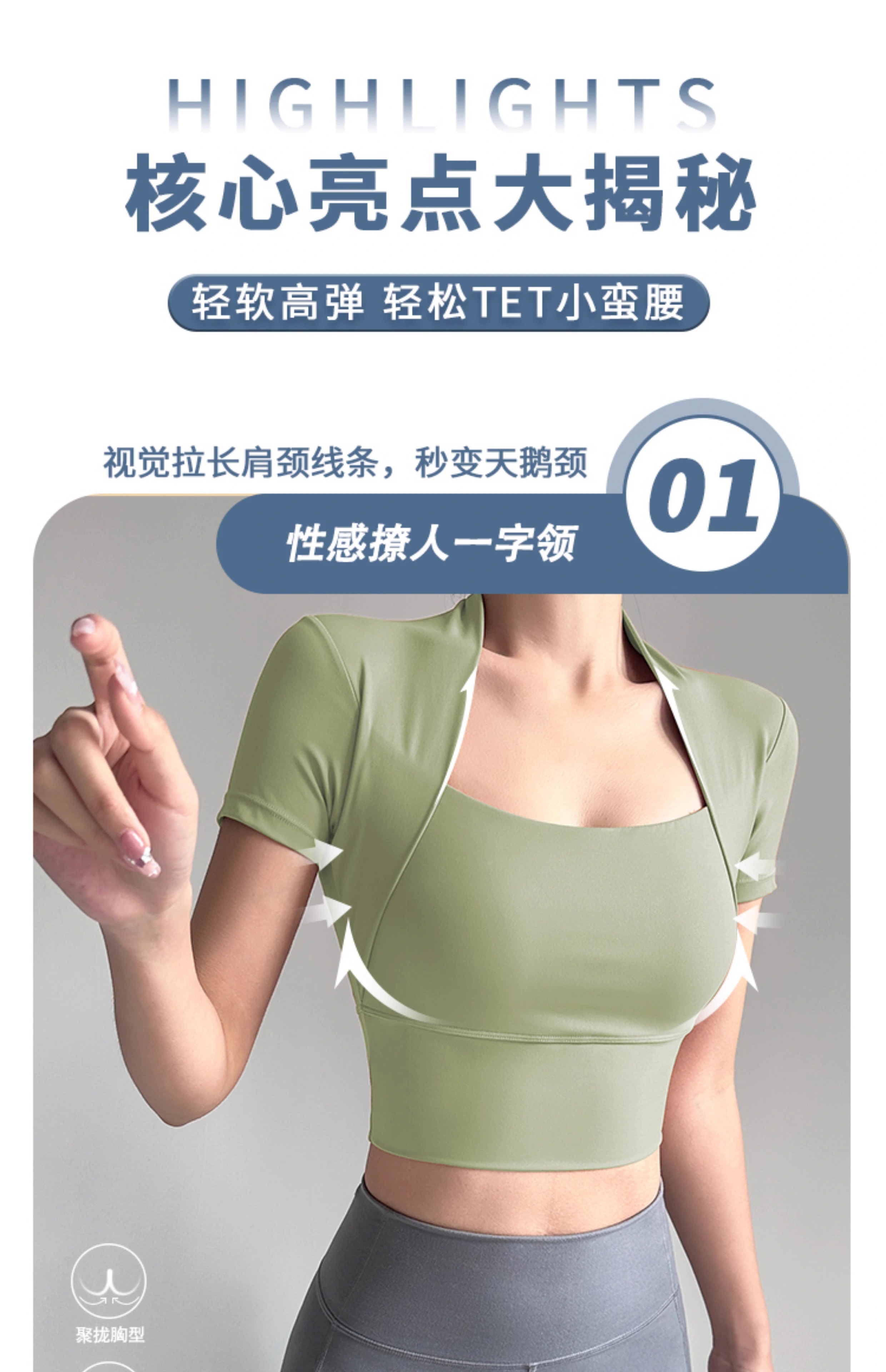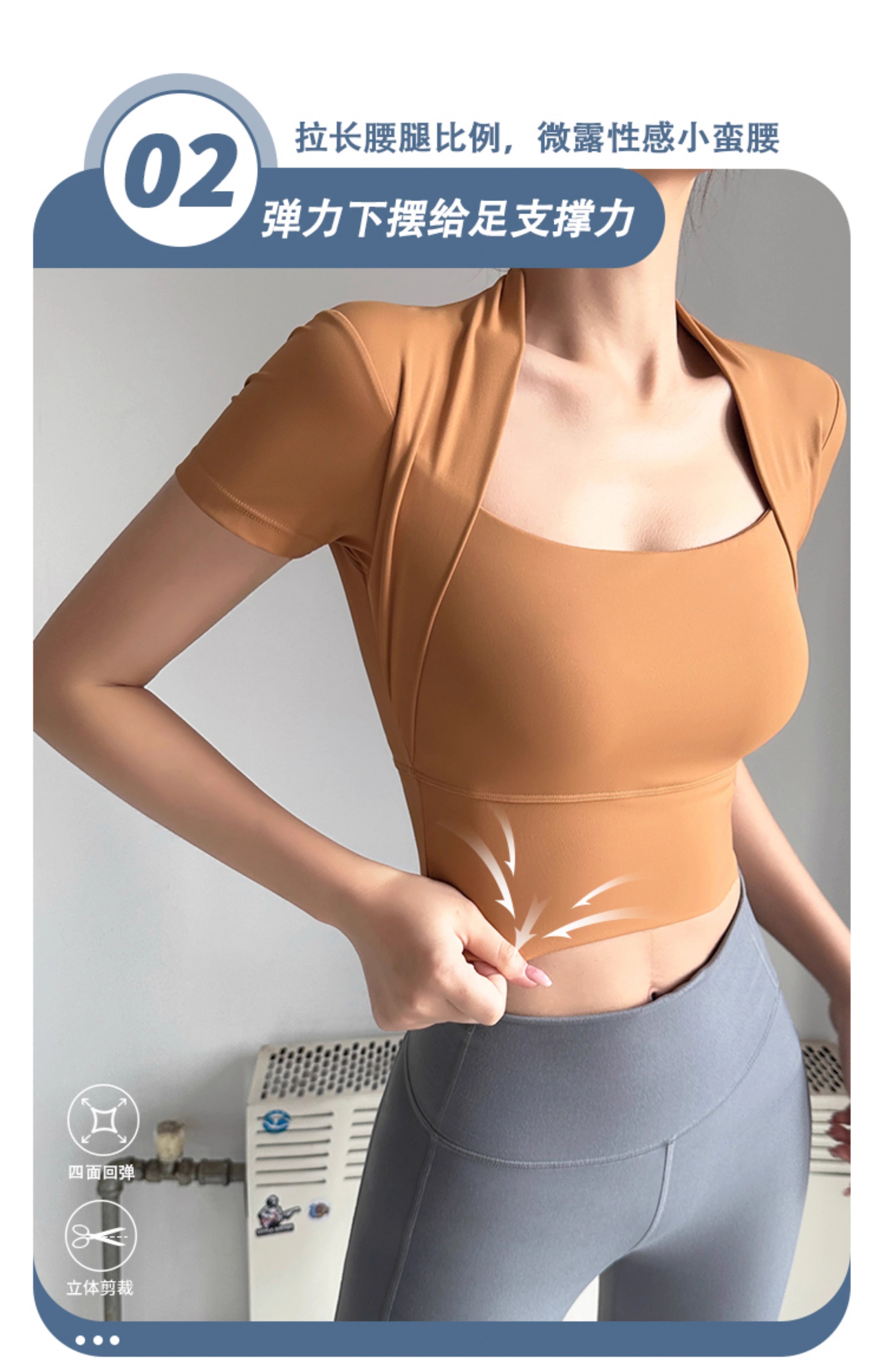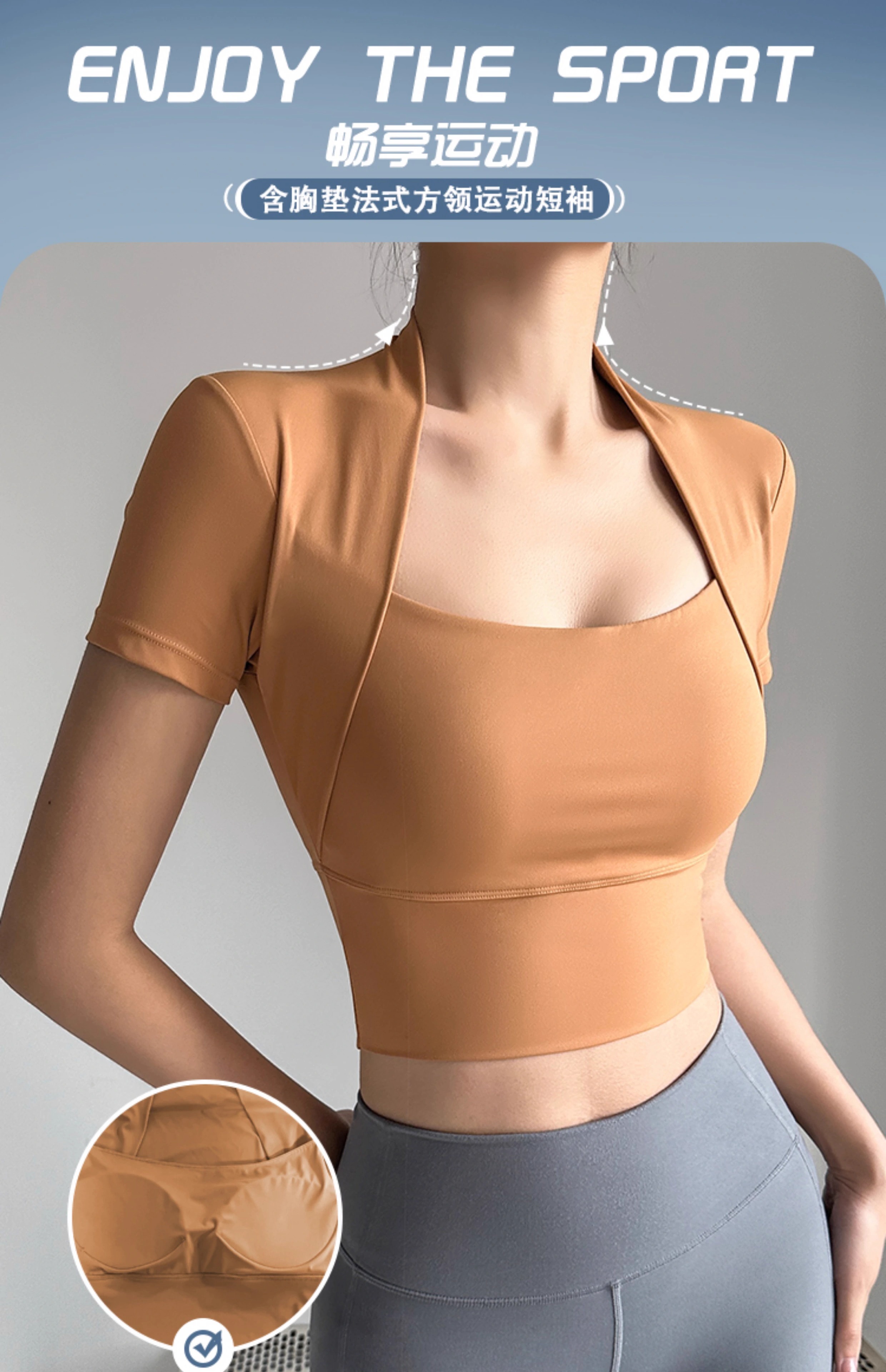 跃牌【美西西系列】新款假带胸垫两件含胸垫运动短袖上衣女DX-224