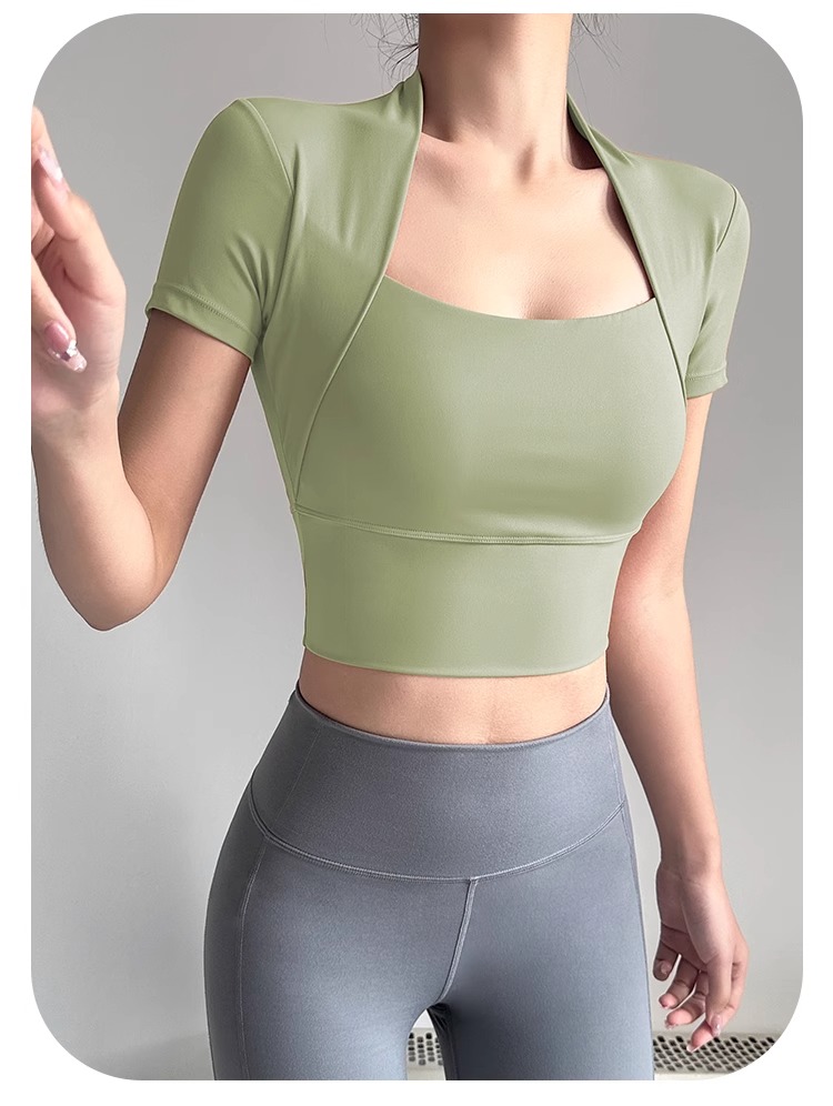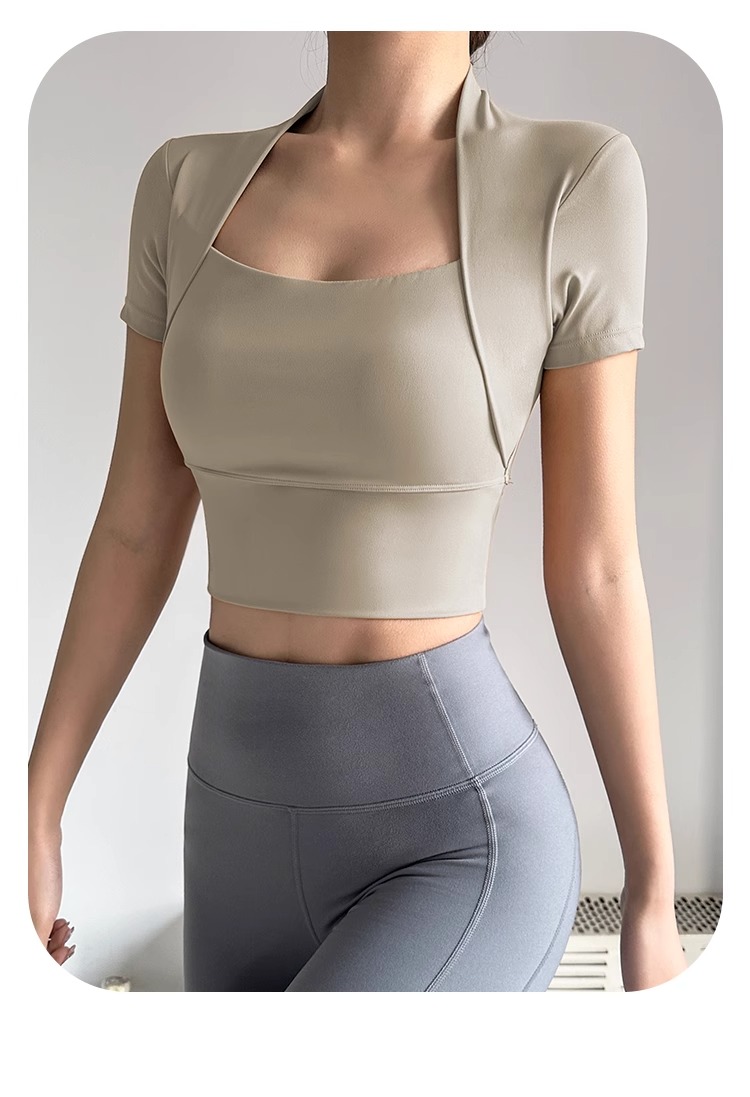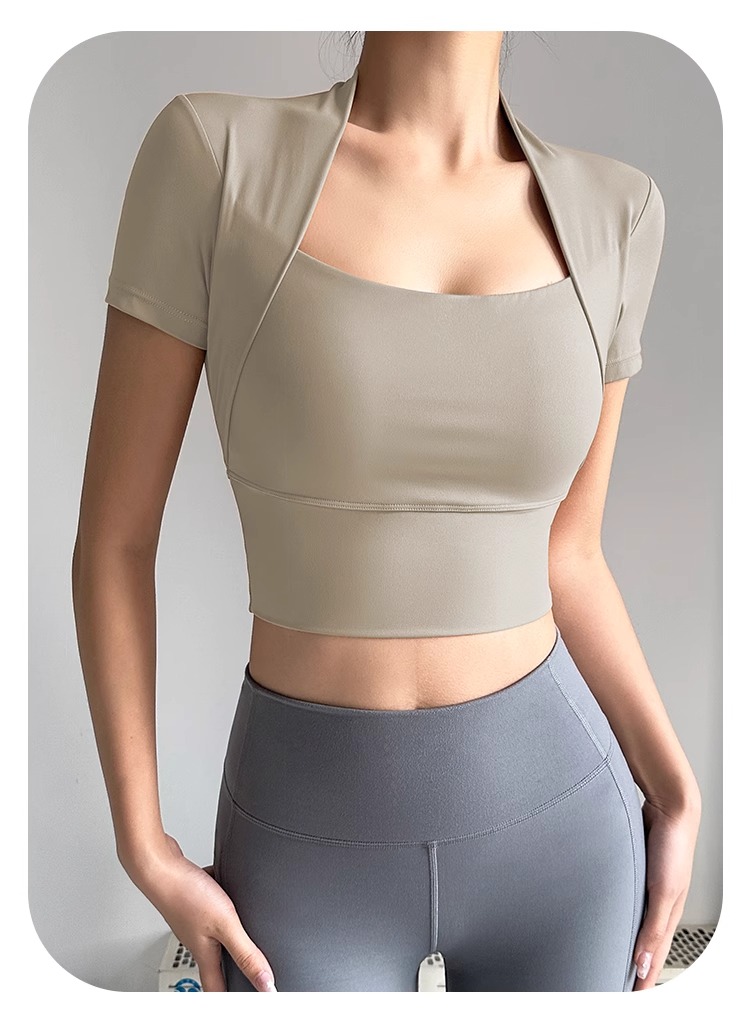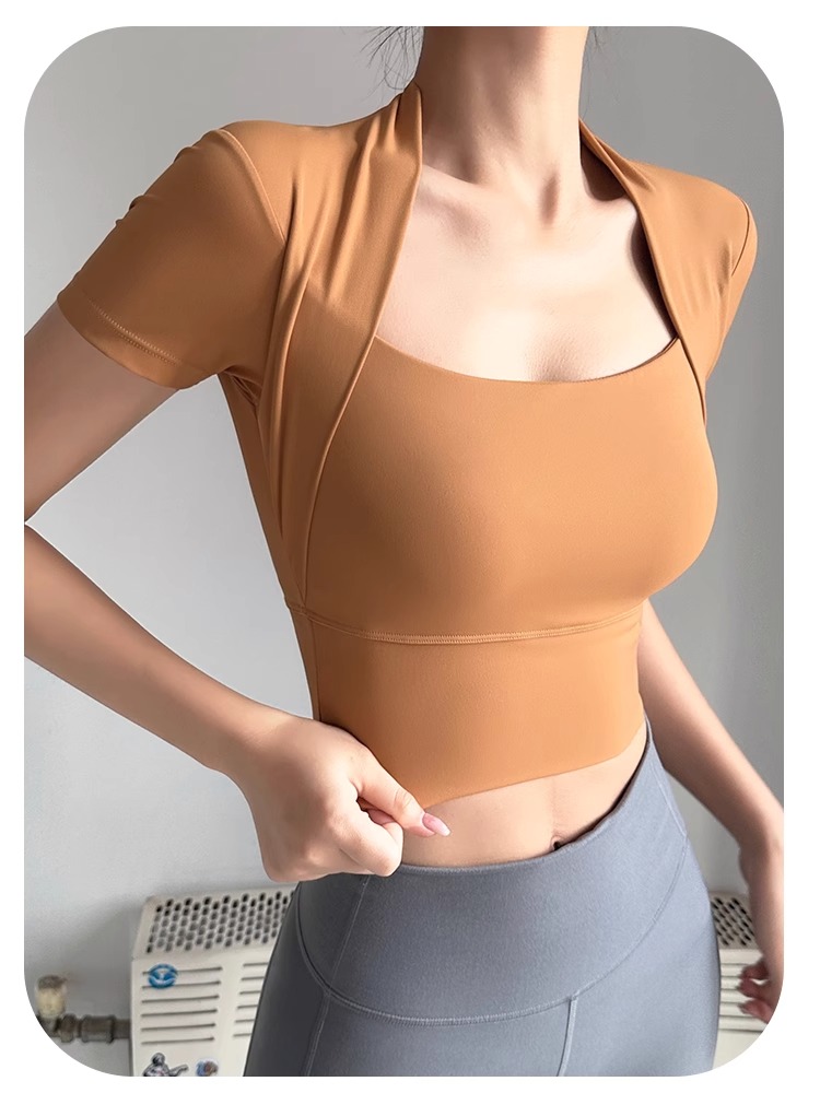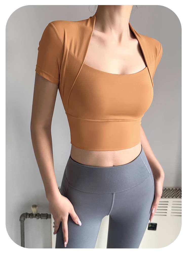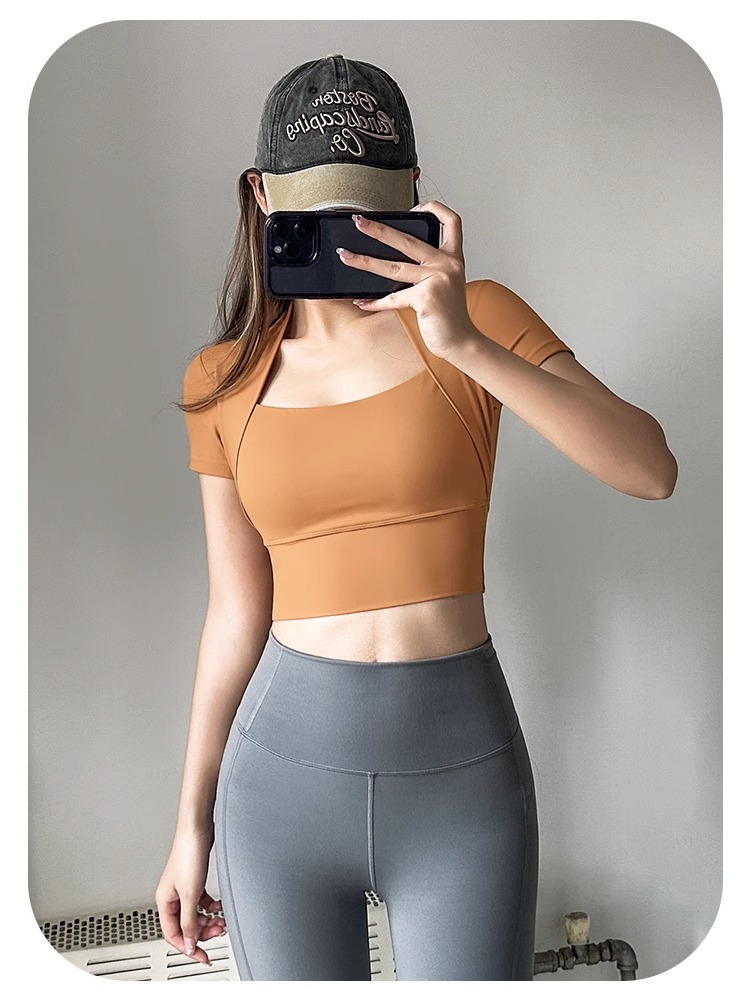 跃牌【美西西系列】新款假带胸垫两件含胸垫运动短袖上衣女DX-224