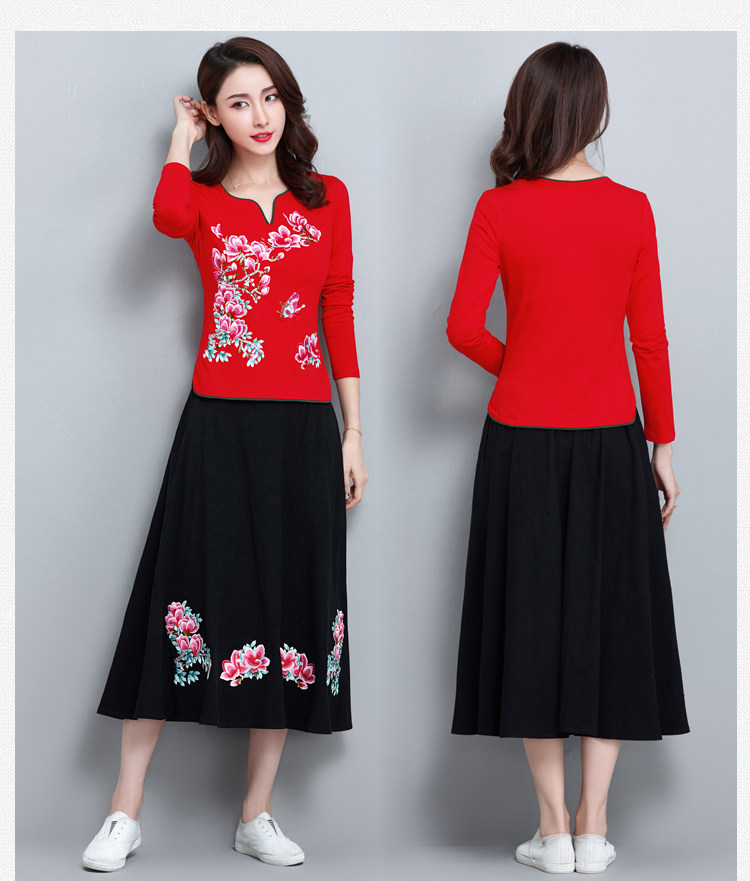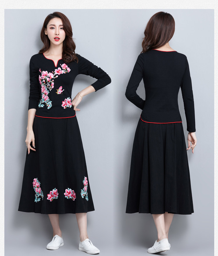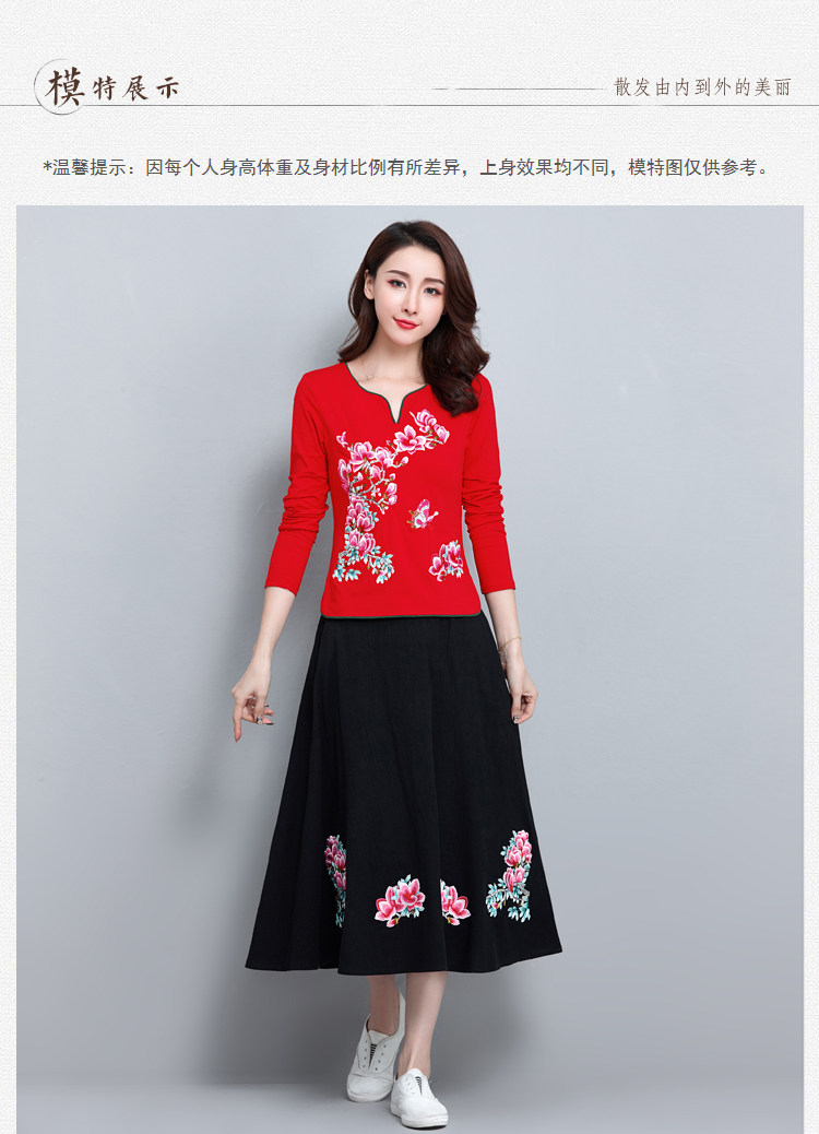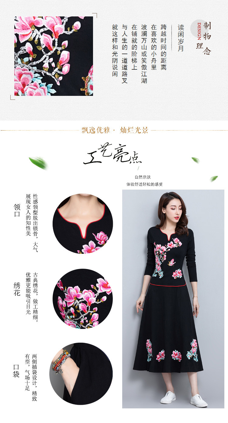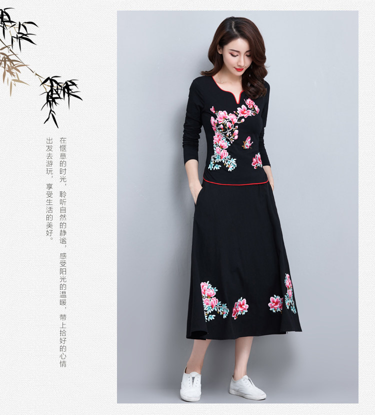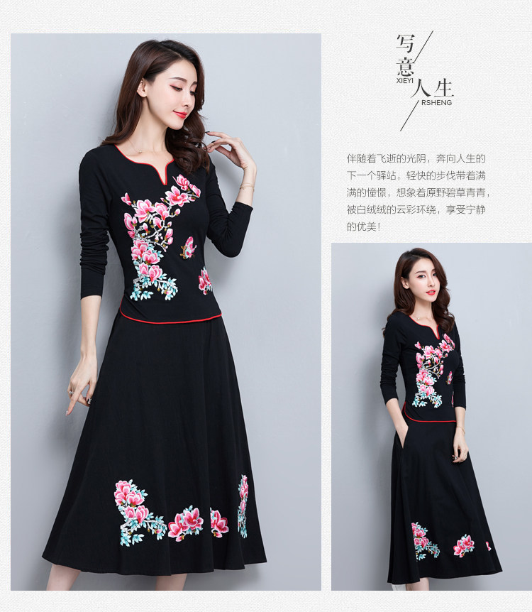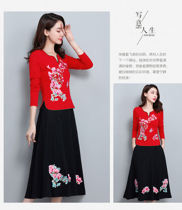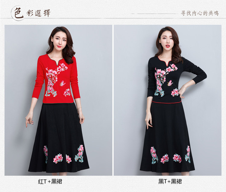 LFJR-TZ8748新品撞色V领复古民族绣花大码两件套